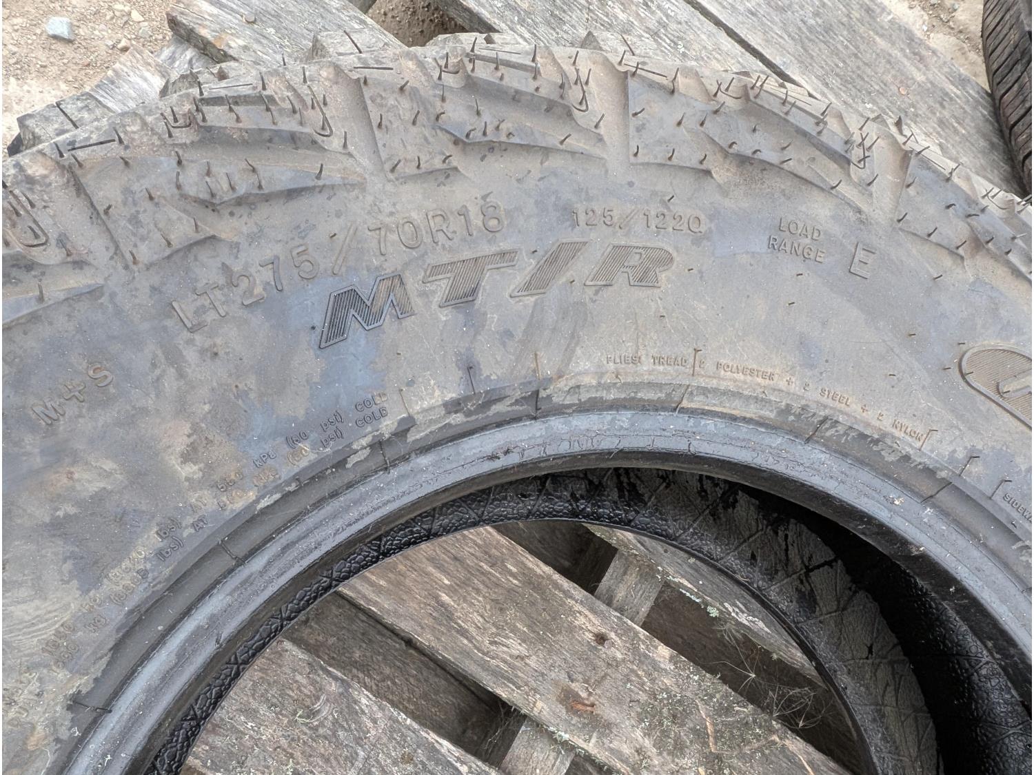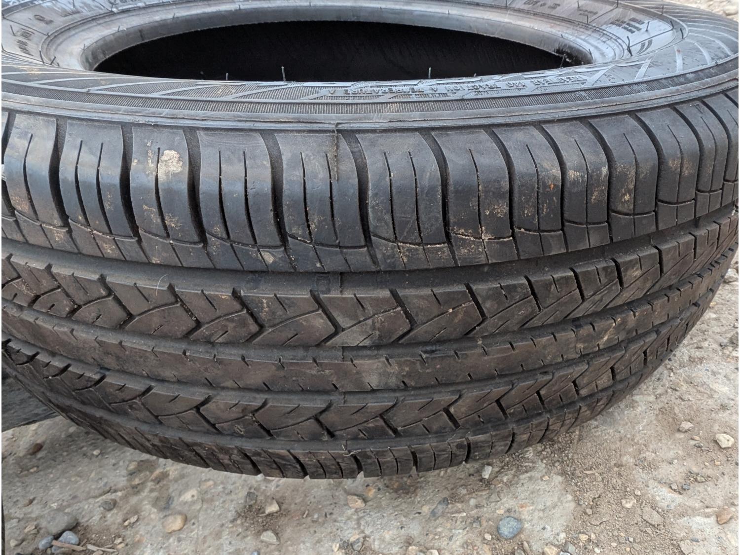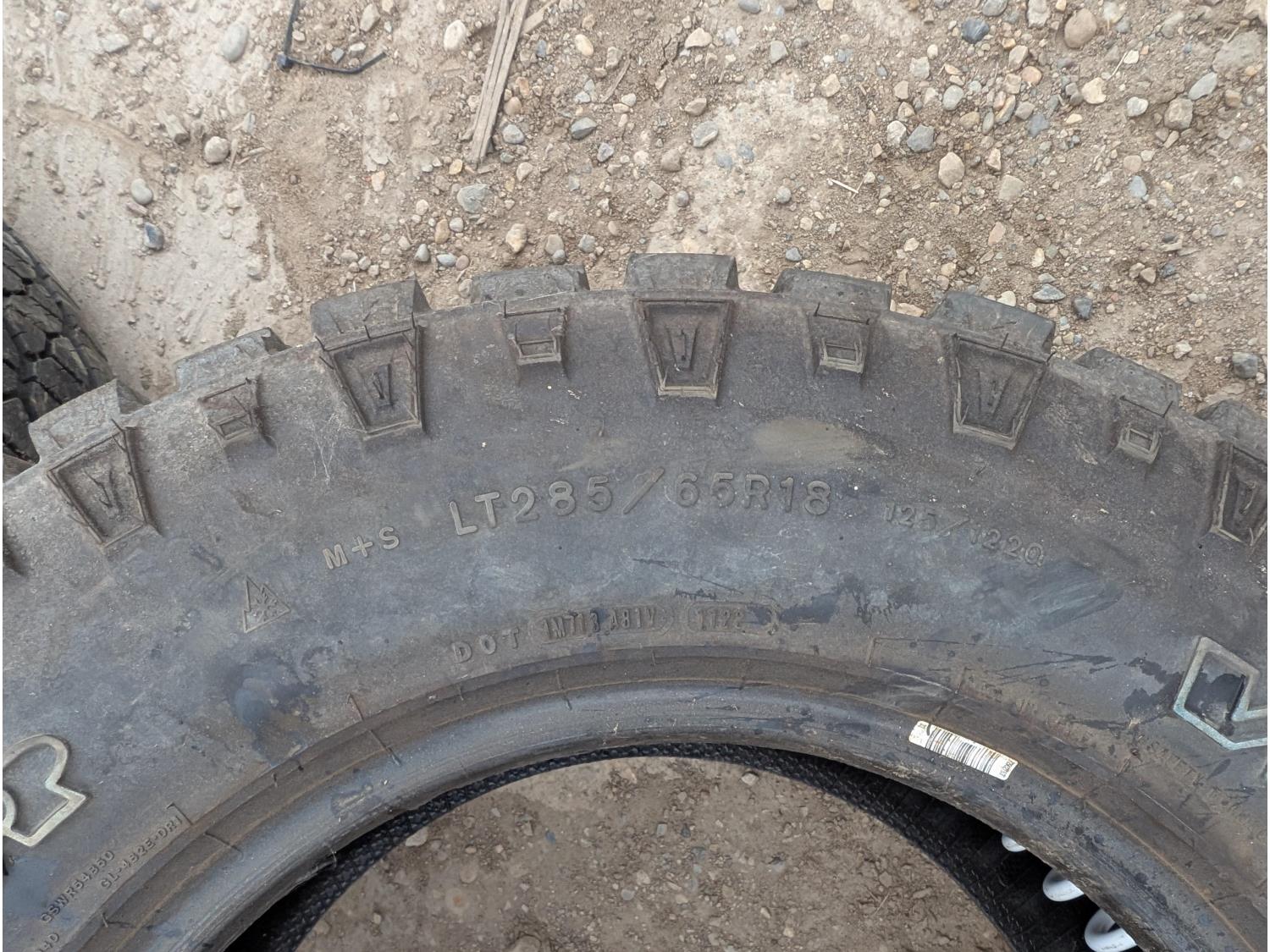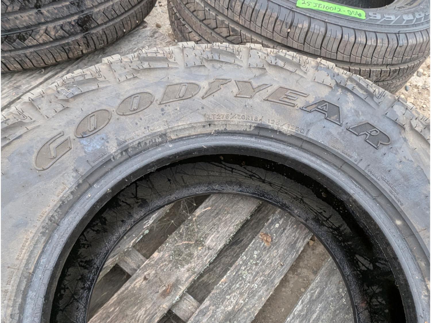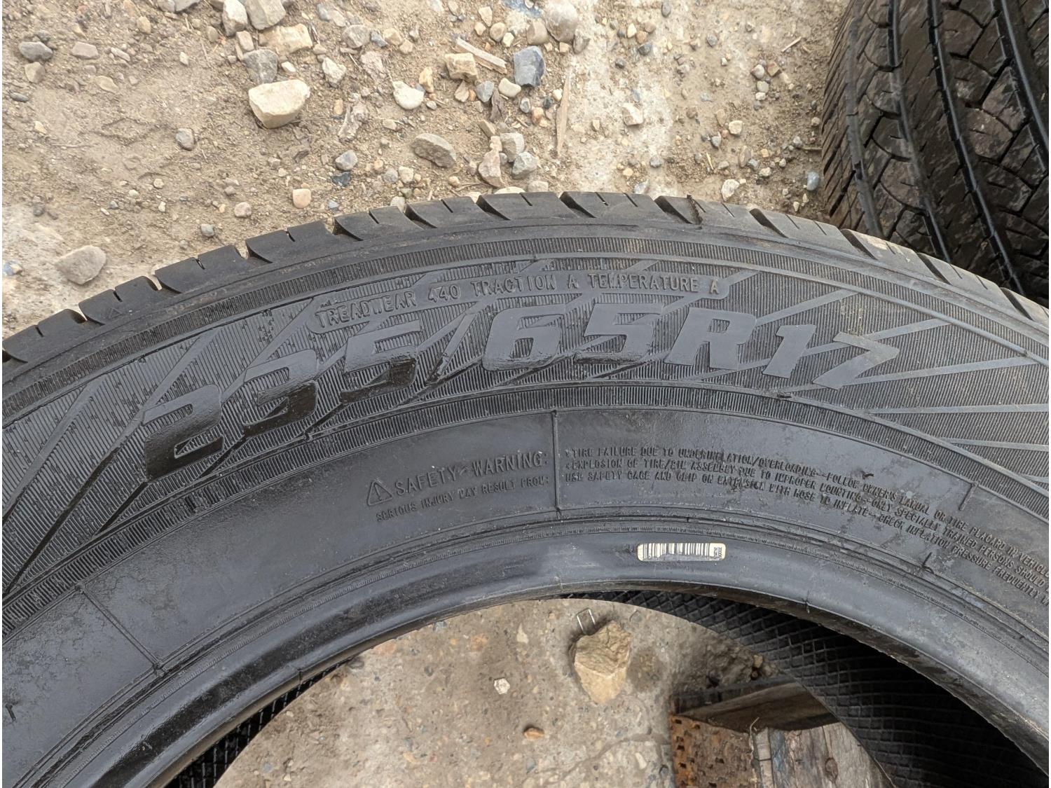 (1) Goodyear Wrangler Duratrac 285/65R18 tire, (1) Goodyear Wrangler 275/70R18 tire, (2) Farroad FRD66 235/65R17 tires, (1) BF Goodrich Rugged Trail 245/75R16 tire
