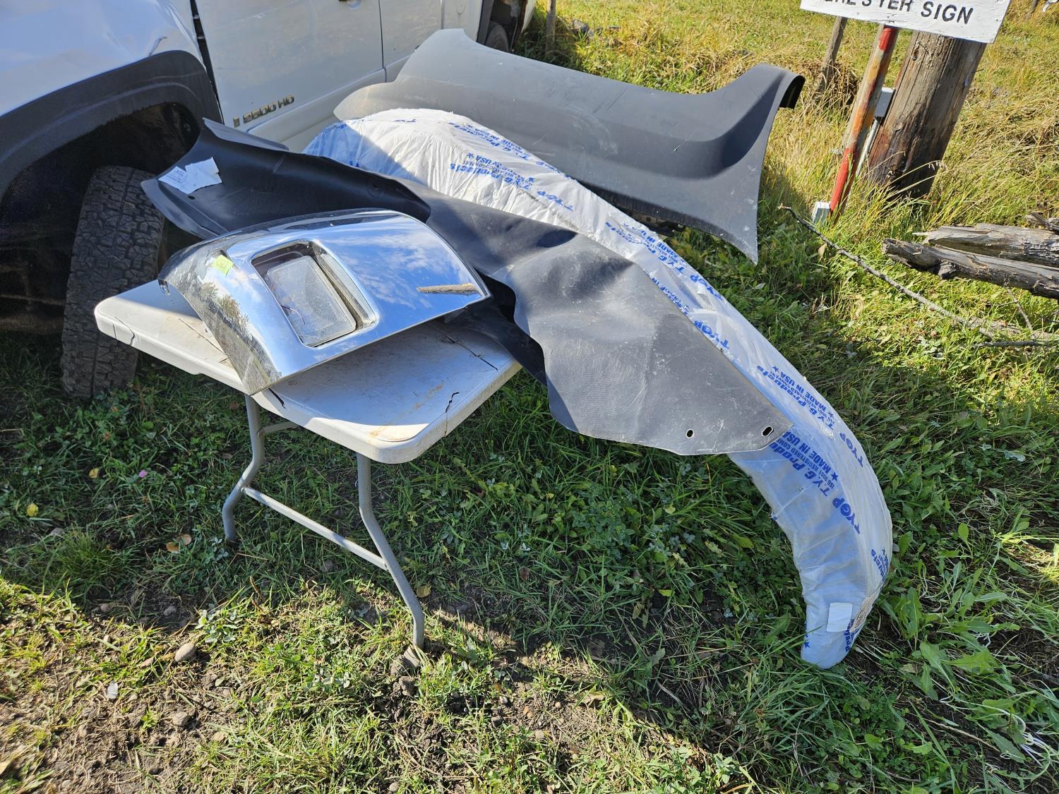 right fender and wheel well, right chrome cover and light on bumper, see pictures for part numbers