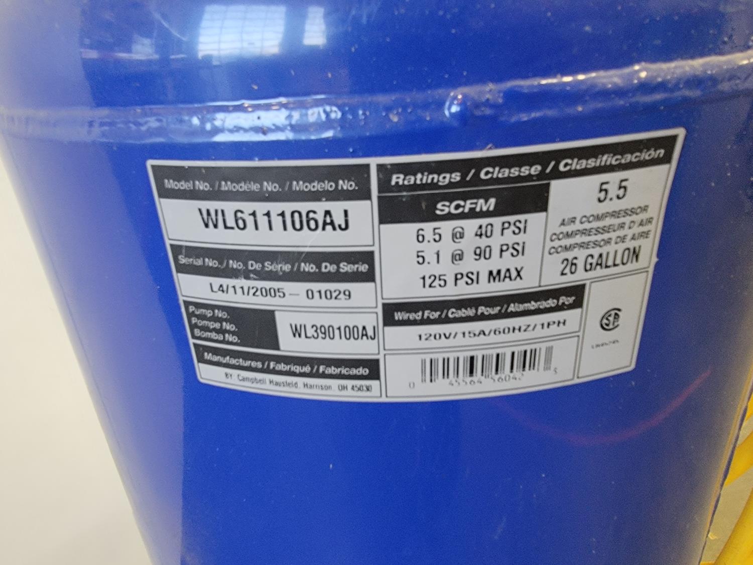 5122 Campbell Hausfeld 26 Gallon Air Compressor