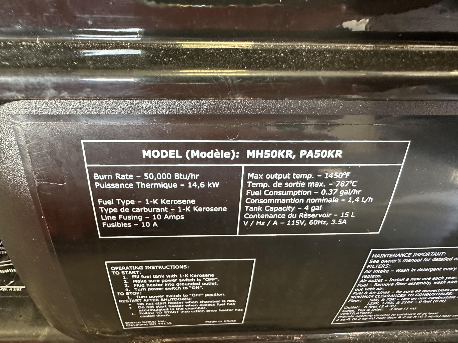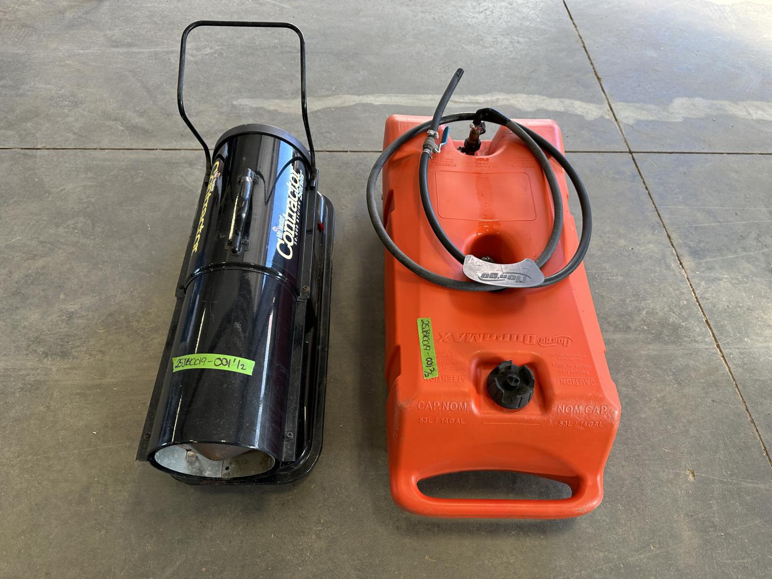 5089 Mr Heater 50,000 BTU Kerosene Construction Heater and Flon'go 53L Fuel Caddy