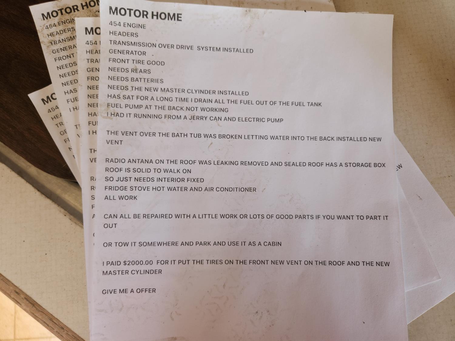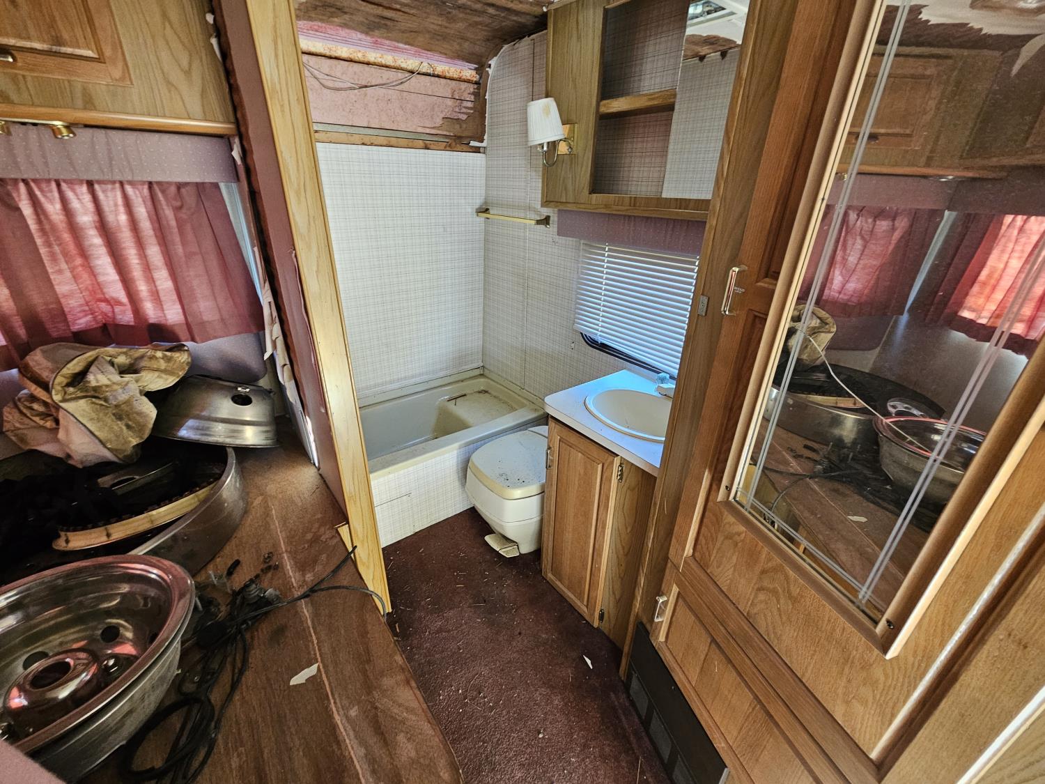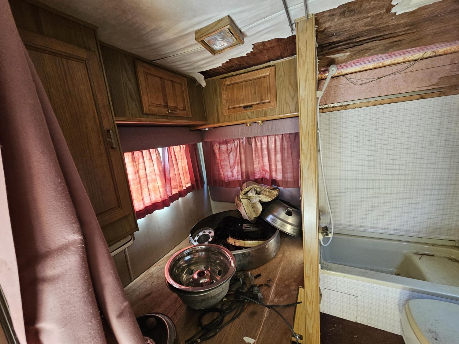 has 454 engine, overdrive system installed. extensive water damage, all appliances work. sells as is where is. will need to be removed on a trailer, view pictures for more information.