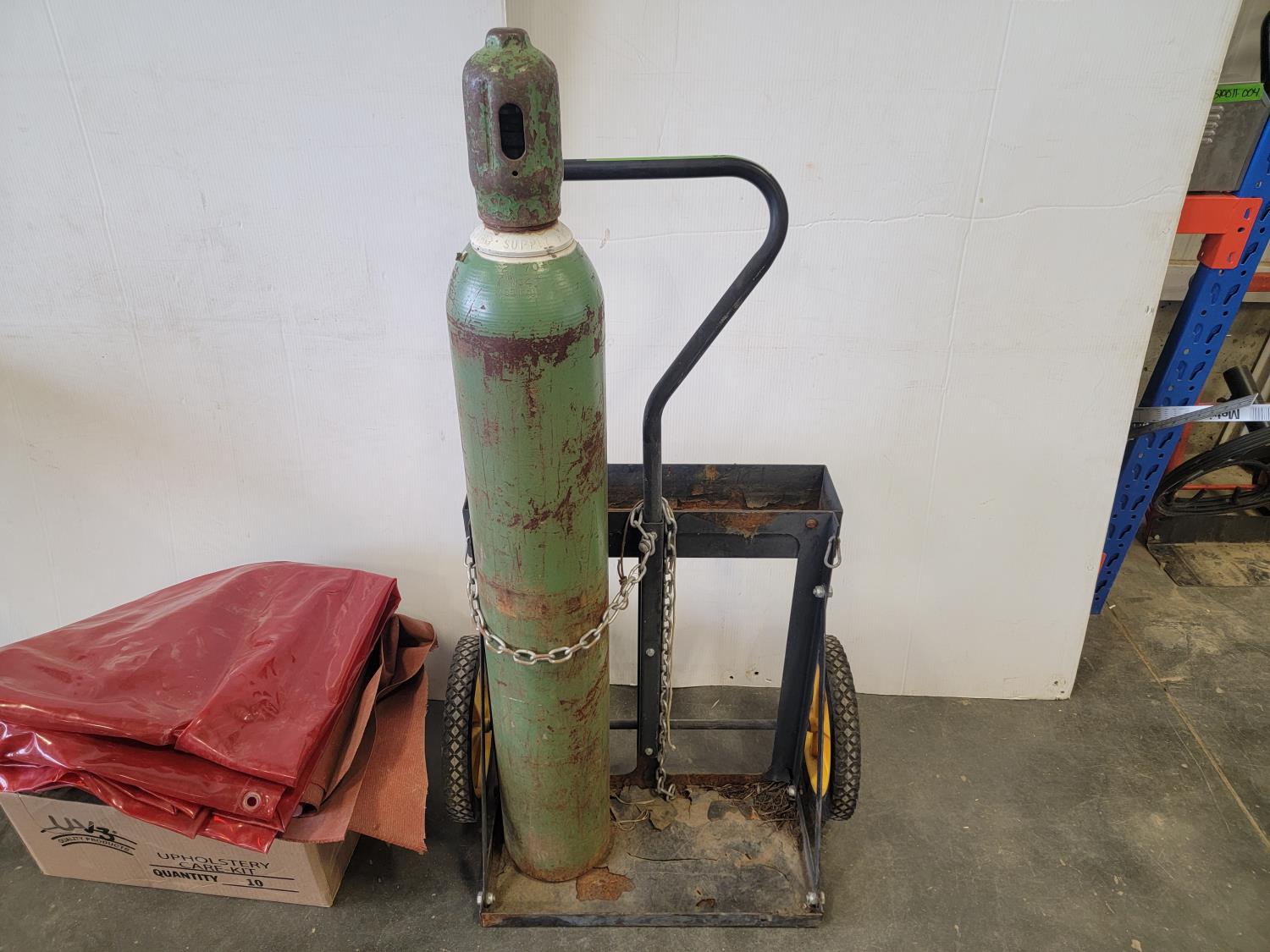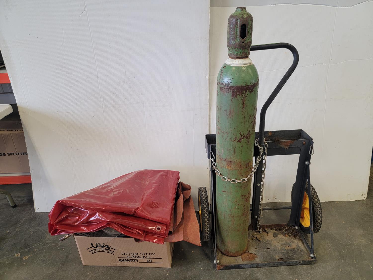 5141 Oxygen Tank On Cart, Regulators, Torch and Welding Supplies