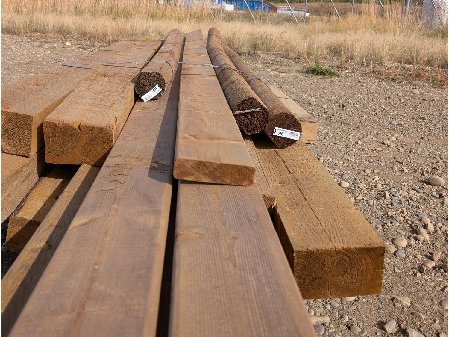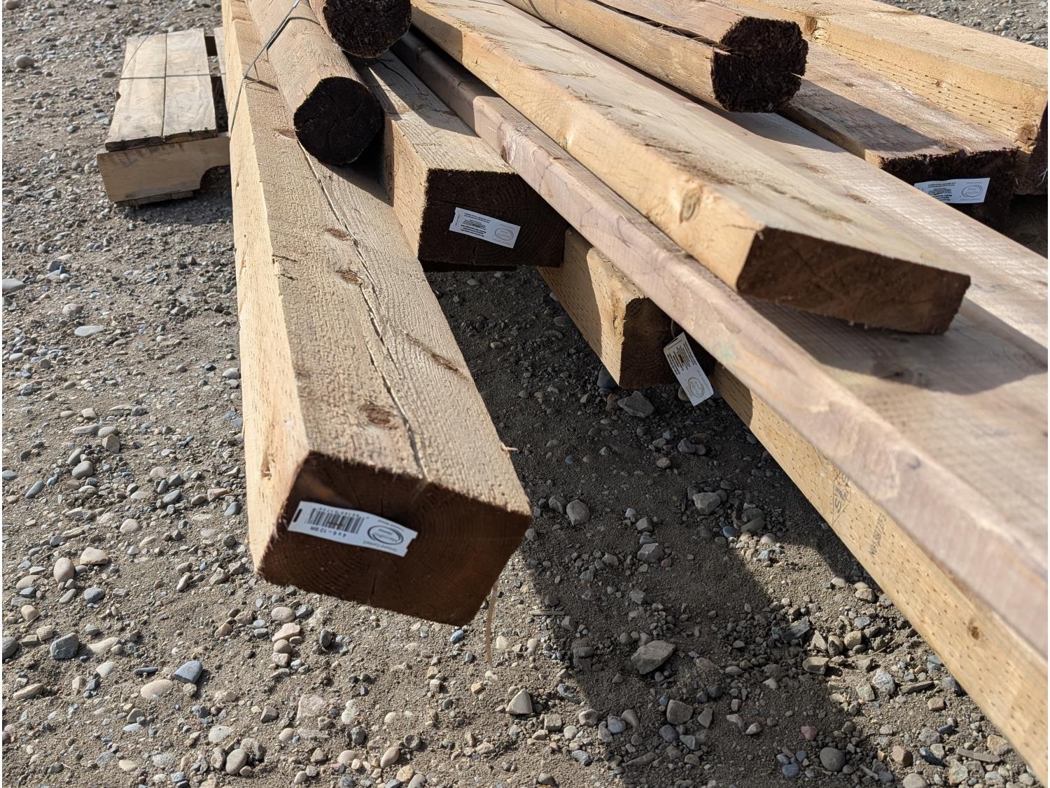 (3) 4 inch x 6 inch x 10 ft (1) 4 inch x 6 inch x 12 ft (1) 4 inch x 6 inch x 16 ft (4) 2 inch x 6 inch x 16 ft (1) 2 inch x 6 inch x 12 ft (2) 4 inch x 4 inch x 16 ft (1) 4 inch x 4 inch x 10 ft (1) 2 inch x 6 inch x 10 ft (3) 96 inch landscape ties