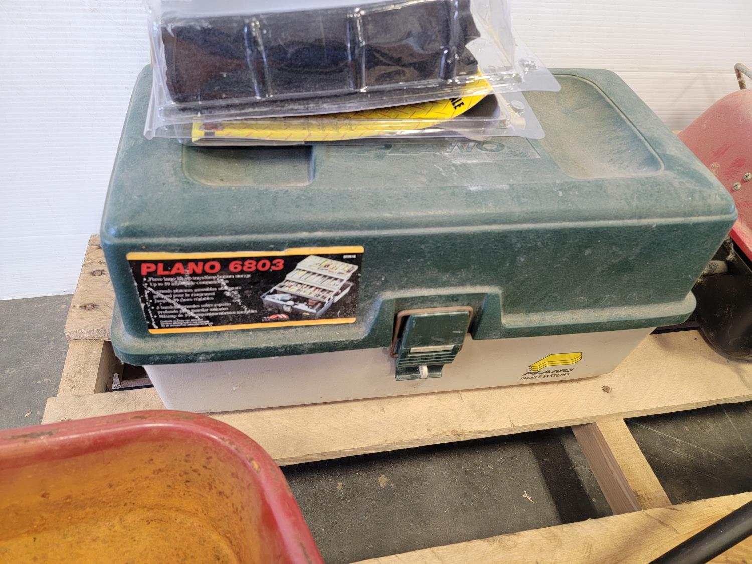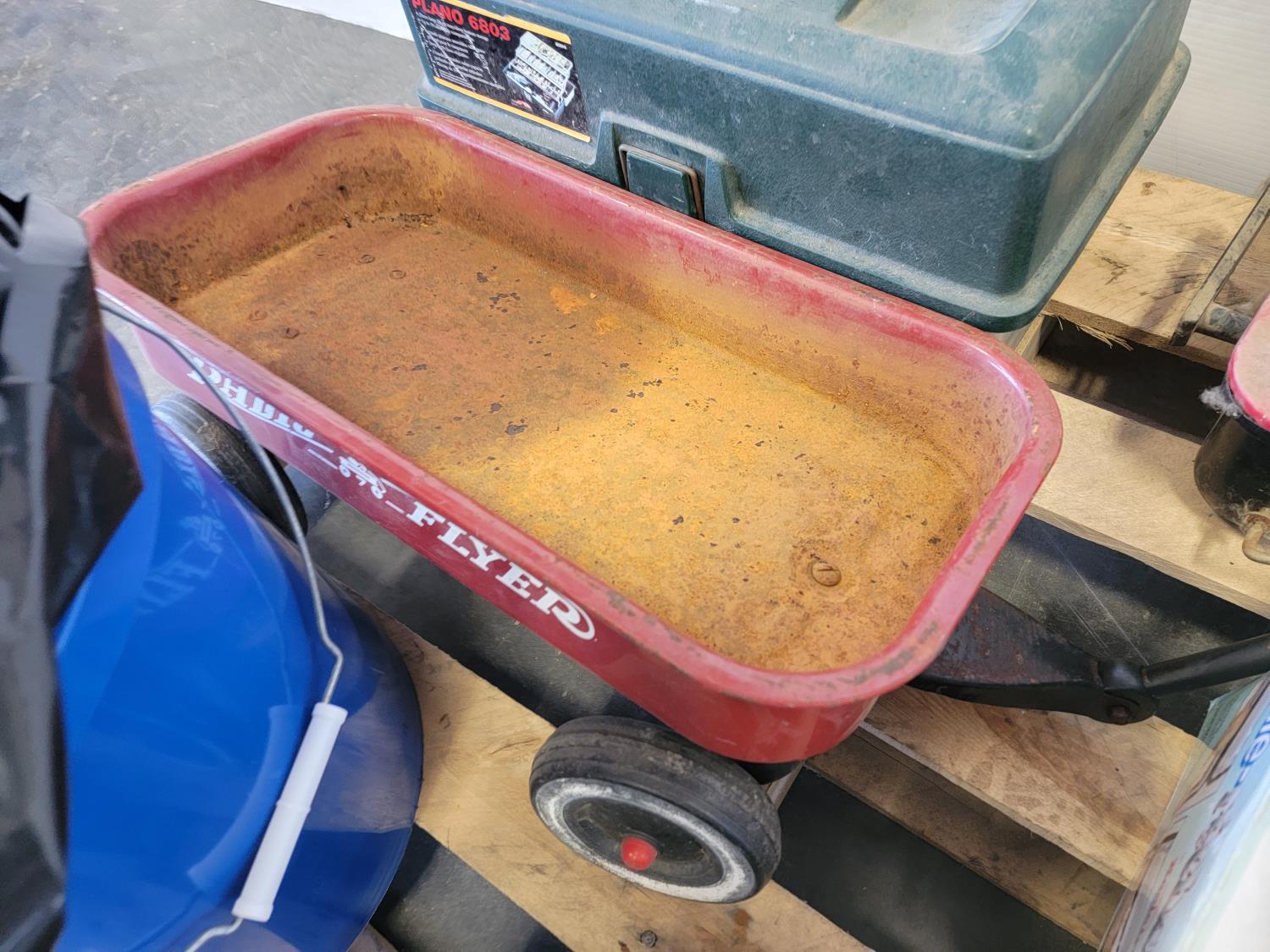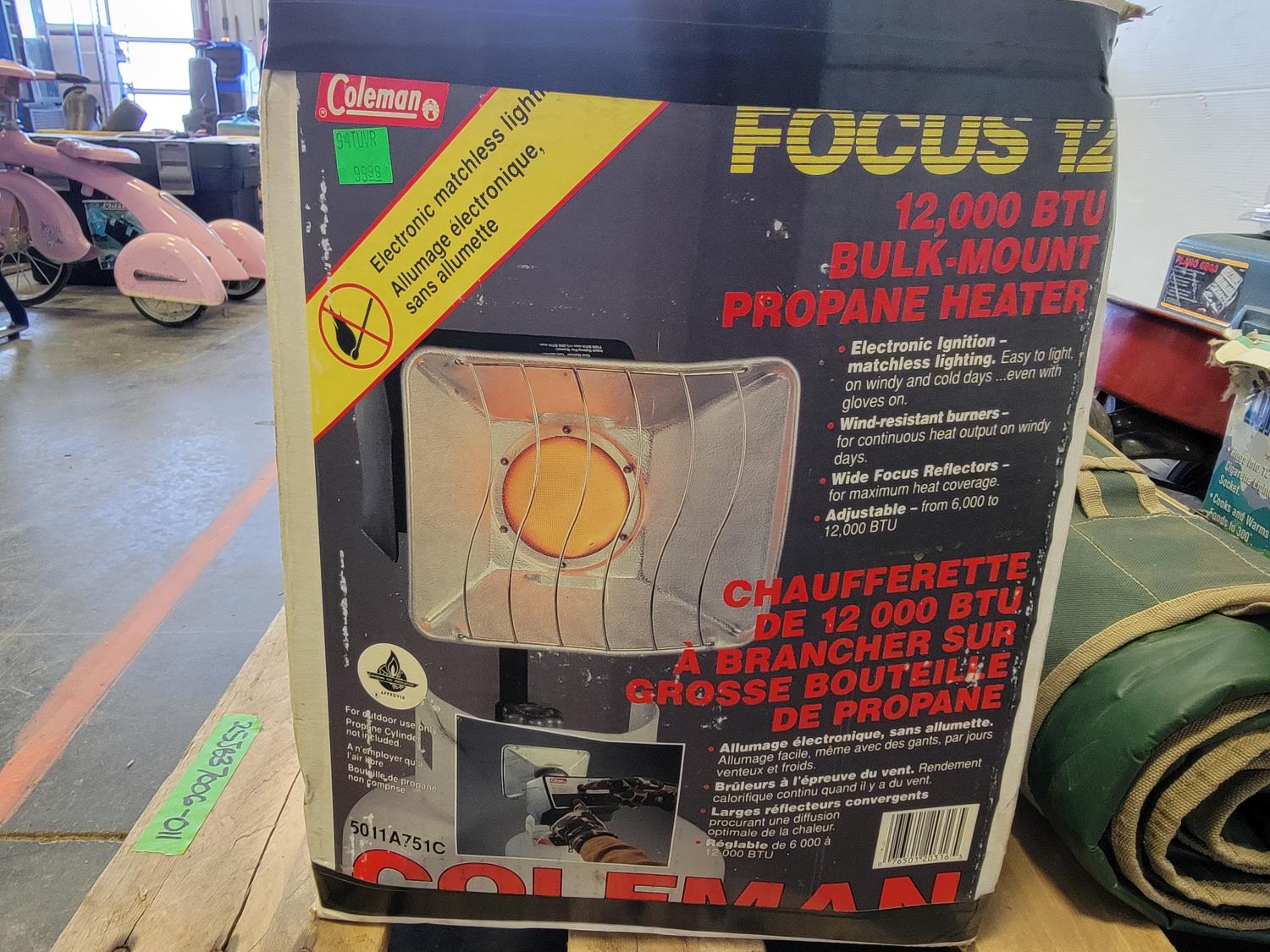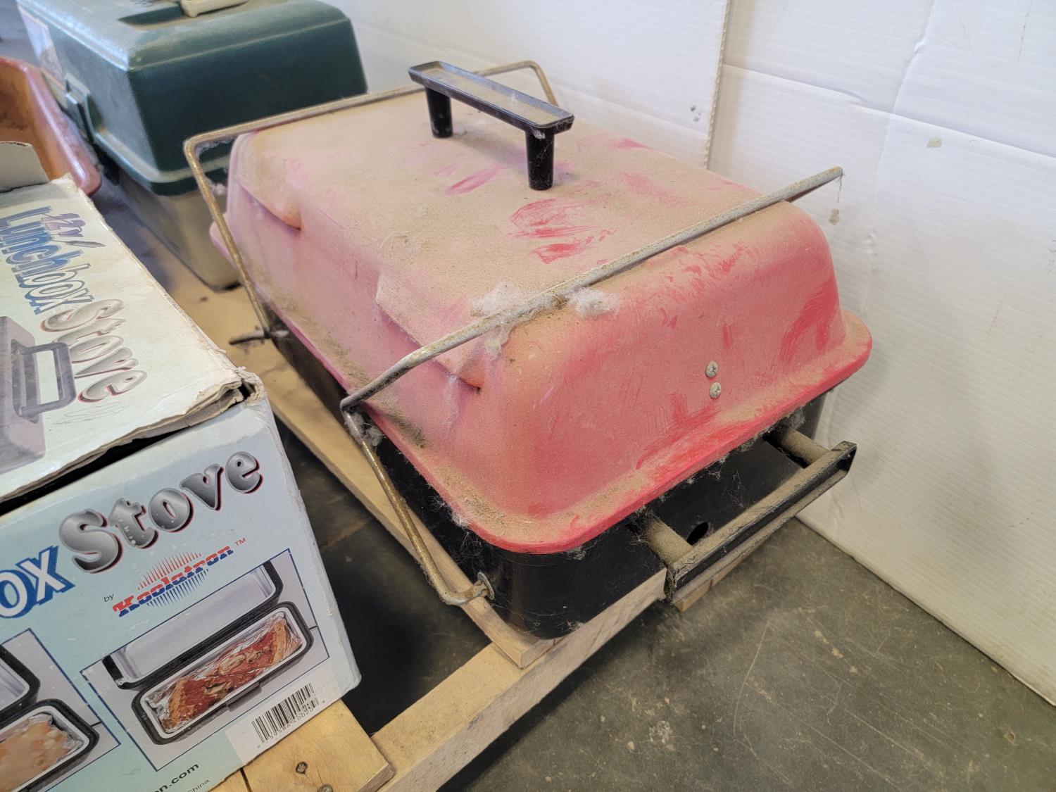 Humminbird fish finder, 12,000 BTU propane heater, propane lantern, Radio Flyer wagon, 12V lunch box stove, portable propane BBQ, tackle box