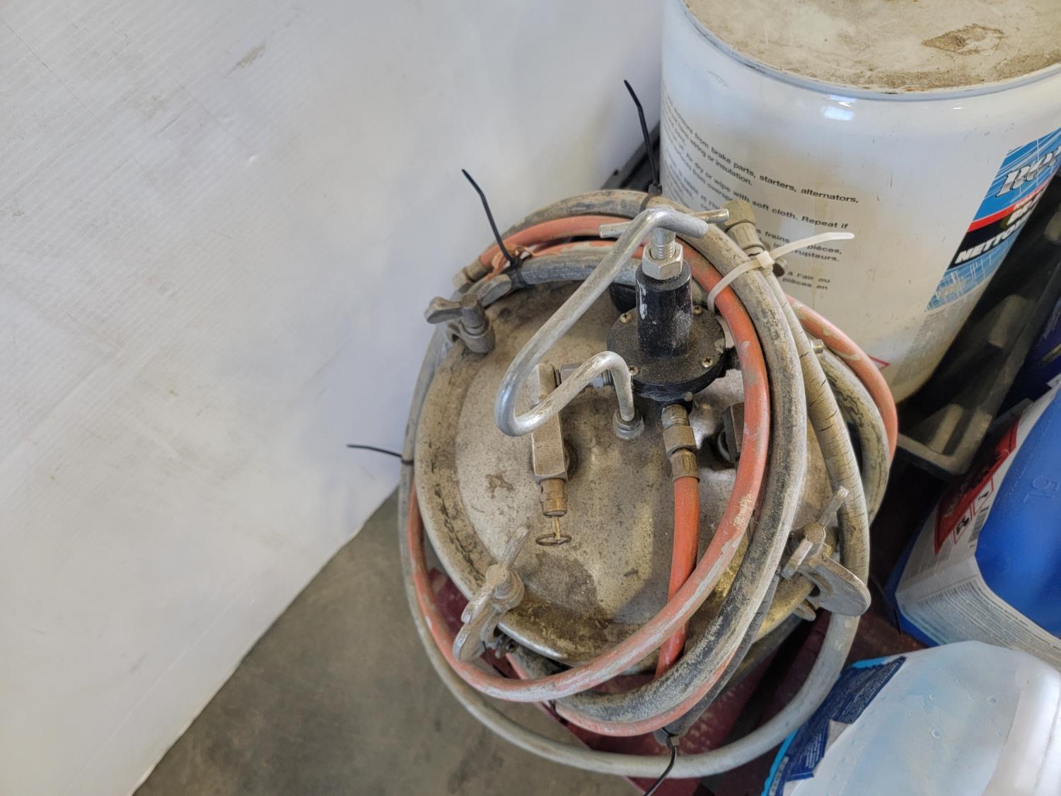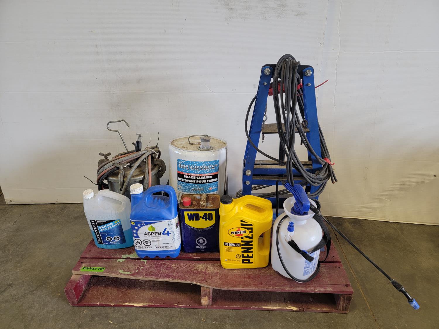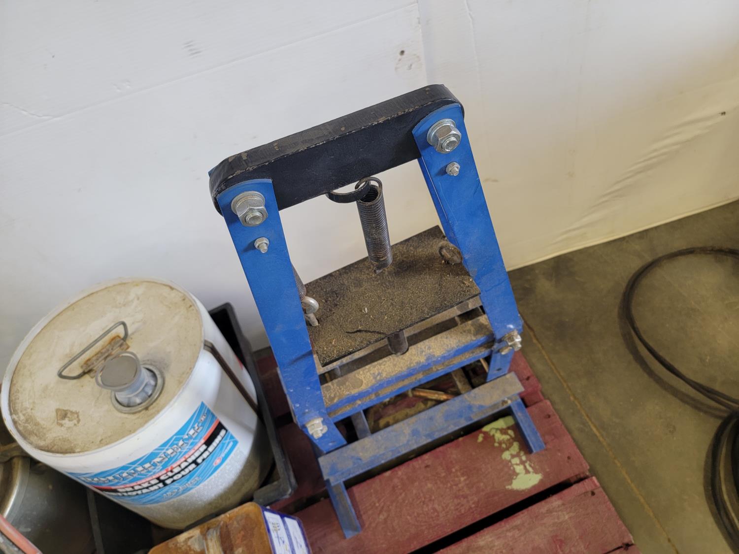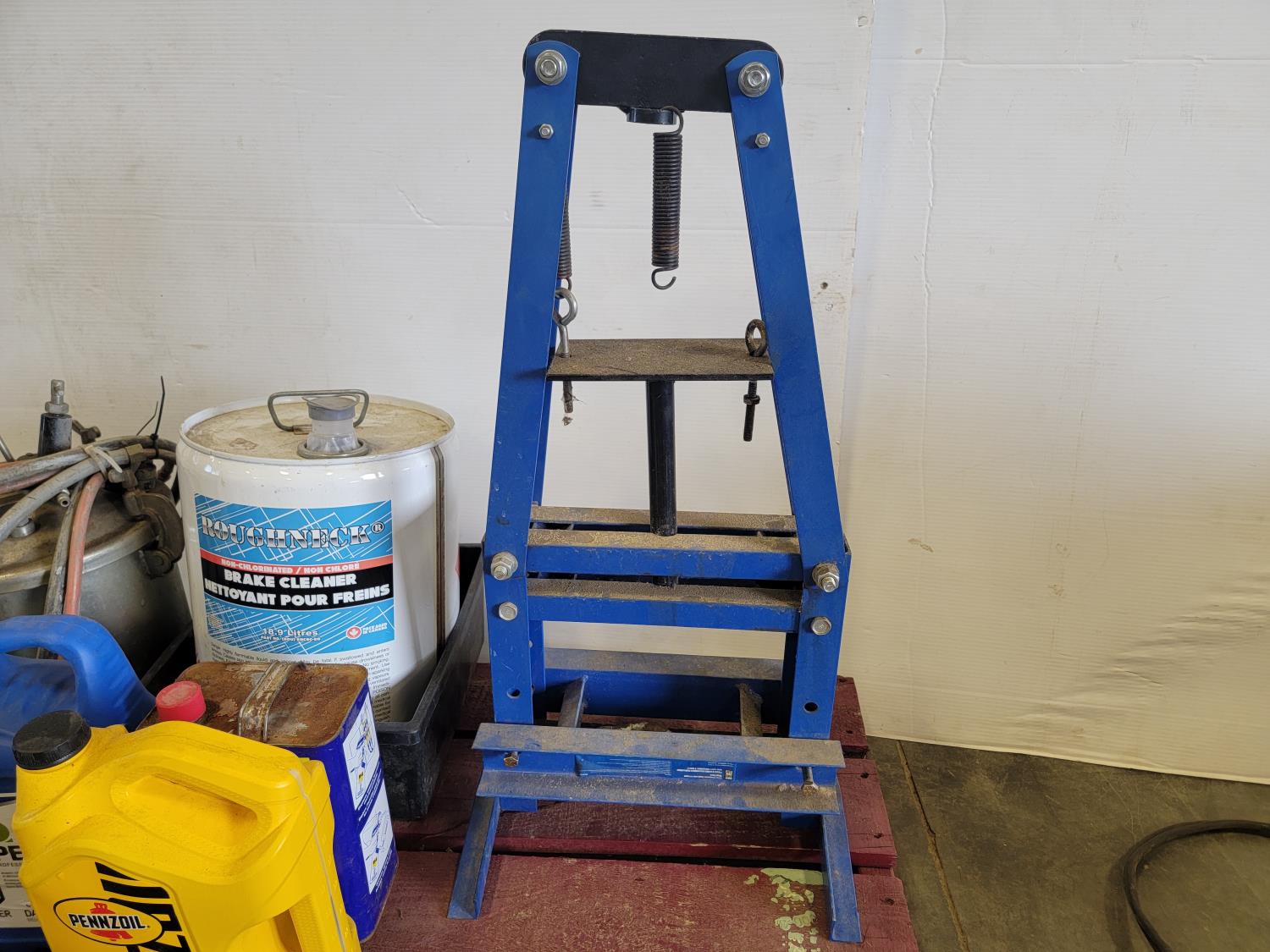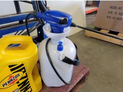 Powerfist 1 gallon sprayer, brake cleaner, WD-40, 10W-30 engine oil, 6 ton shop press, spray paint pressure pot