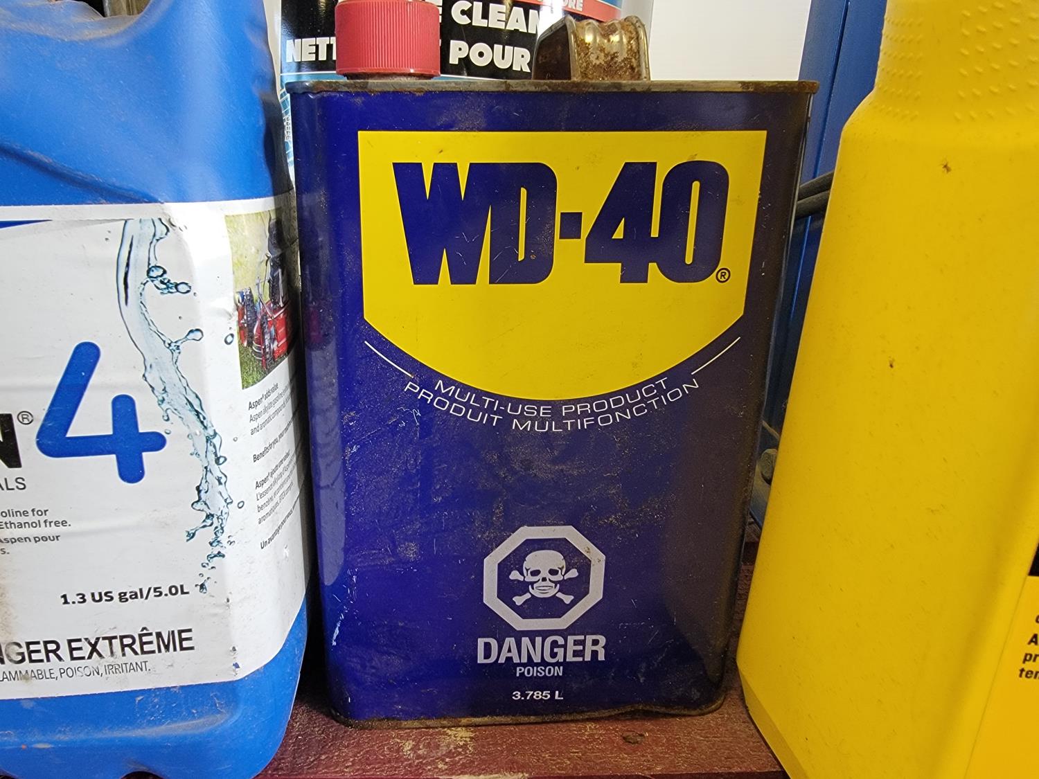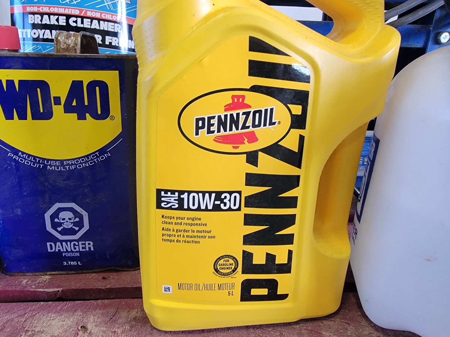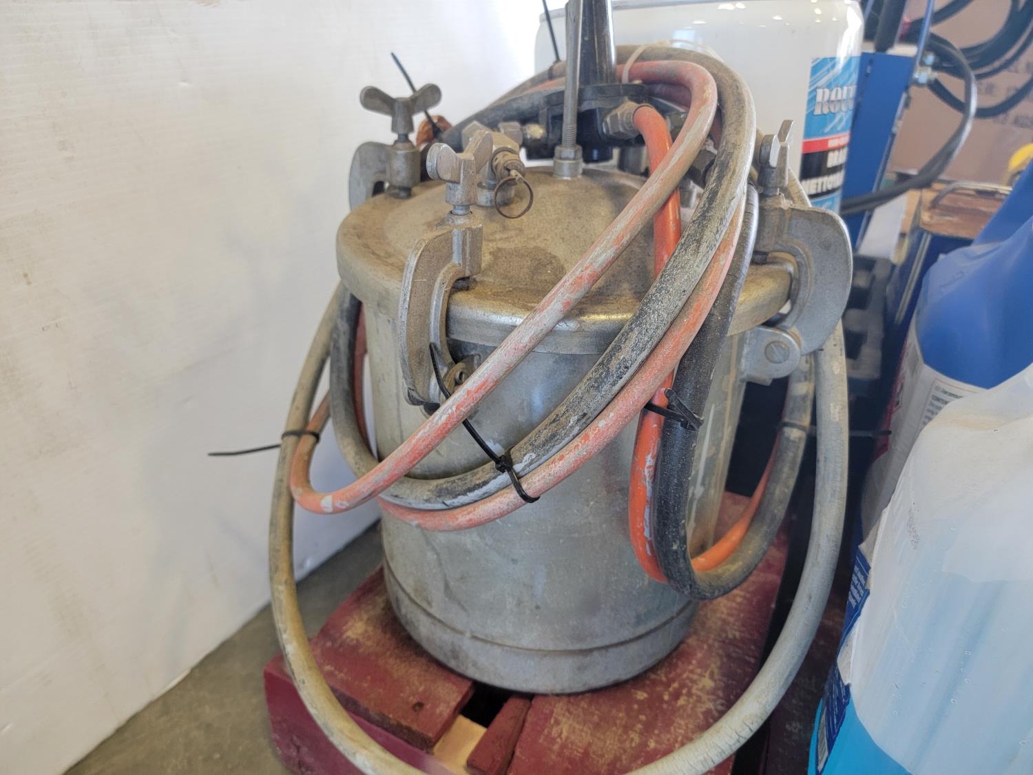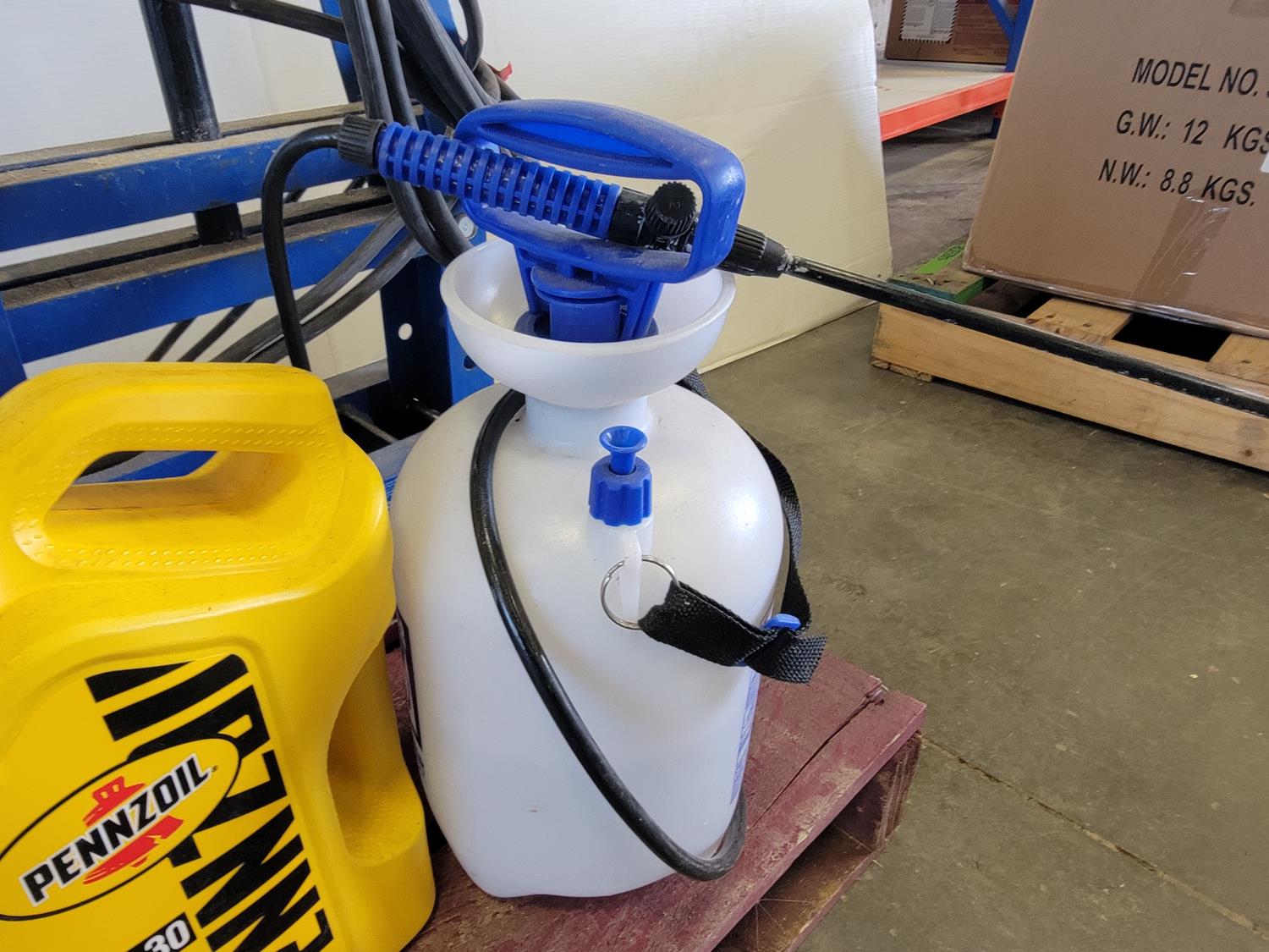 Powerfist 1 gallon sprayer, brake cleaner, WD-40, 10W-30 engine oil, 6 ton shop press, spray paint pressure pot