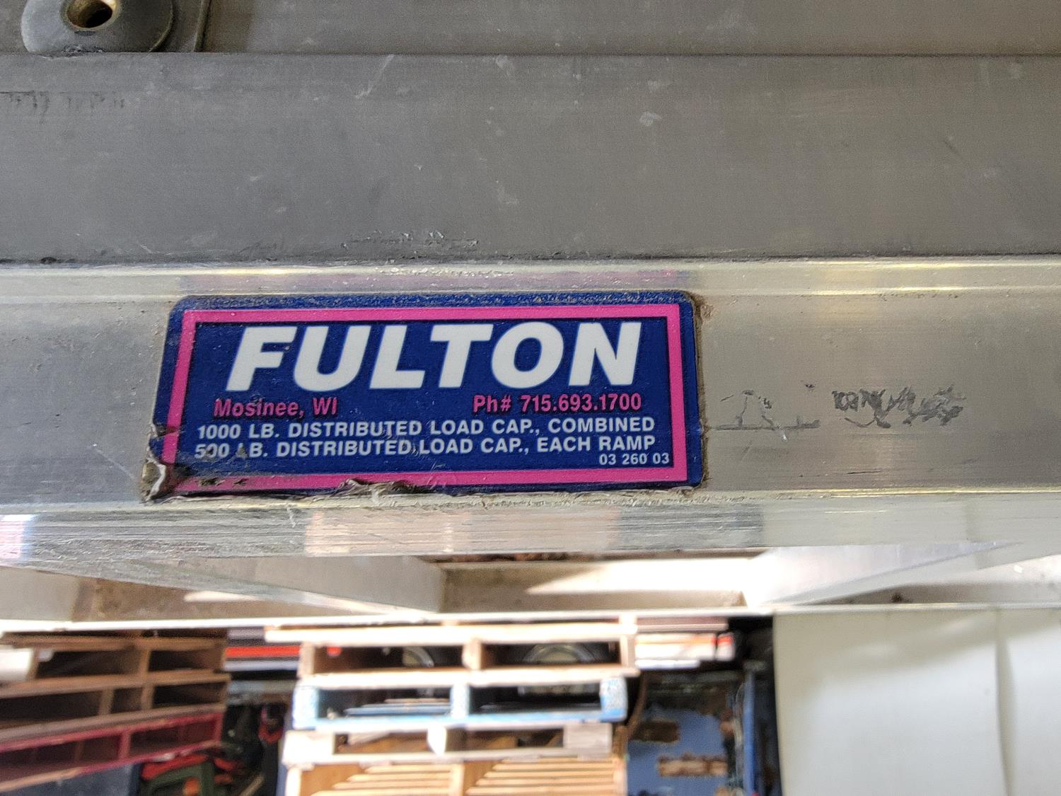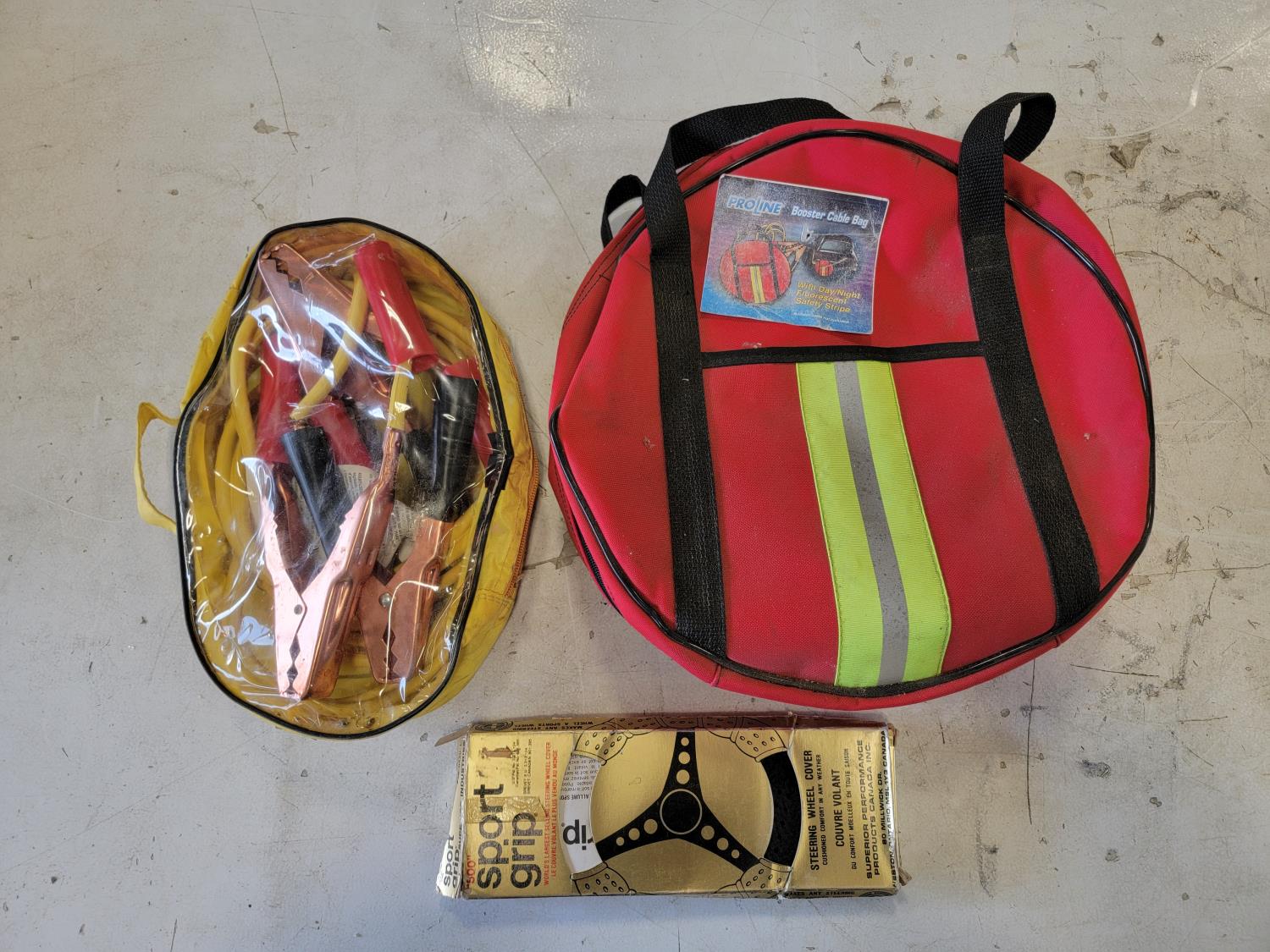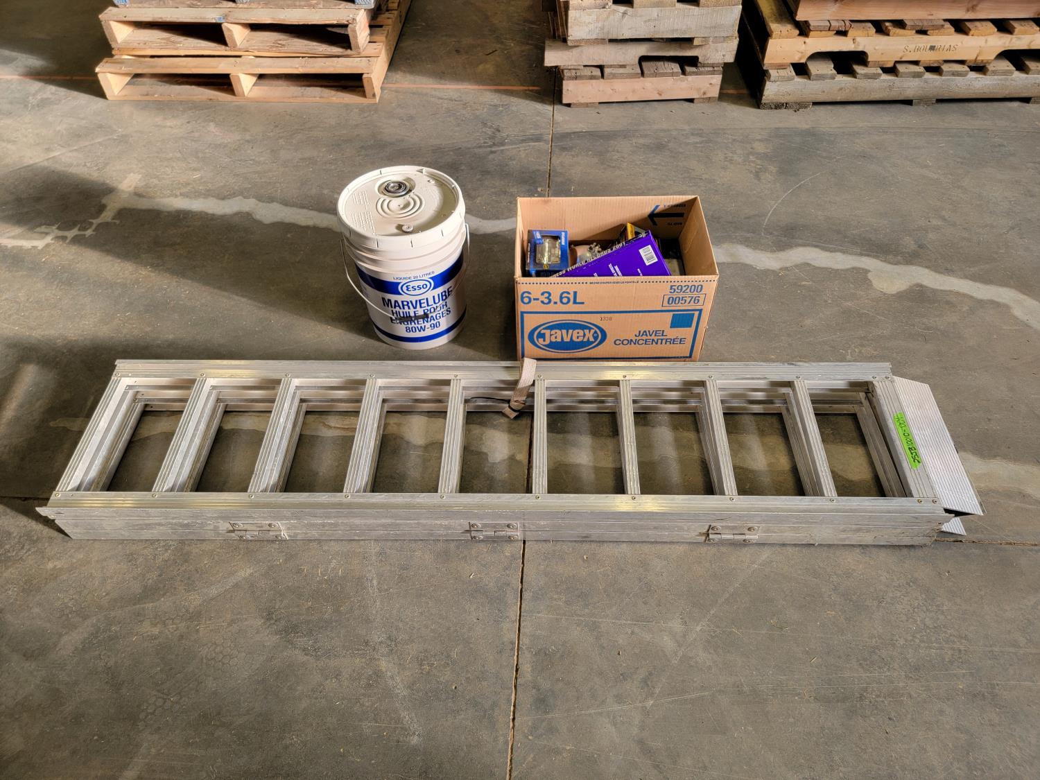 Fulton aluminum tri-fold ramp 48 inch x 73 inch, halogen lamps, 20L 80W-90 oil, booster cables, steering wheel cover