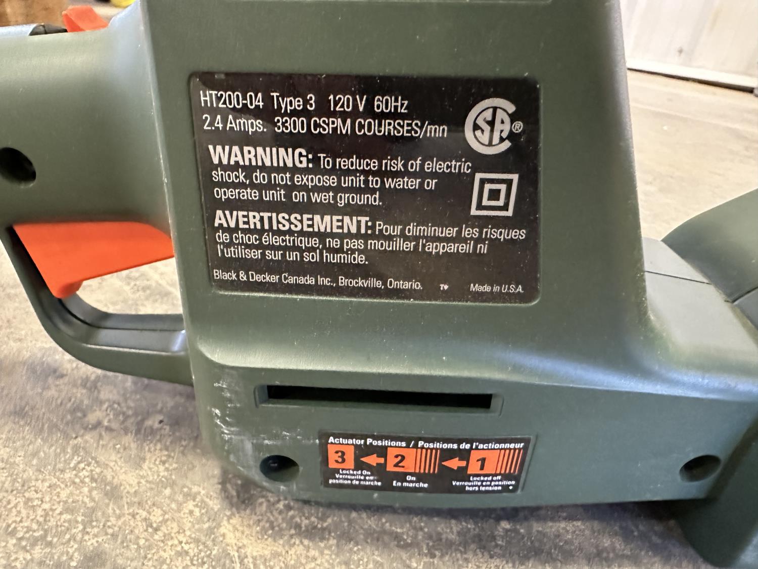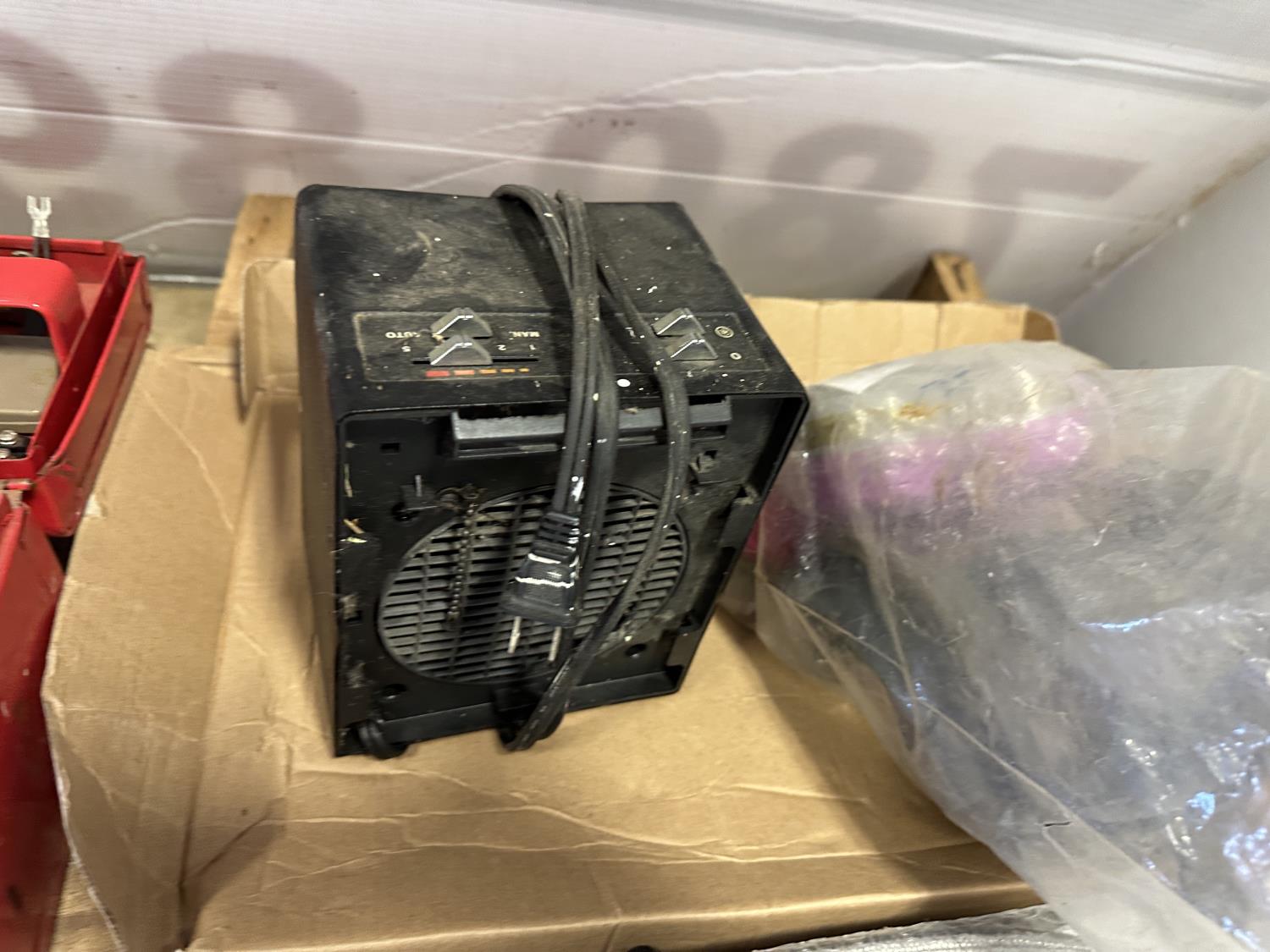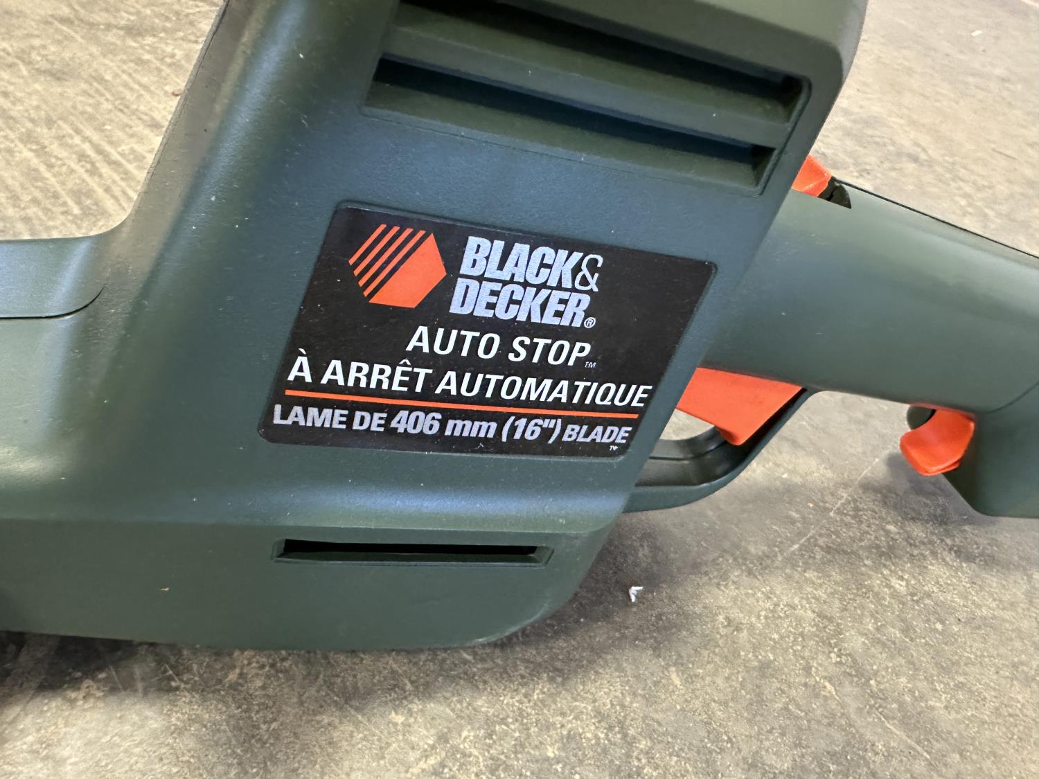 16 inch Black & Decker hedge trimmer, Roman Bath faucet (unused), respirator, mini heater, electrical cables, drills