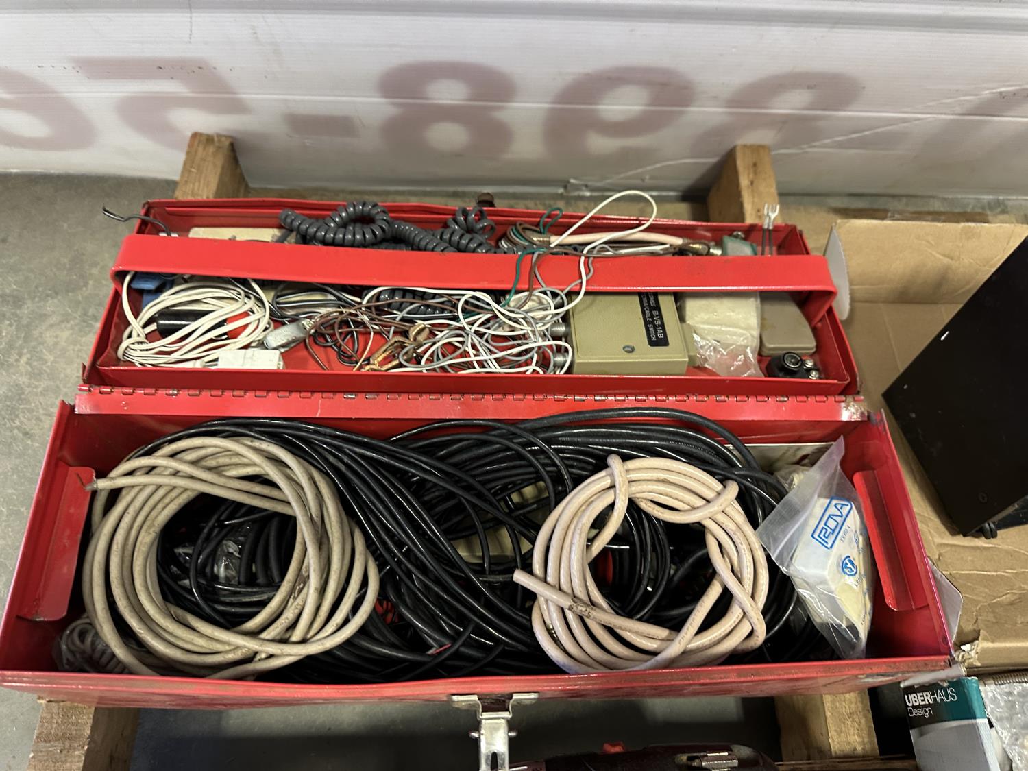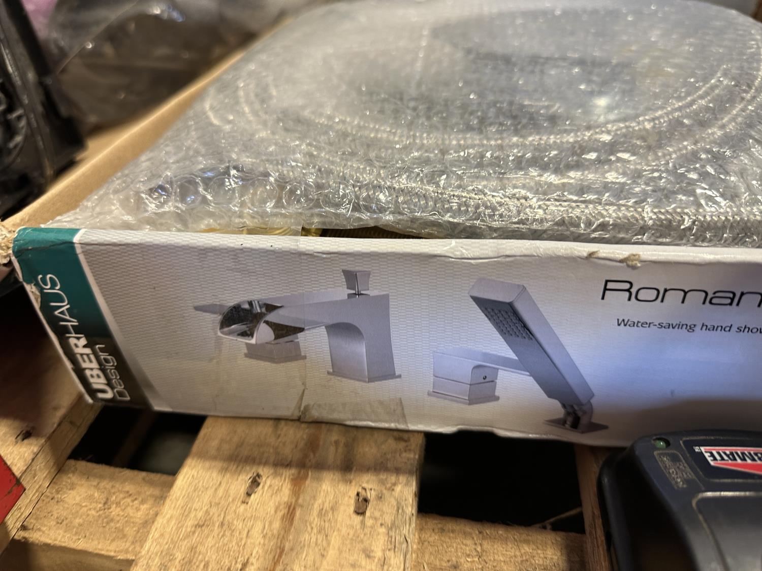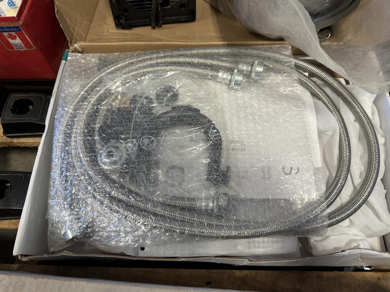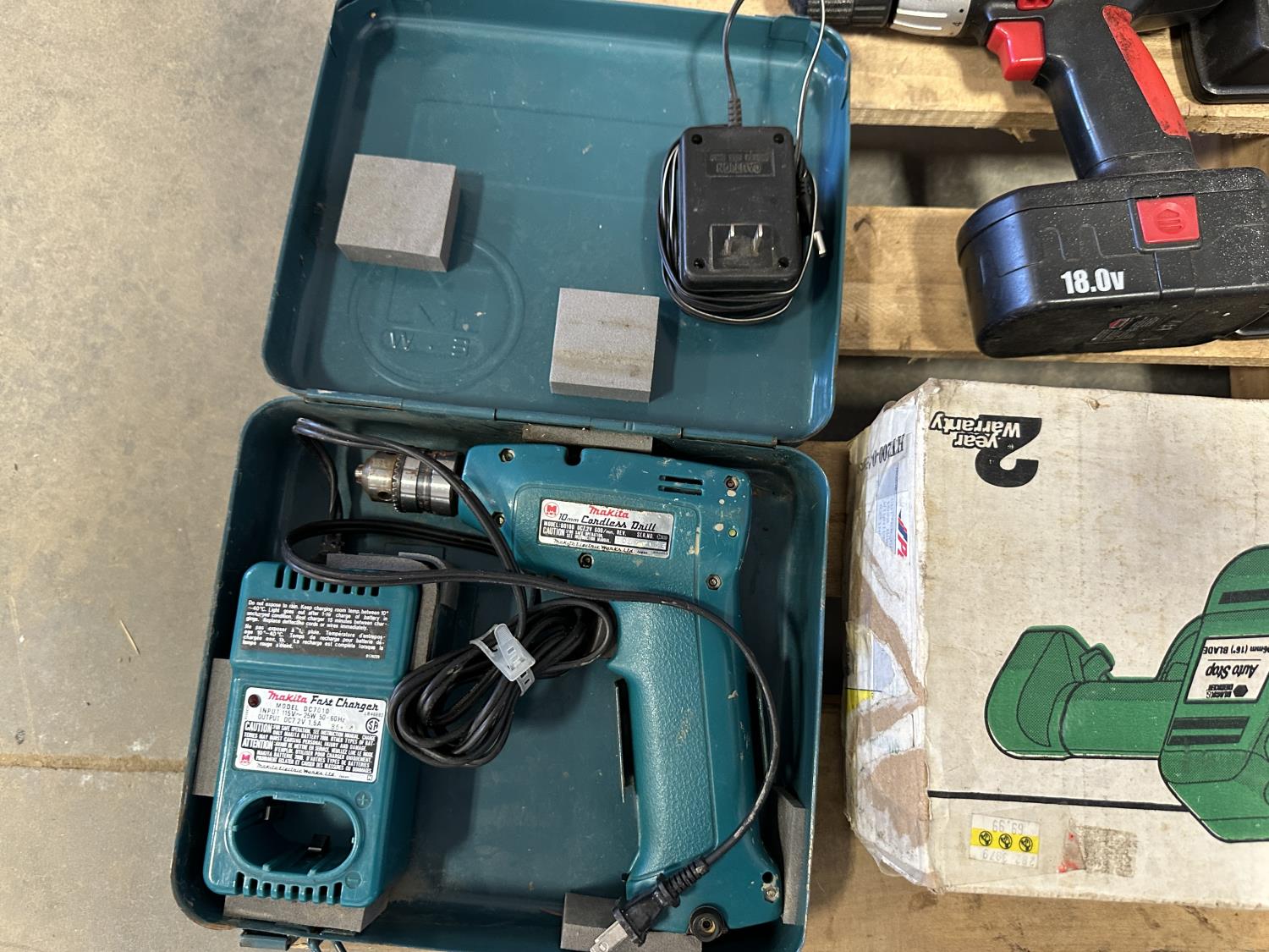 16 inch Black & Decker hedge trimmer, Roman Bath faucet (unused), respirator, mini heater, electrical cables, drills
