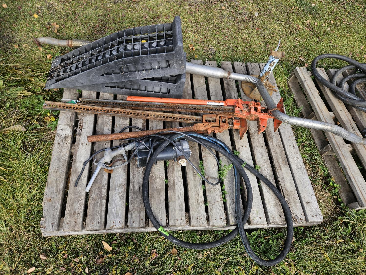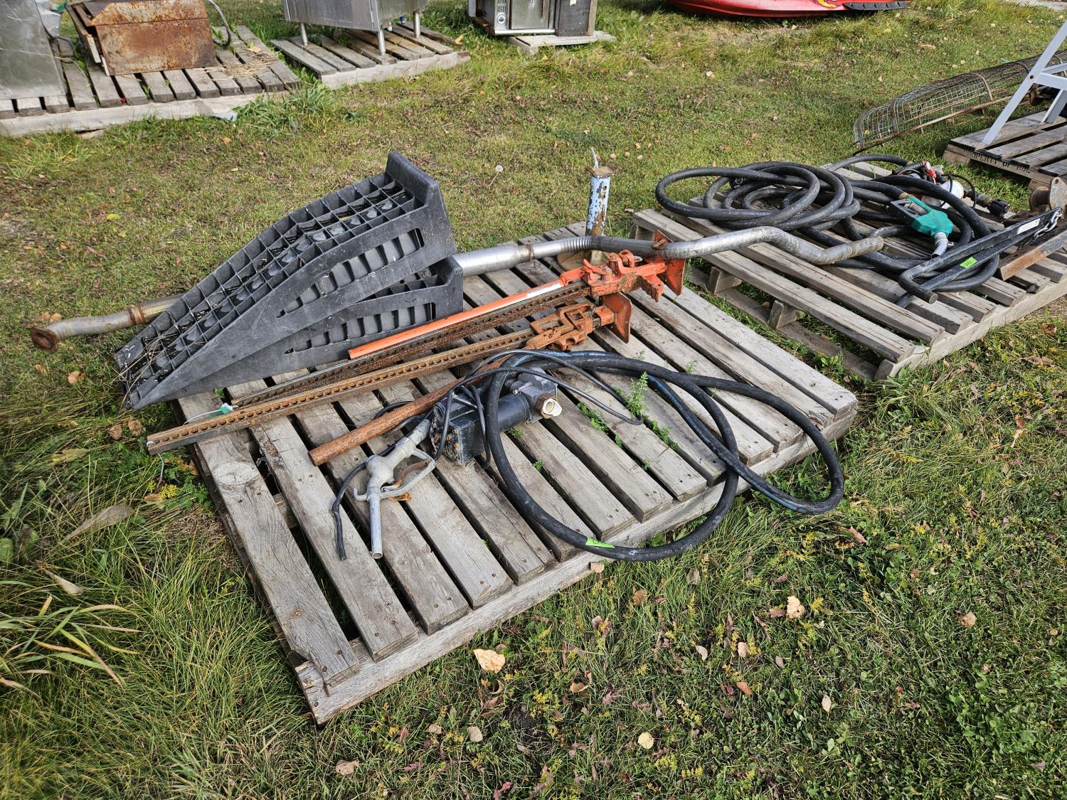 car ramps, jackalls, fuel hoses & nozzles, exhaust pipe