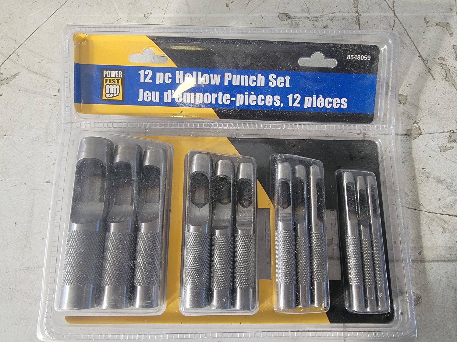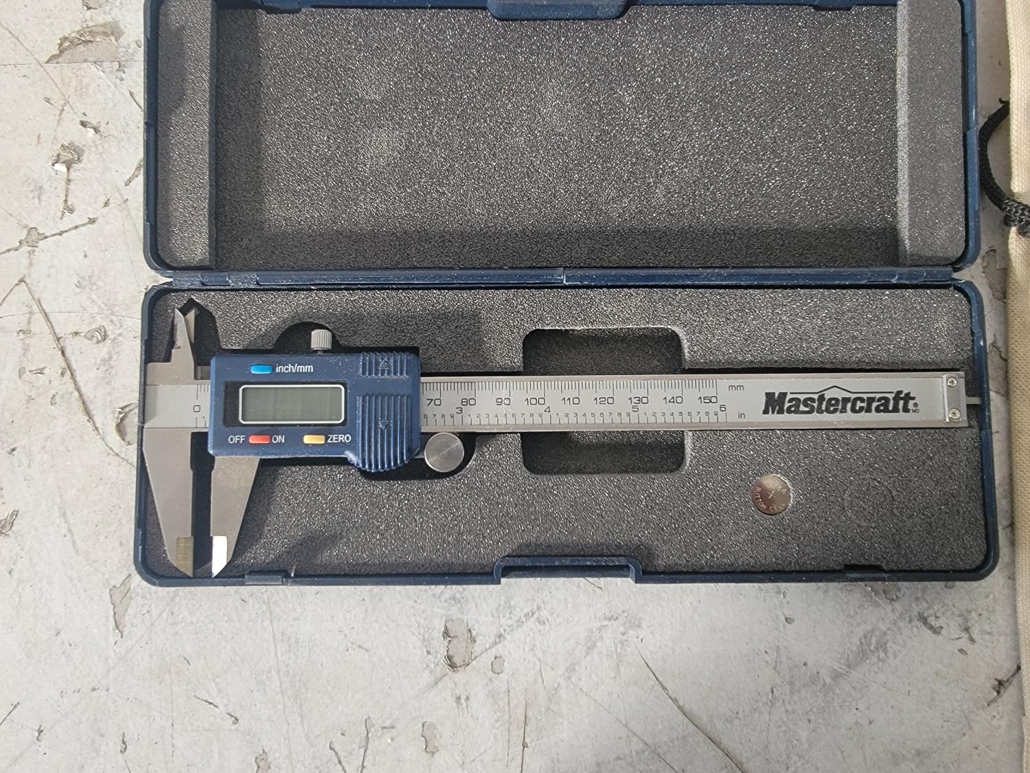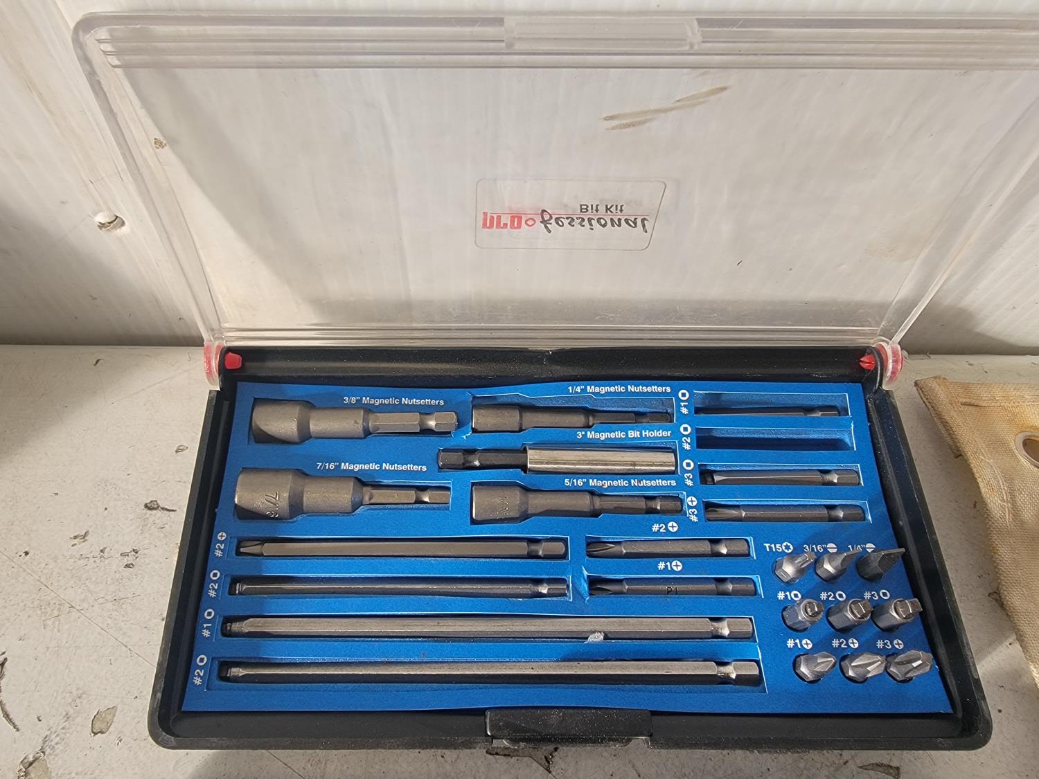 Drill bit set, Mastercraft bolt and nut remover kit, Powerfist 12 piece hollow punch set, Mastercraft digital caliper, bit kit, files, Maximum infrared thermometer