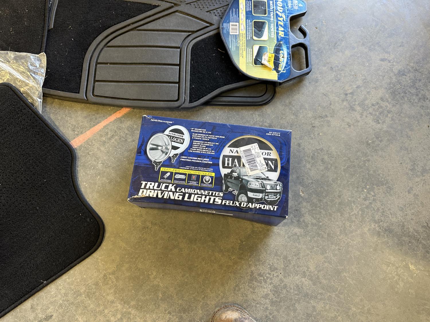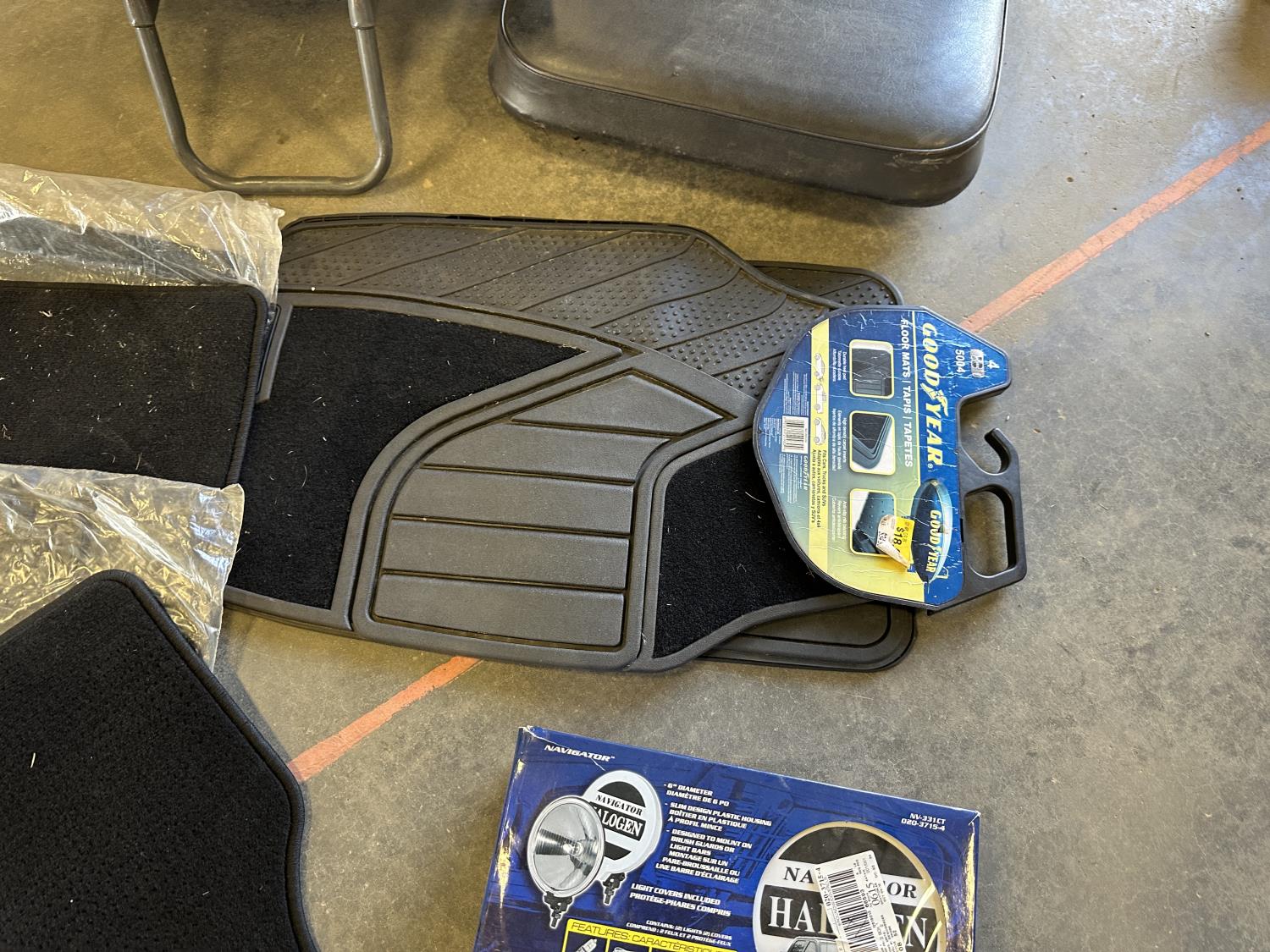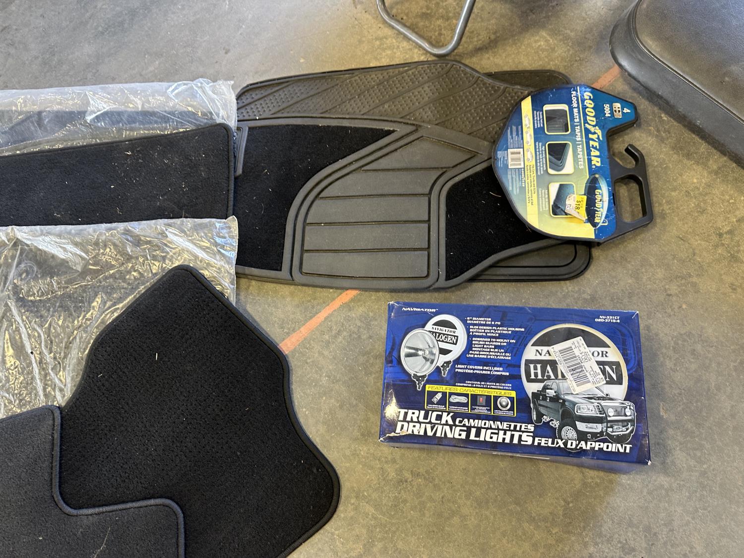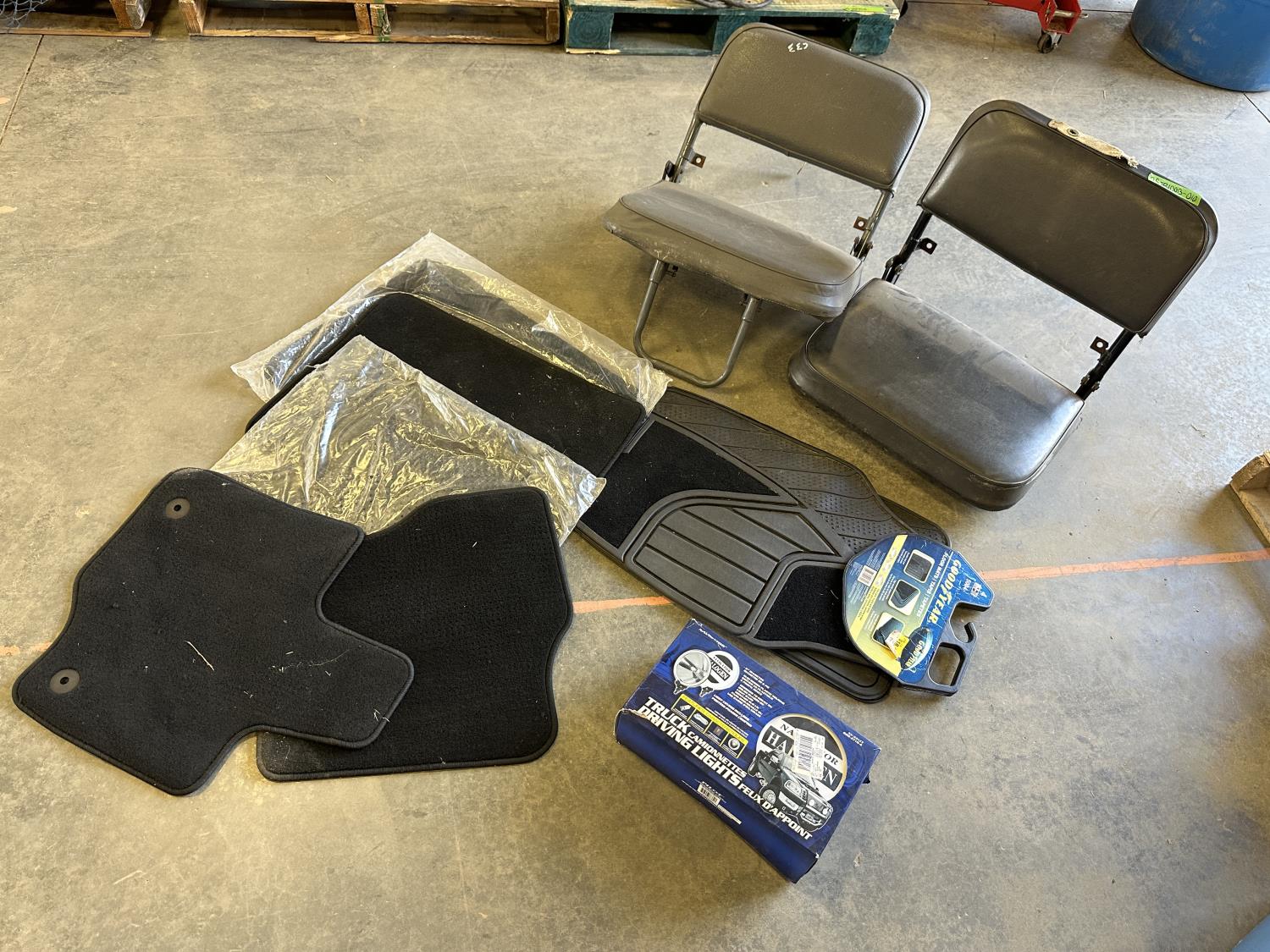 5097 Qty of Vehicle Floor Mats, Driving Lights and (2) Folding Metal Framed Seats