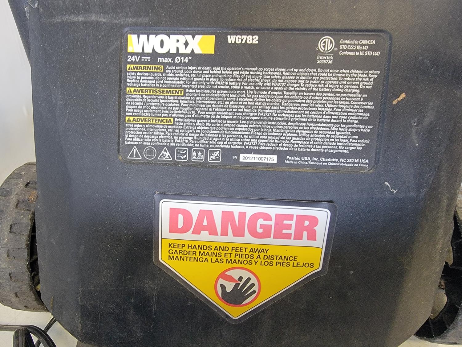 5046 Worx WG782 24V Lawn Mower with Charger