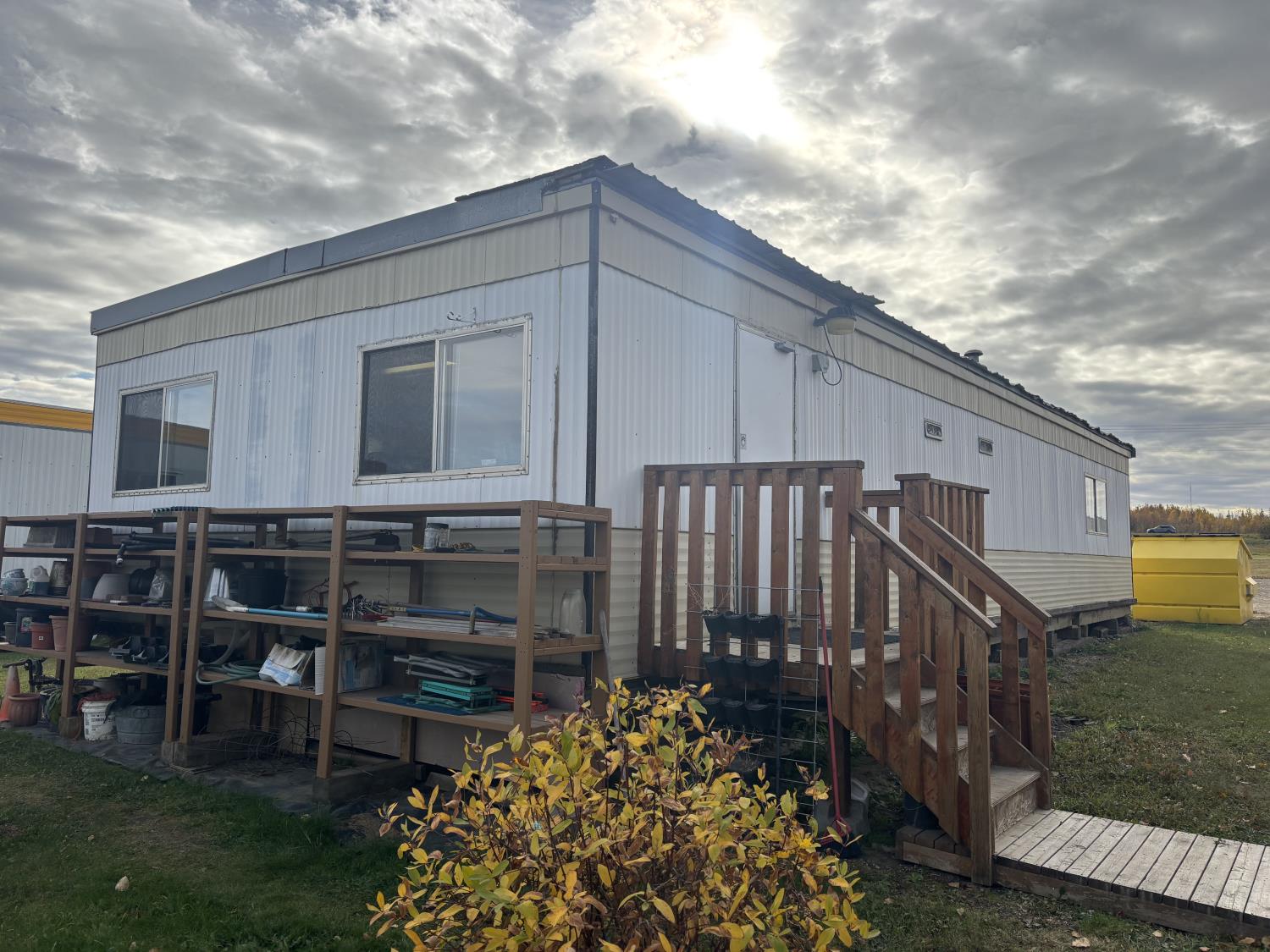 (2) 125 AMP breakers, 120/240 V, (2) natural gas furnaces (only 1 of them operates), (2) exterior doors, windows, lights, (2) sets of outdoor stairs and wooden blocks included. Contents not included. BUYER ASSUMES RESPONSIBILITY FOR LOADOUT. THIS is a OVERSIZE LOAD, PILOT TRUCKS and PROPER TRANPORTATION EQUIPMENT WILL BE NEEDED.