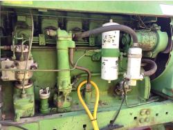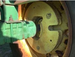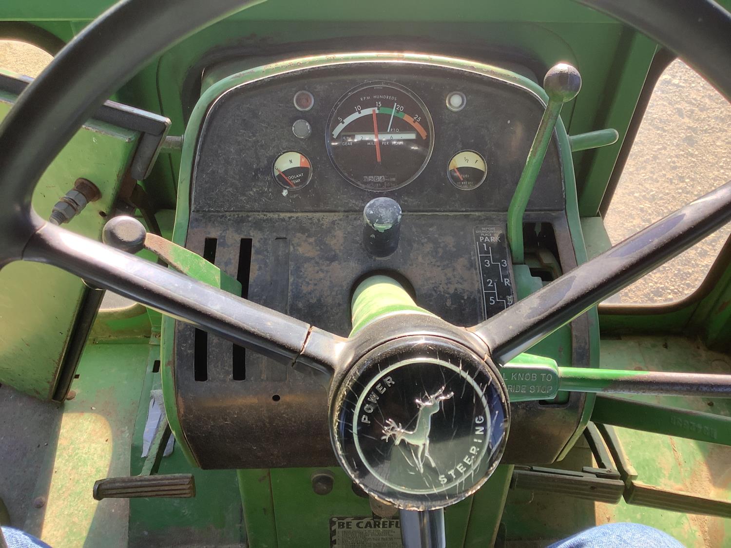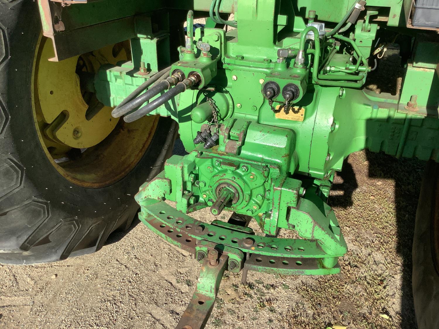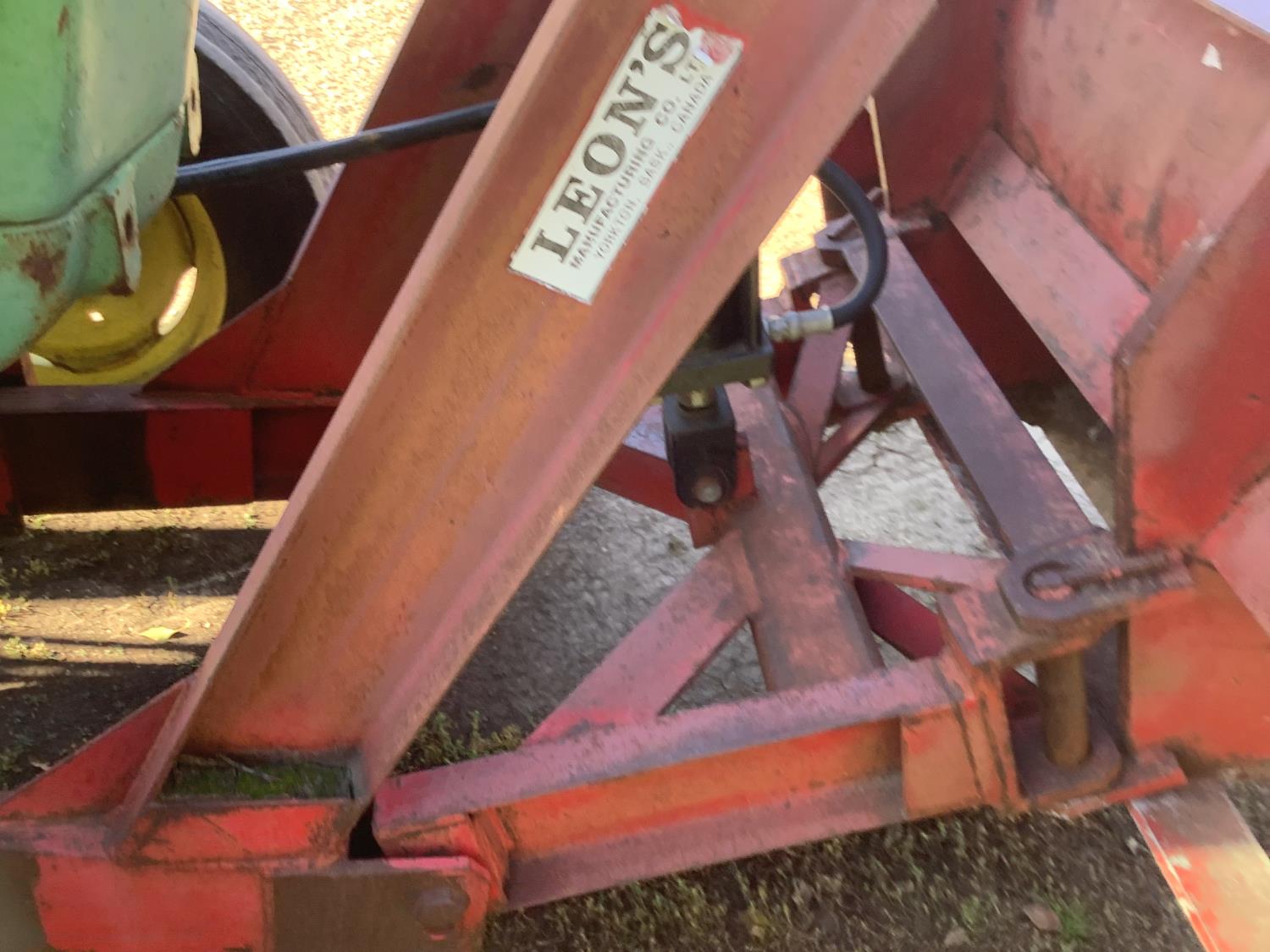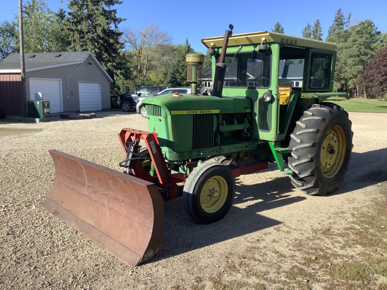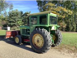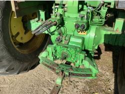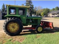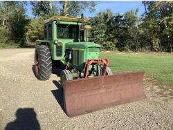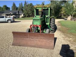 John Deere 6.6 L 6 cylinder engine, 95 PTO HP, 8 speed partial synchro transmission, block and oil pan heater, new engine and transmission oils, rear differential lock, factory cab, Leon dozer blade, 540/1000 PTO, 2 rear hydraulic outlets, rear wheel weights, 184X34 rear tires