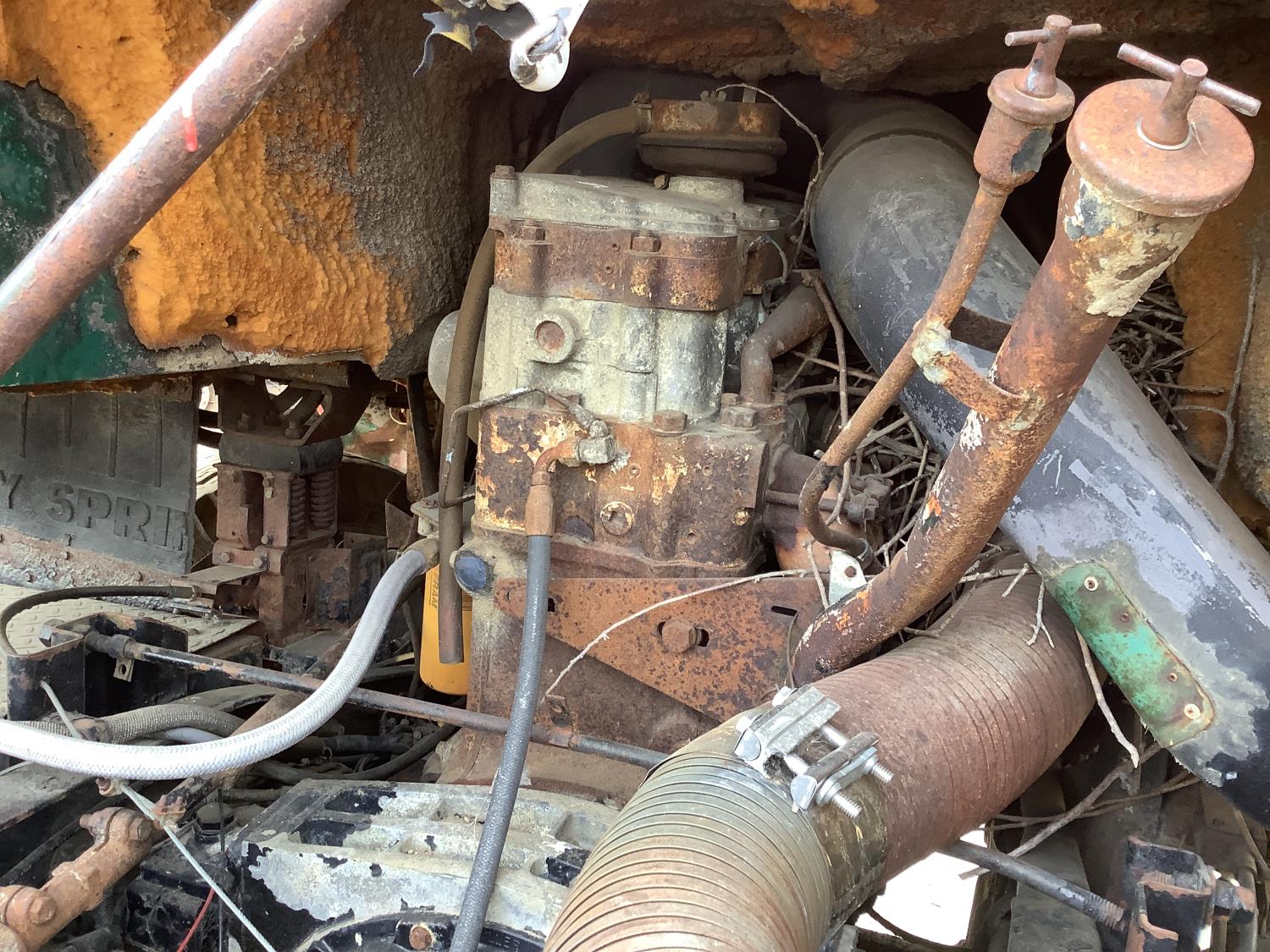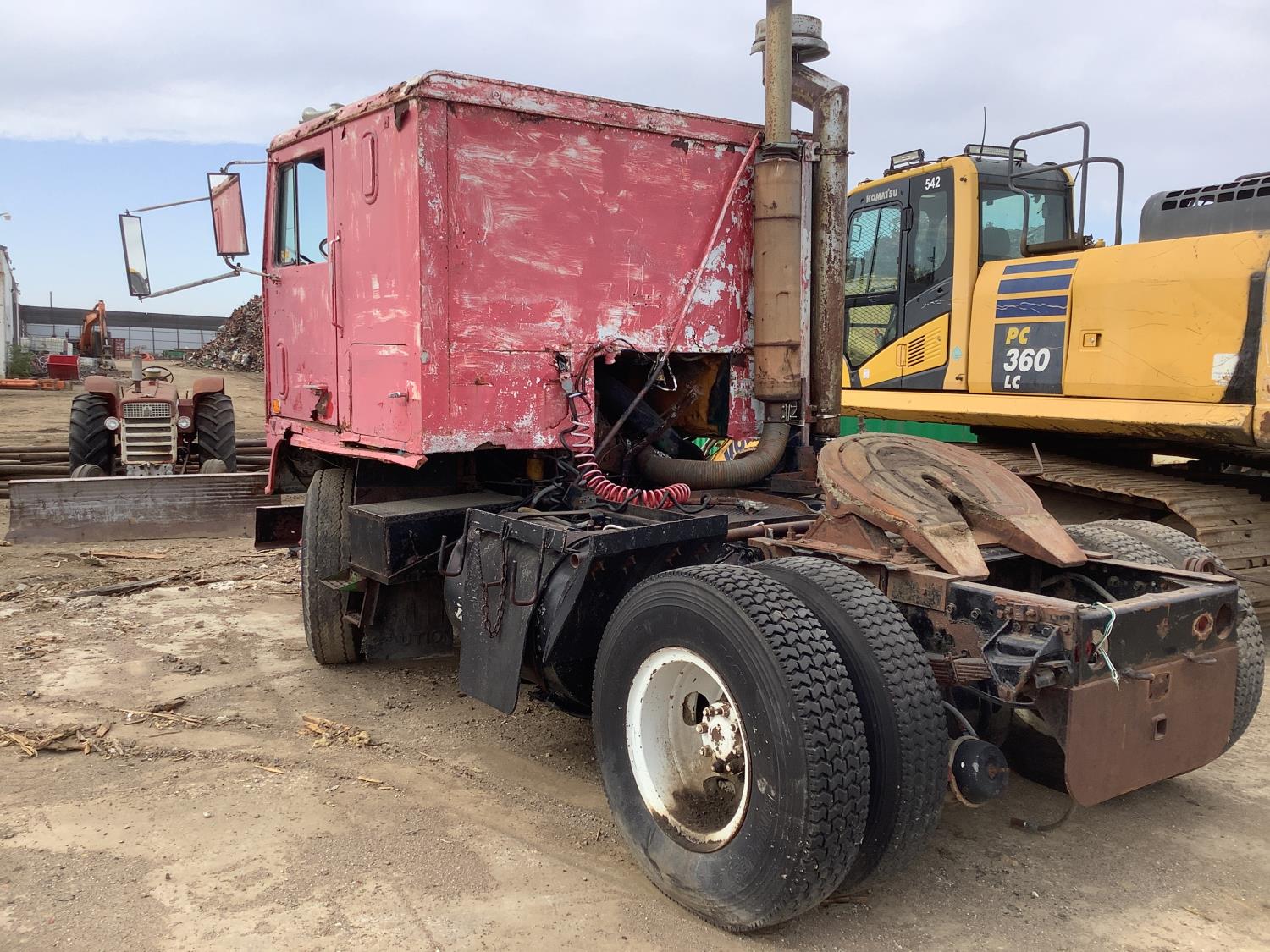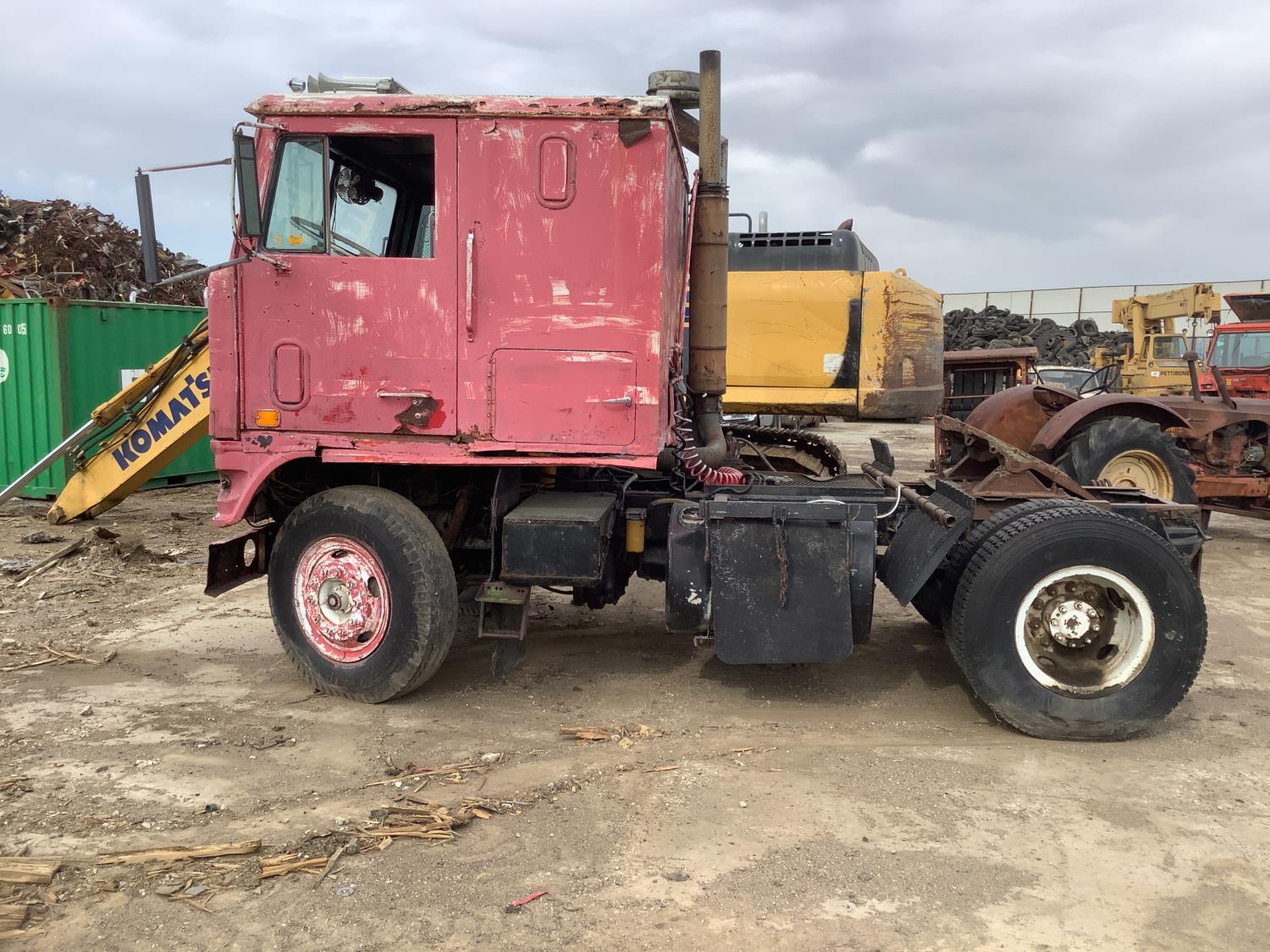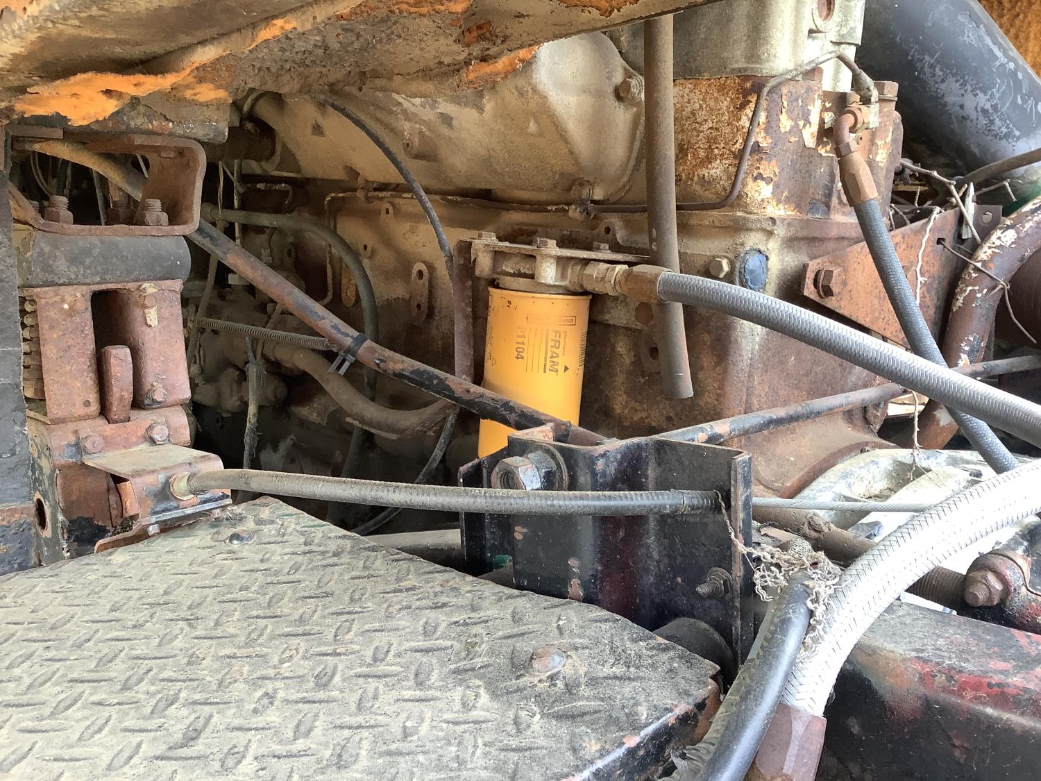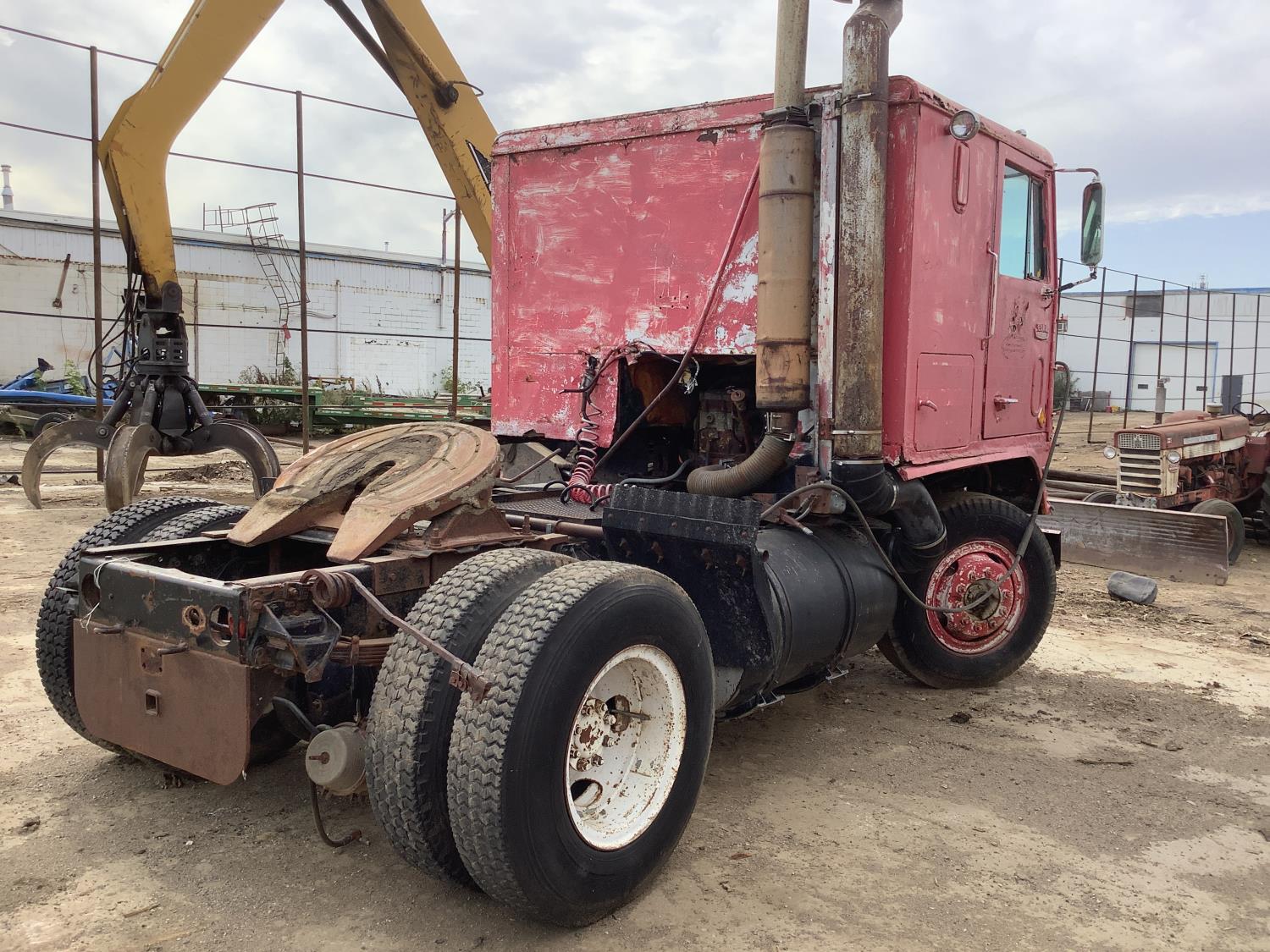 Cummins 250 HP engine, 10 speed transmission, spring suspension, cab is in rough shape, good restoration project