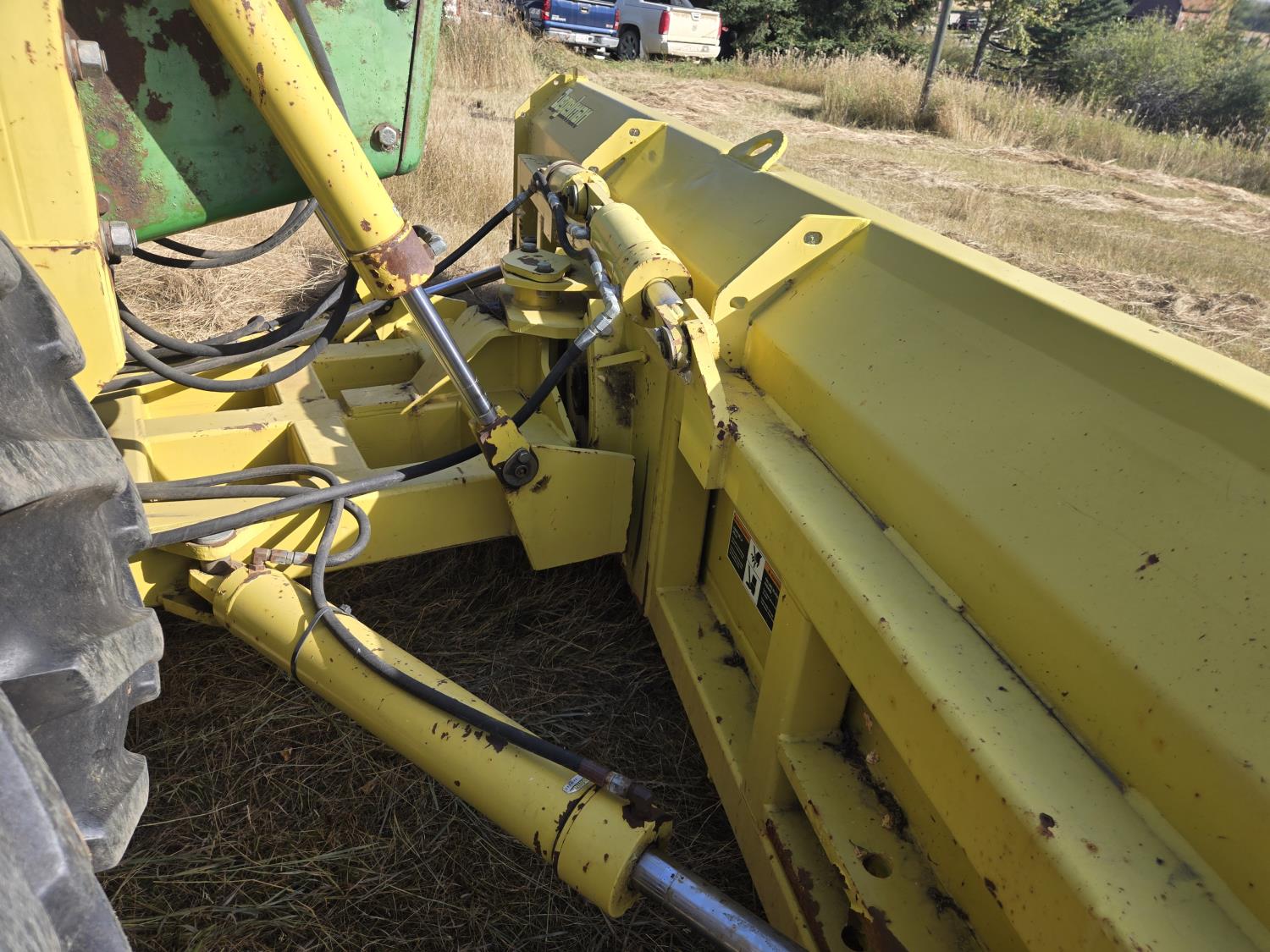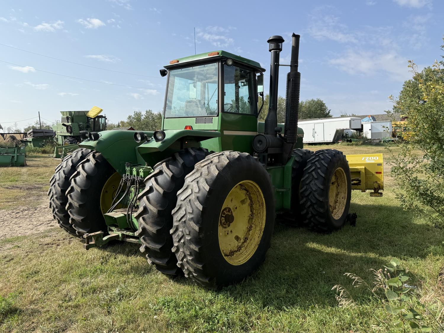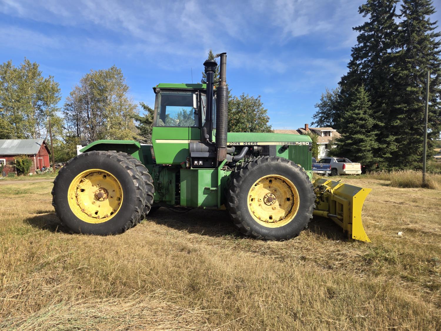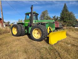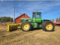 John Deere 7.6 6 cylinder 225 HP, engine, 185 PTO HP, 16 speed Quad Range partial power shift transmission, cab, A/C, radio, Degelman 7200 14' 6-way blade, 18.4R38 tires, factory duals