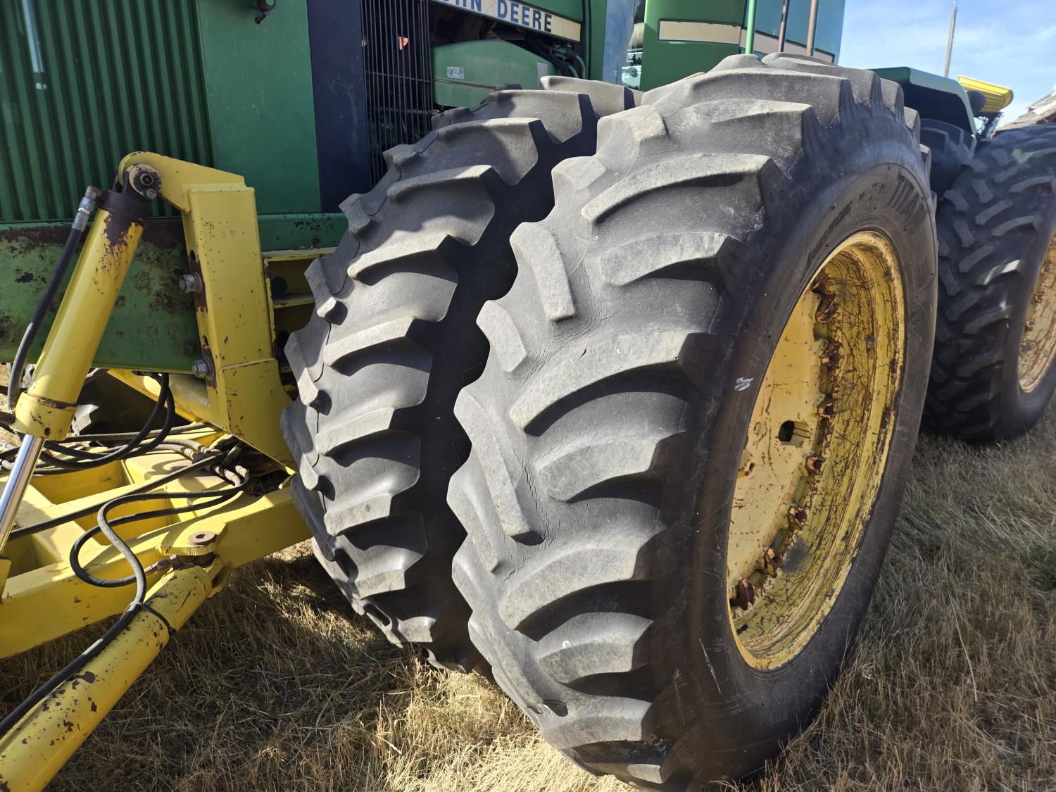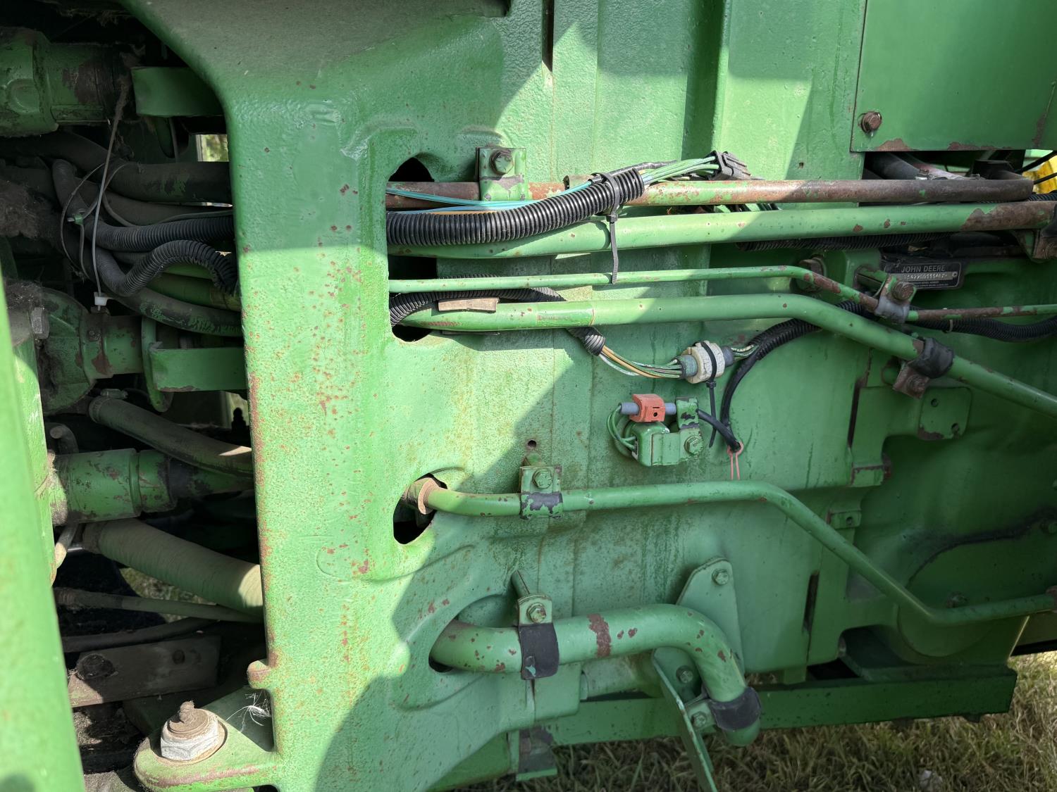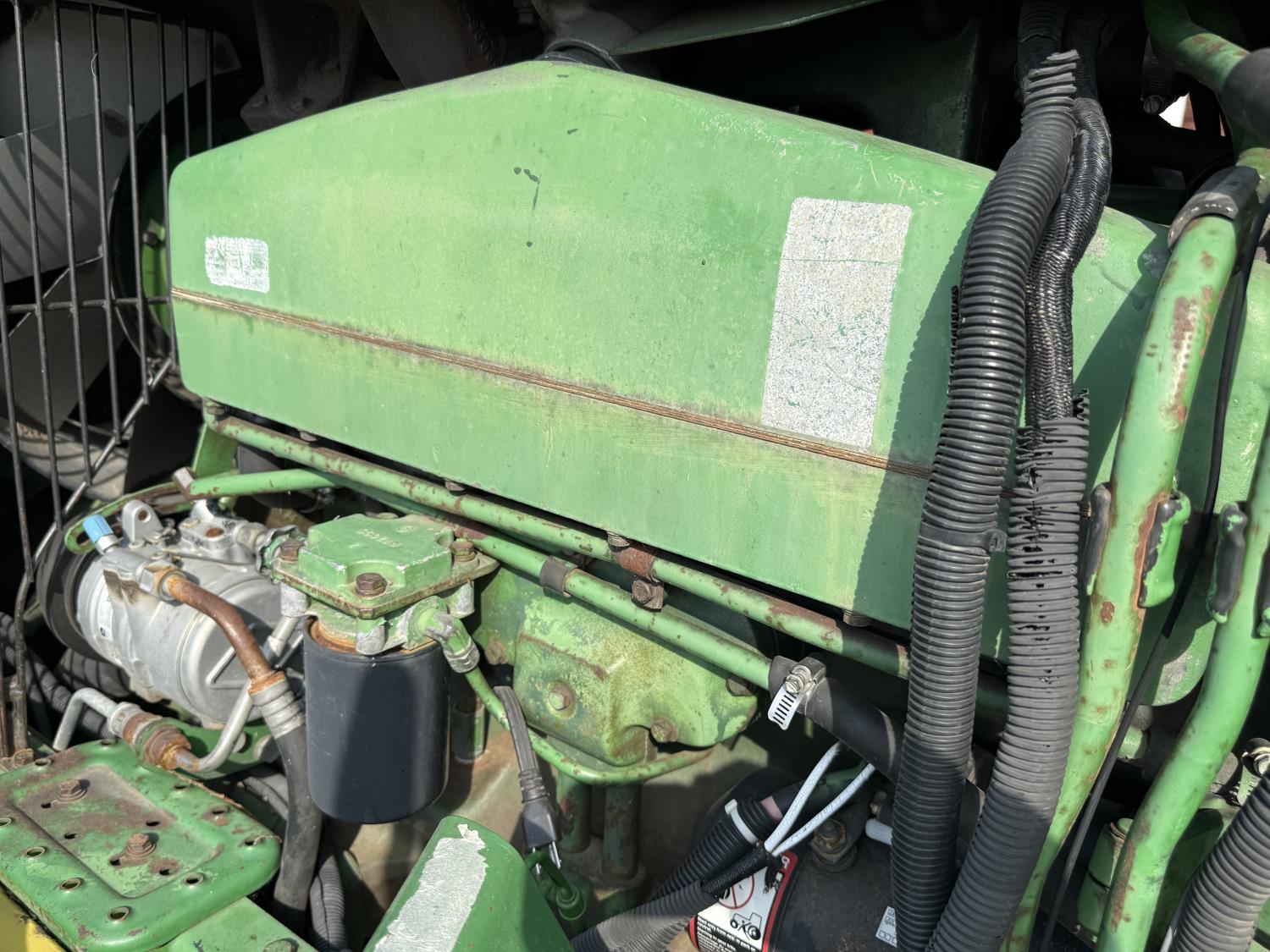 John Deere 7.6 6 cylinder 225 HP, engine, 185 PTO HP, 16 speed Quad Range partial power shift transmission, cab, A/C, radio, Degelman 7200 14' 6-way blade, 18.4R38 tires, factory duals