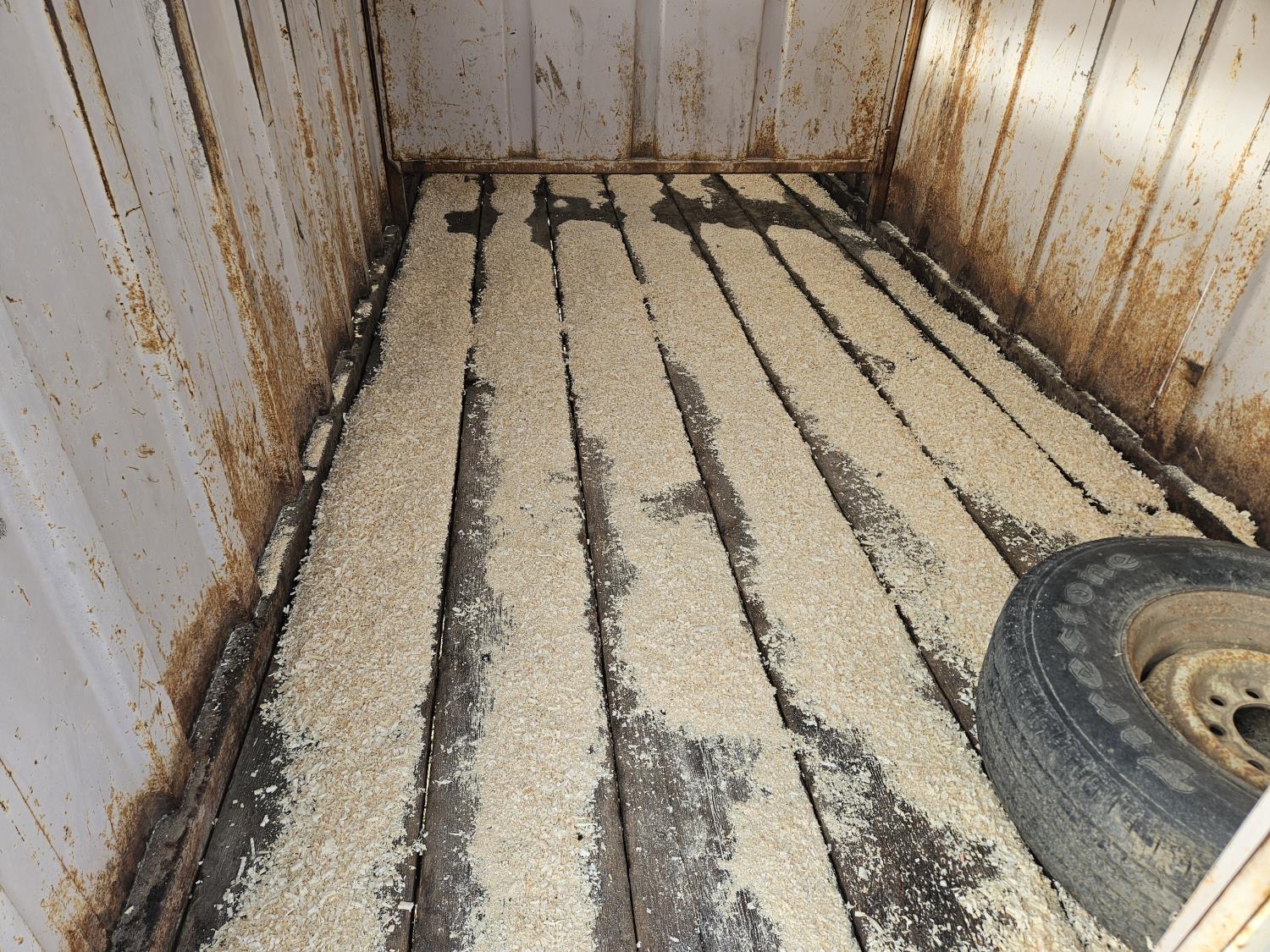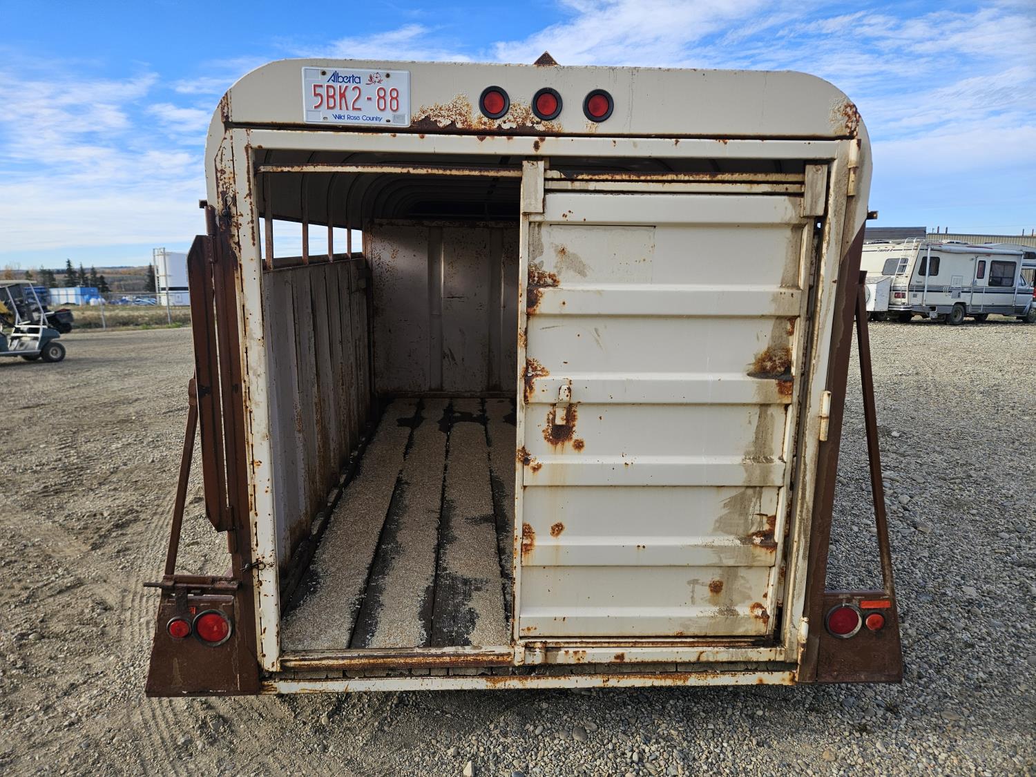 74 inch interior width, 76 inch interior height, front storage, side man door, rear sliding door, center divider gate, king pin fifth wheel hitch included, 9.50-16.5 tires