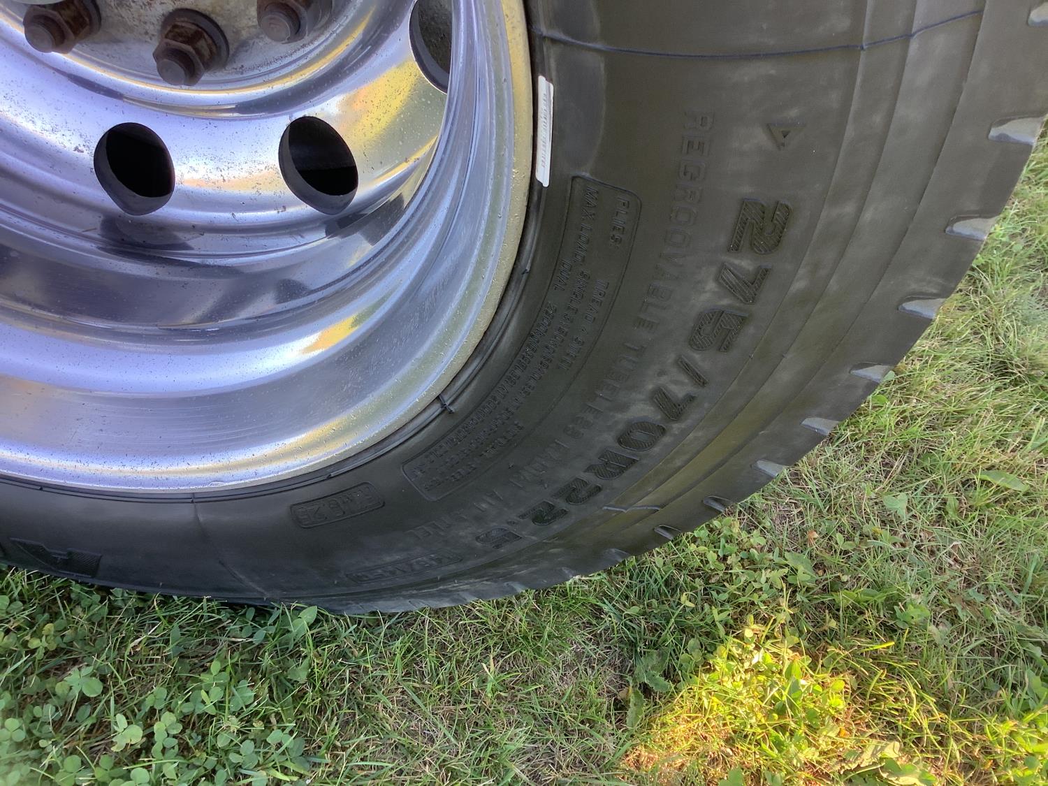 wide track axels, rebuilt peerless Trion walking beam suspension, new Fontaine 60 ton 5-TH wheel assembly, adjustable 5-TH wheel positioning, folding landing gear, aluminum wheels, 275/70R22.5 tires
