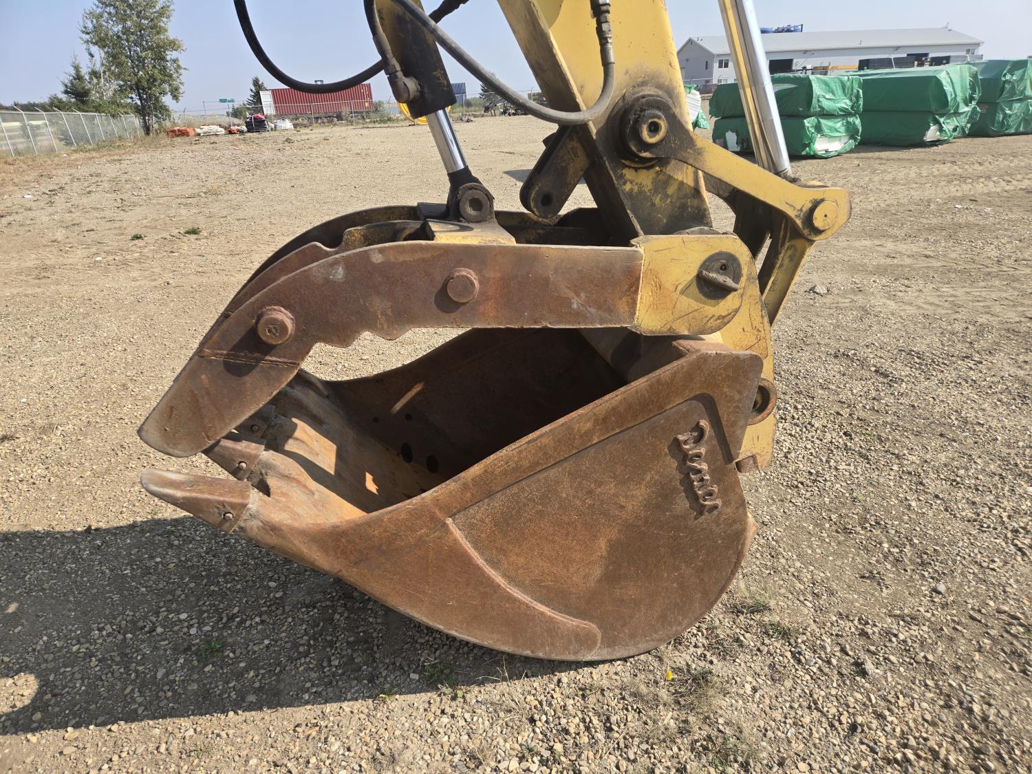 Enclosed cab, 36 inch dig bucket, manual coupler, hydraulic thumb, 10 Ft stick, Unit will not start has fuel pump issues, also has hydraulic pump issues, extra turret motor, 27 inch track pads, triple grousers