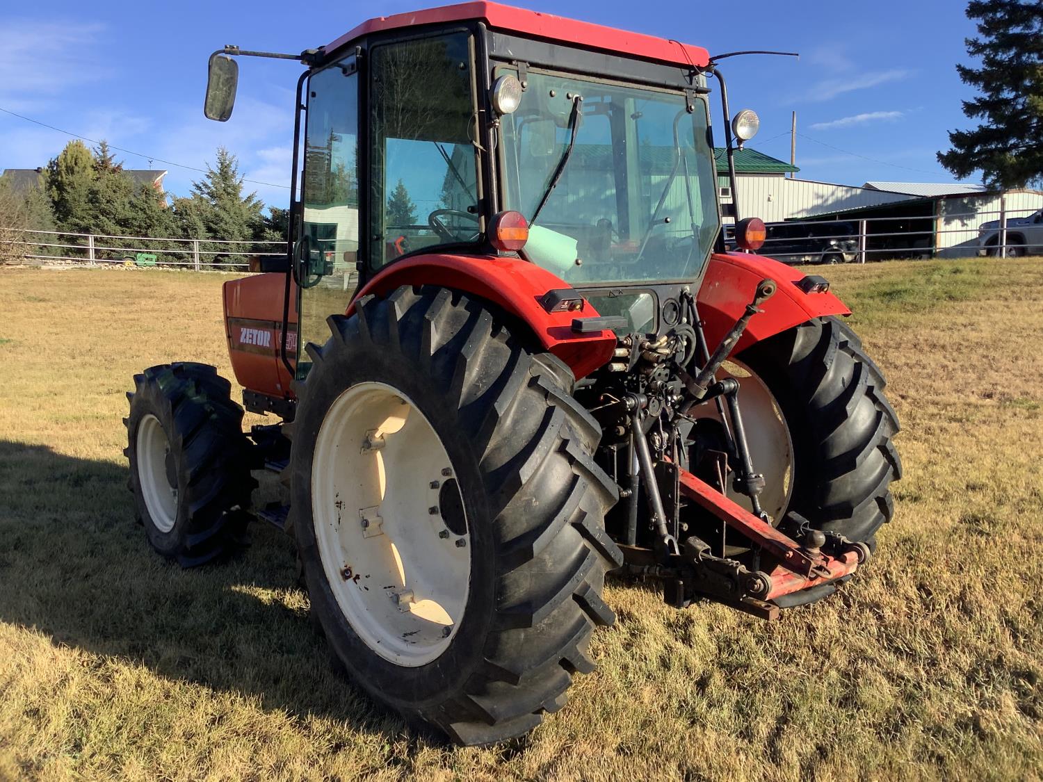 4.2 L 4 cylinder diesel engine, 18 speed synchromesh transmission, cab, radio, 540/1000 PTO, 3 point hitch, 2 rear hydraulic outlets, 13.6X24 front tires, 16.9/14-38 rear tires