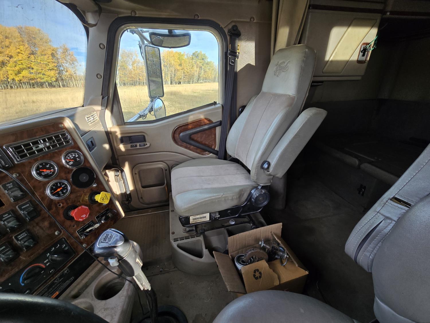 Cummins ISX 6 cylinder 435 HP engine, 18 speed manual transmission, mid rise 54 inch sleeper, bunk beds, A/C, leather interior, air ride seats, radio, Eagle package, air ride suspension, 12,000 lb front axle, 40,000 lb rear axles, 3 way diff locks, aluminum outer wheels, 11R22.5 tires
