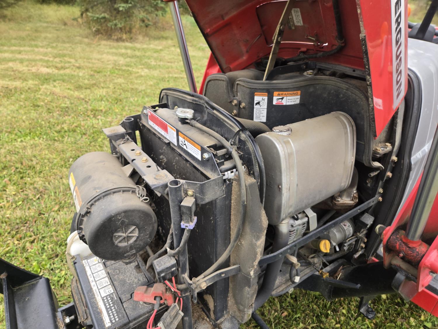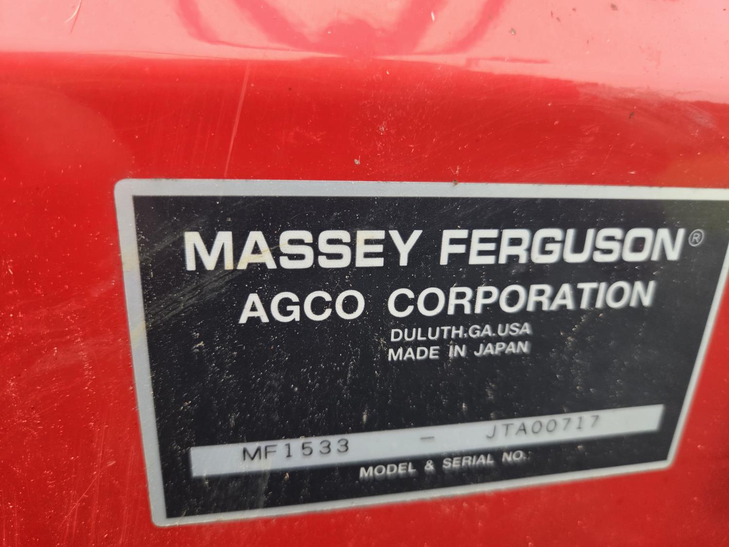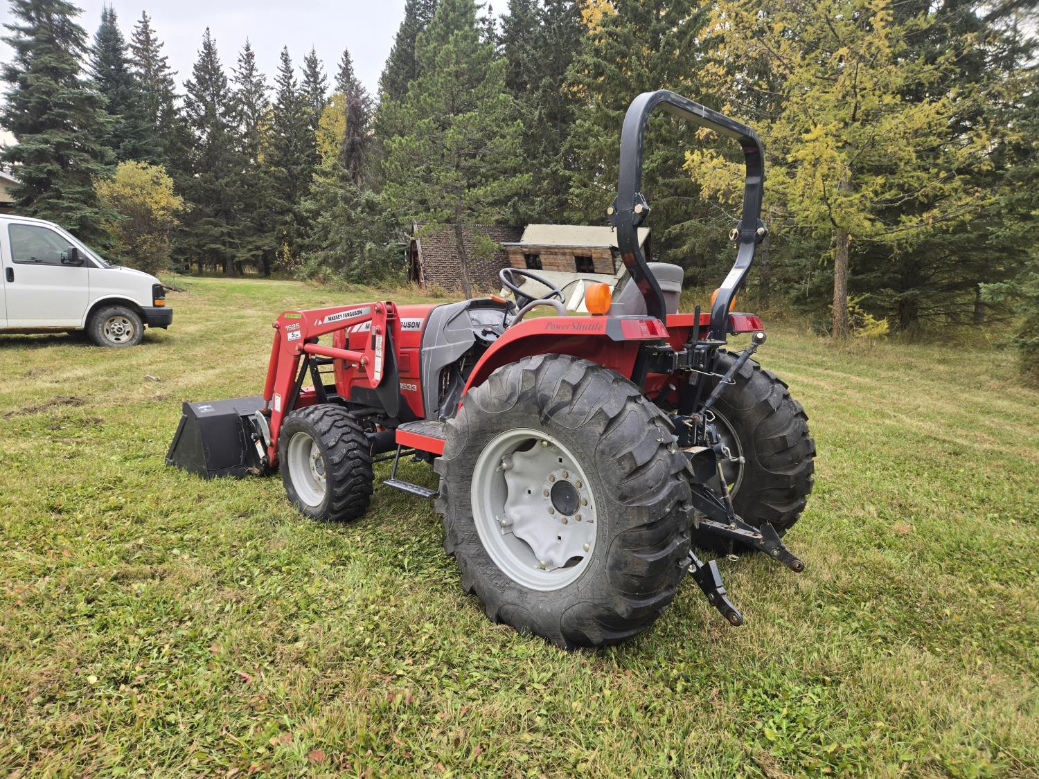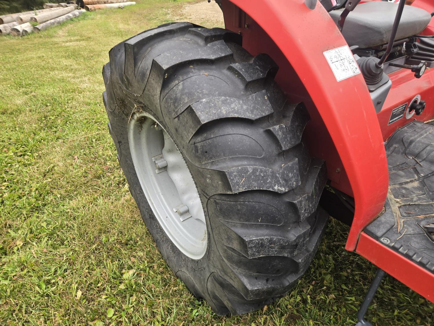 Massey Ferguson 1525 loader, Q/A, 66 inch bucket, Iseki 1.5 L 3 cylinder 33 HP, engine, 26 PTO HP, 12 speed manual transmission, shuttle shift, rear differential lock, joystick, 540 PTO, 3 point hitch, 10-16.5 front tires, 14.9-24 rear tires