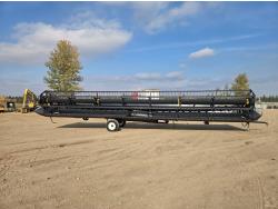 pickup reel, fore & aft, double knife drive, top cross auger, poly skid plates, height control sensors, transport, fits Massey Ferguson combine