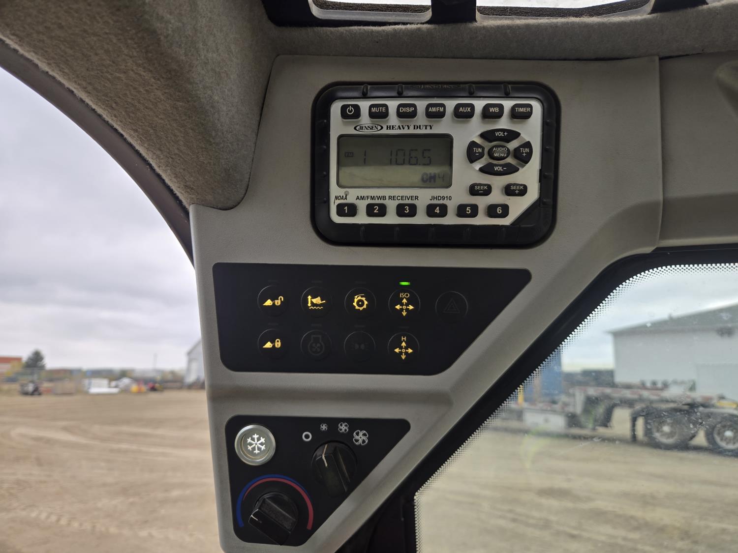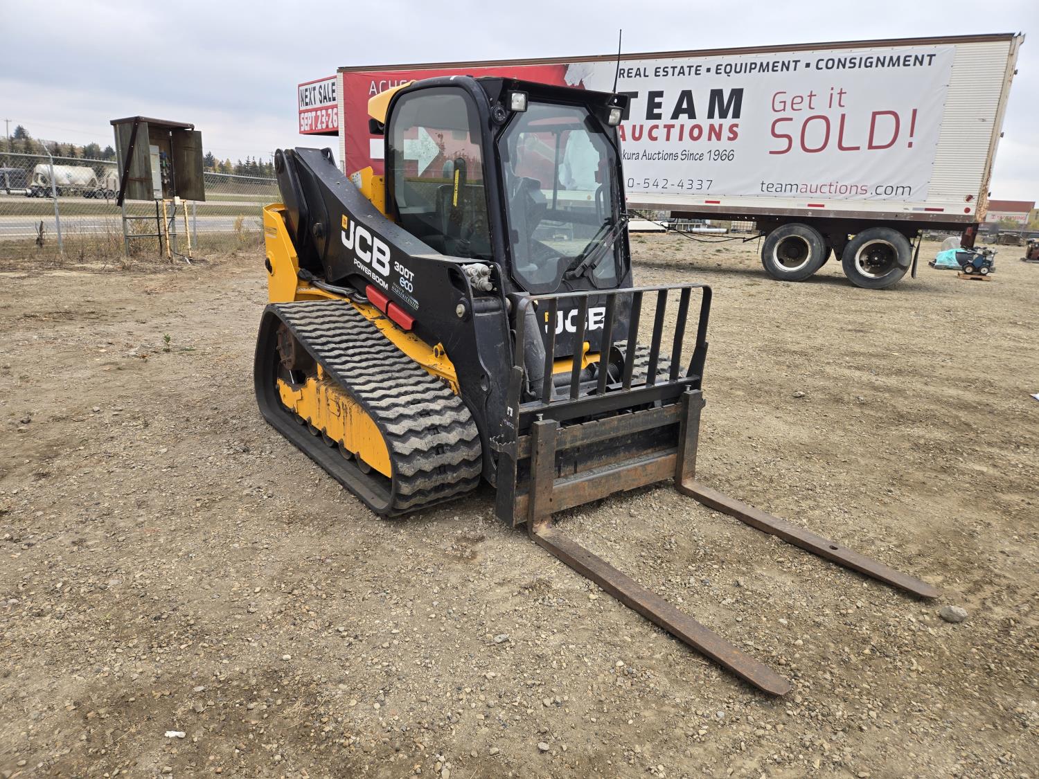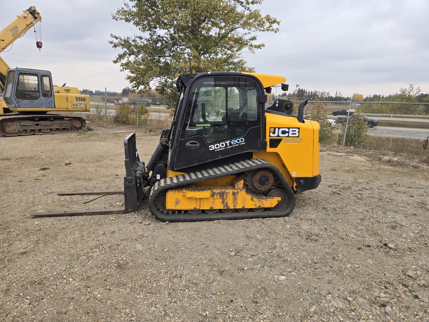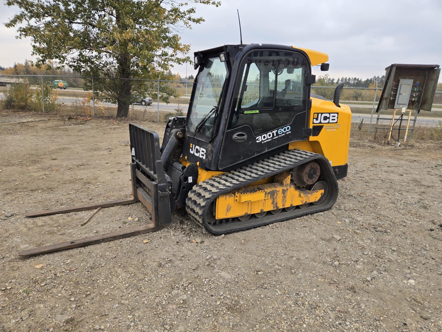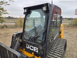 Enclosed cab, A/C, air ride seat, heated seat, control pattern change, rear view cameras, diesel engine, 2 speed transmission, 48 inch pallet forks, electric Q/C coupler, 1 auxiliary hydraulics, high flow hydraulics, counter weight, 18 inch rubber tracks