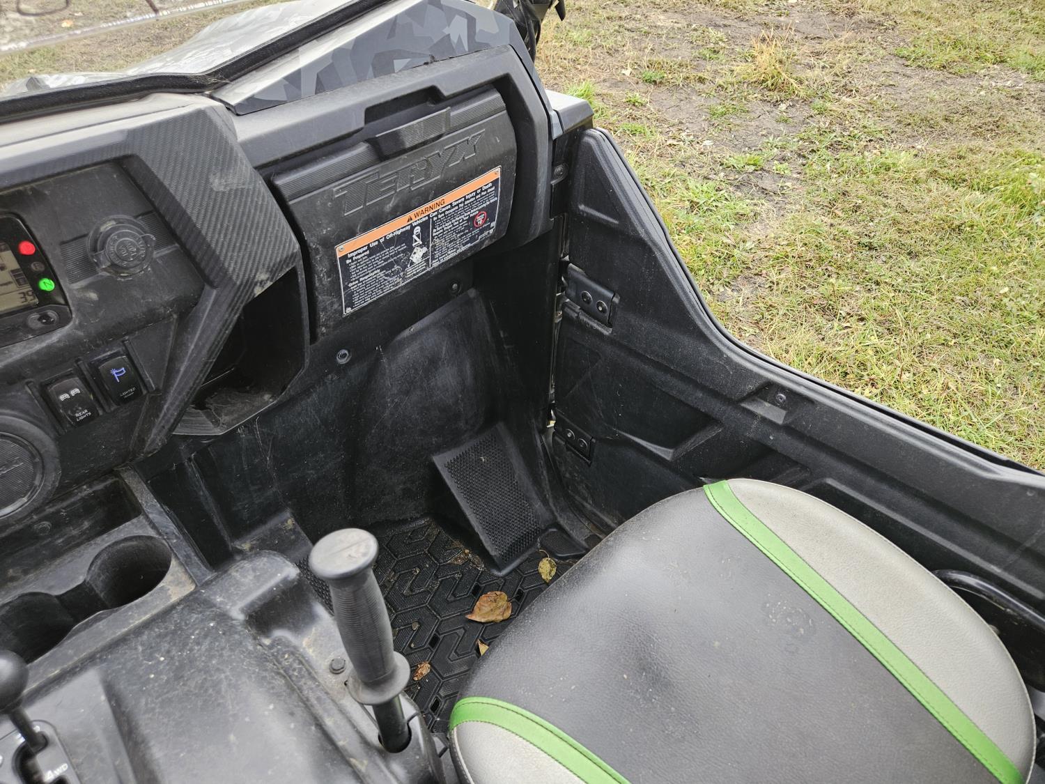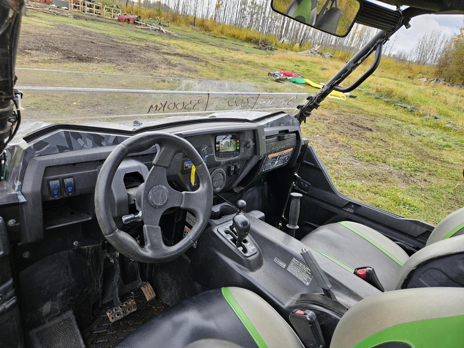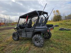 799 cc engine, manual transmission, Hi/Lo range, reverse, open canopy, 4 passengers, windshield, front winch, front locking differential, front brush guard, hitch, lift kit, light bars, clutch kit, 30X10.00-14 tires