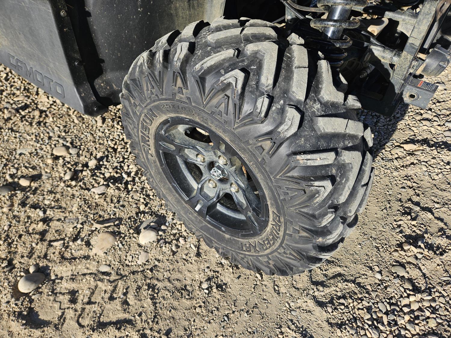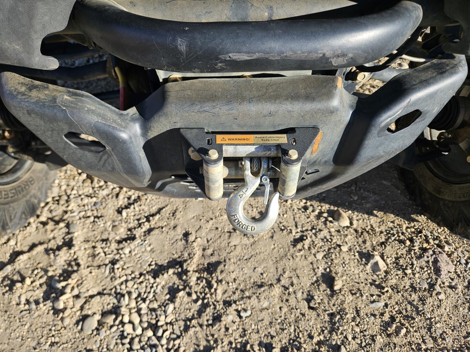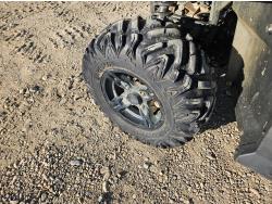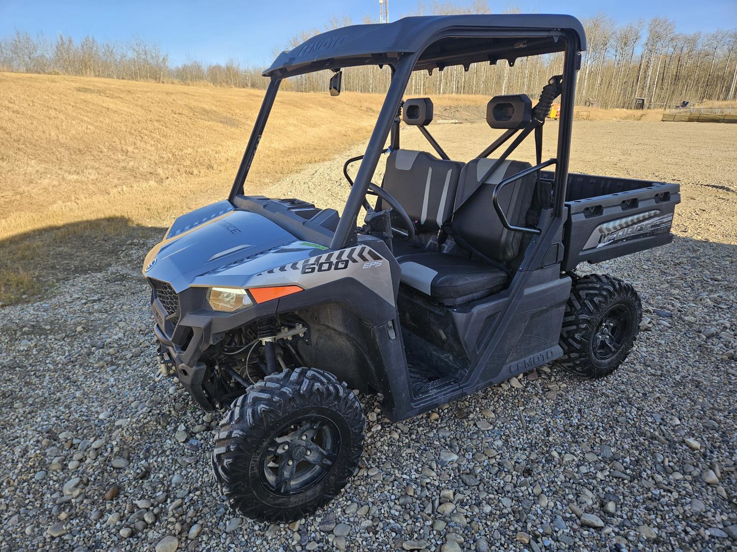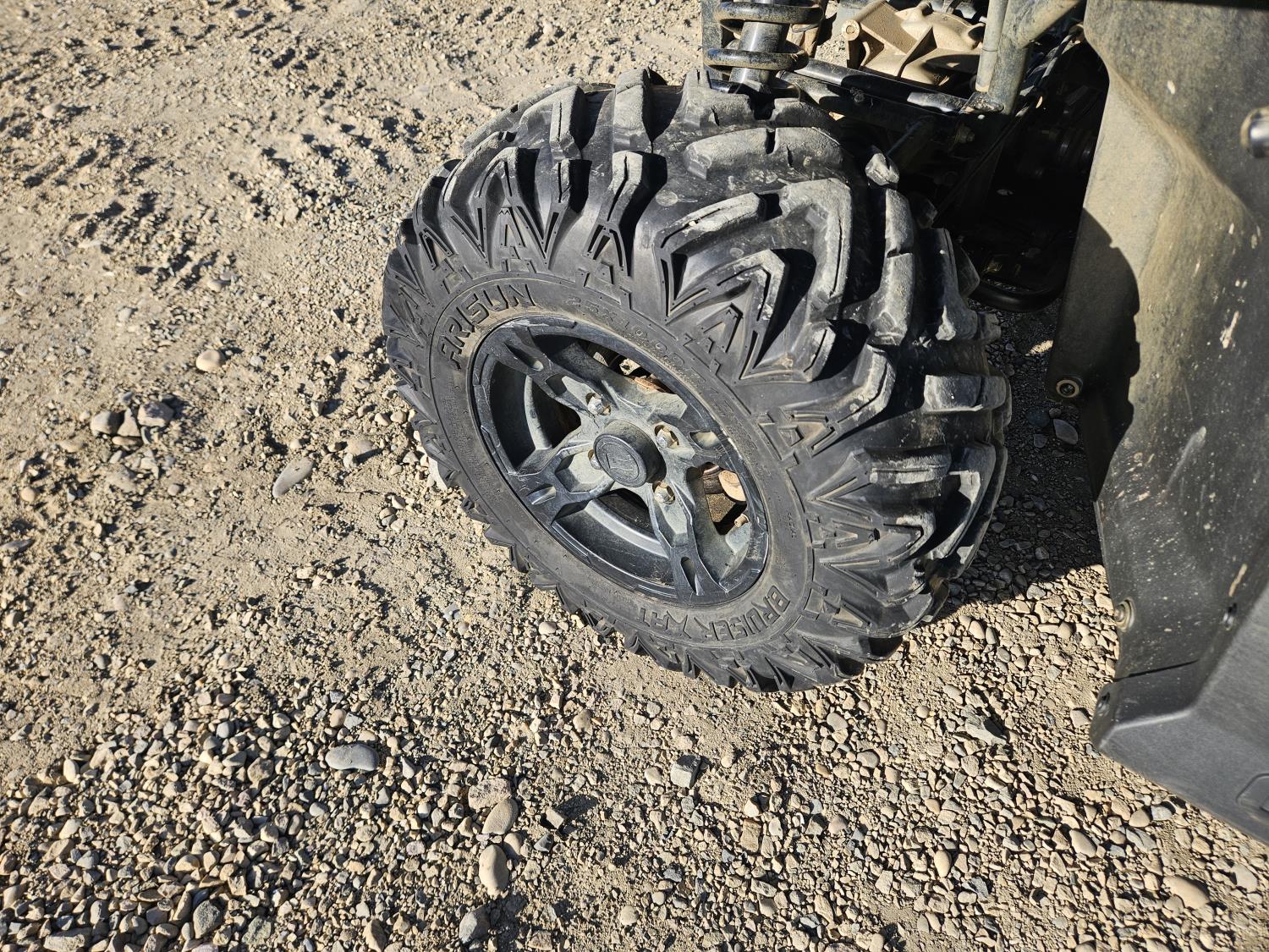 600 cc fuel injected water cooled engine, automatic transmission, Hi/Lo range, reverse, open canopy, 2 passengers, front winch, manual dump box, receiver hitch, independent suspension, aluminum wheels, 25X10.00R12 front tires, 25X8.00R12 rear tires