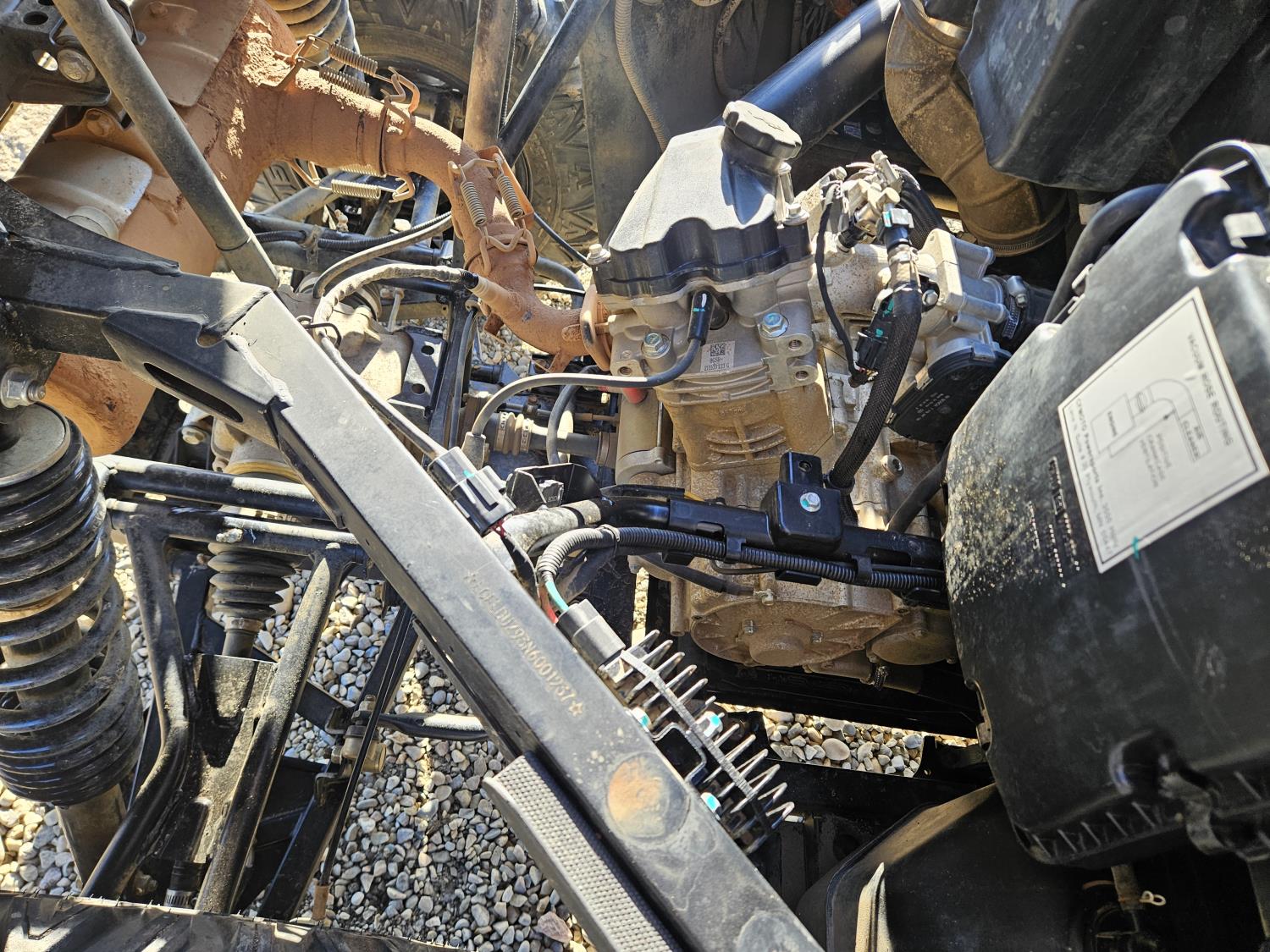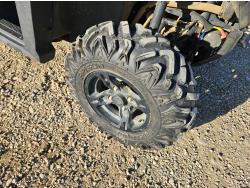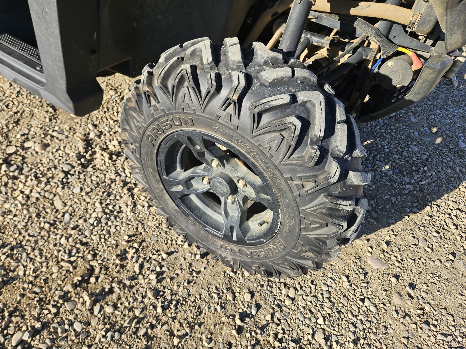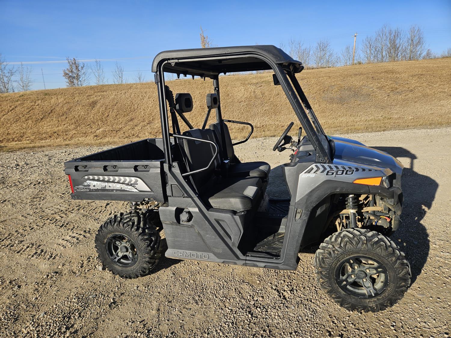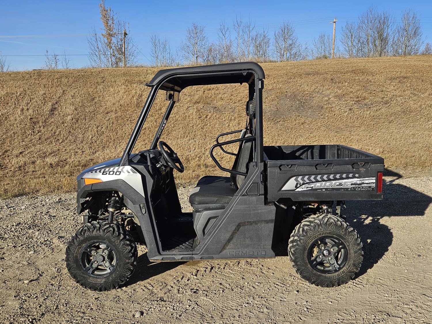 600 cc fuel injected water cooled engine, automatic transmission, Hi/Lo range, reverse, open canopy, 2 passengers, front winch, manual dump box, receiver hitch, independent suspension, aluminum wheels, 25X10.00R12 front tires, 25X8.00R12 rear tires