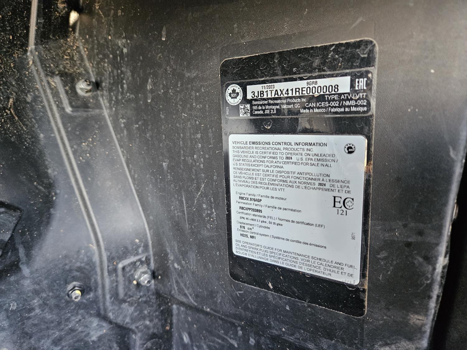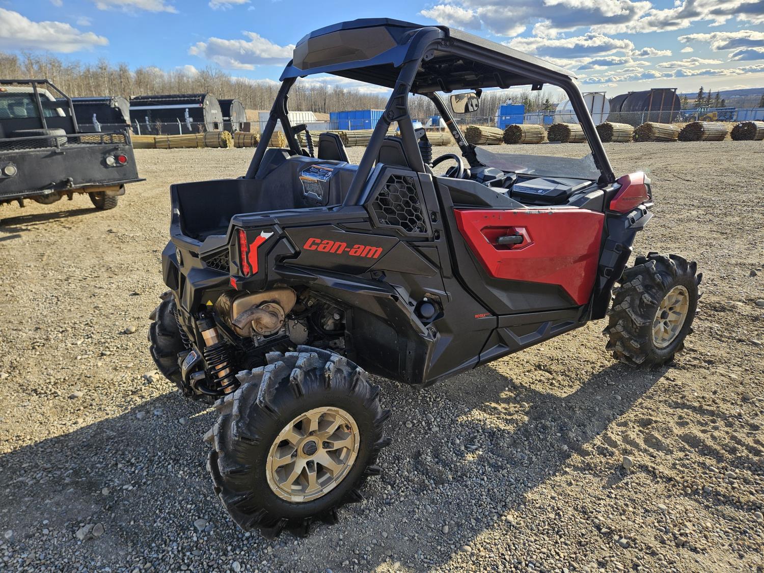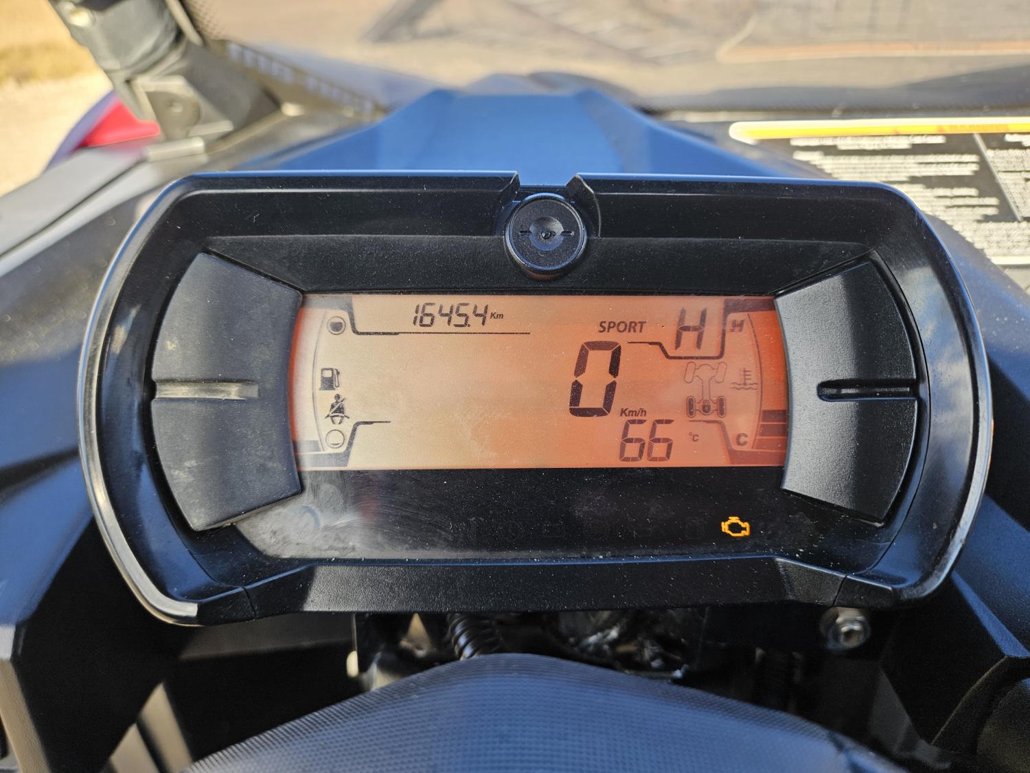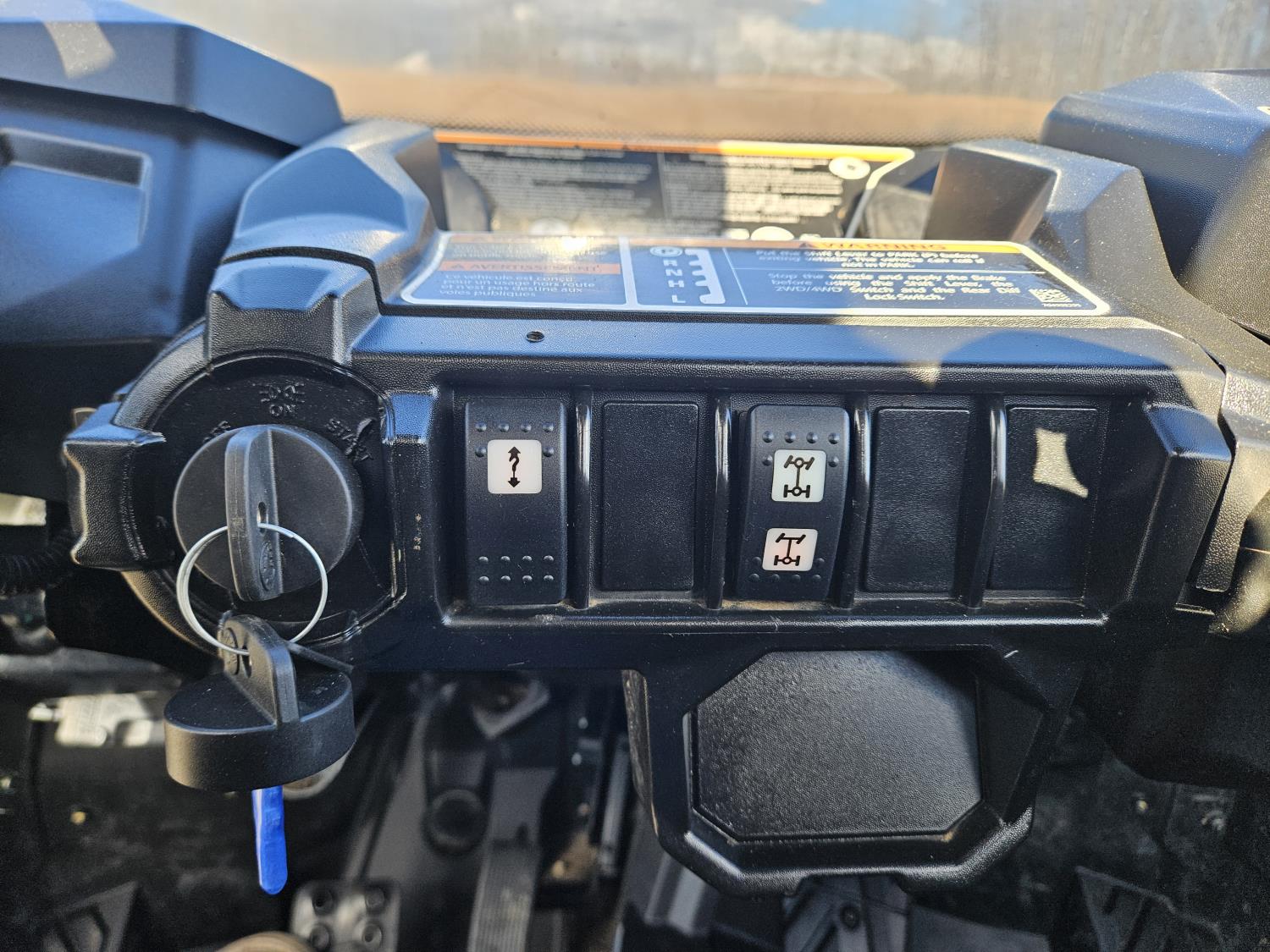 1000 cc fuel injected water cooled engine, automatic transmission, Hi/Lo range, reverse, open canopy, 2 passengers, front winch, receiver hitch, independent suspension, check engine light on, aluminum wheels, 30X9.00-14 front tires, 30X11.00-14 rear tires
