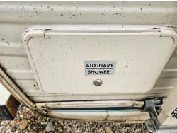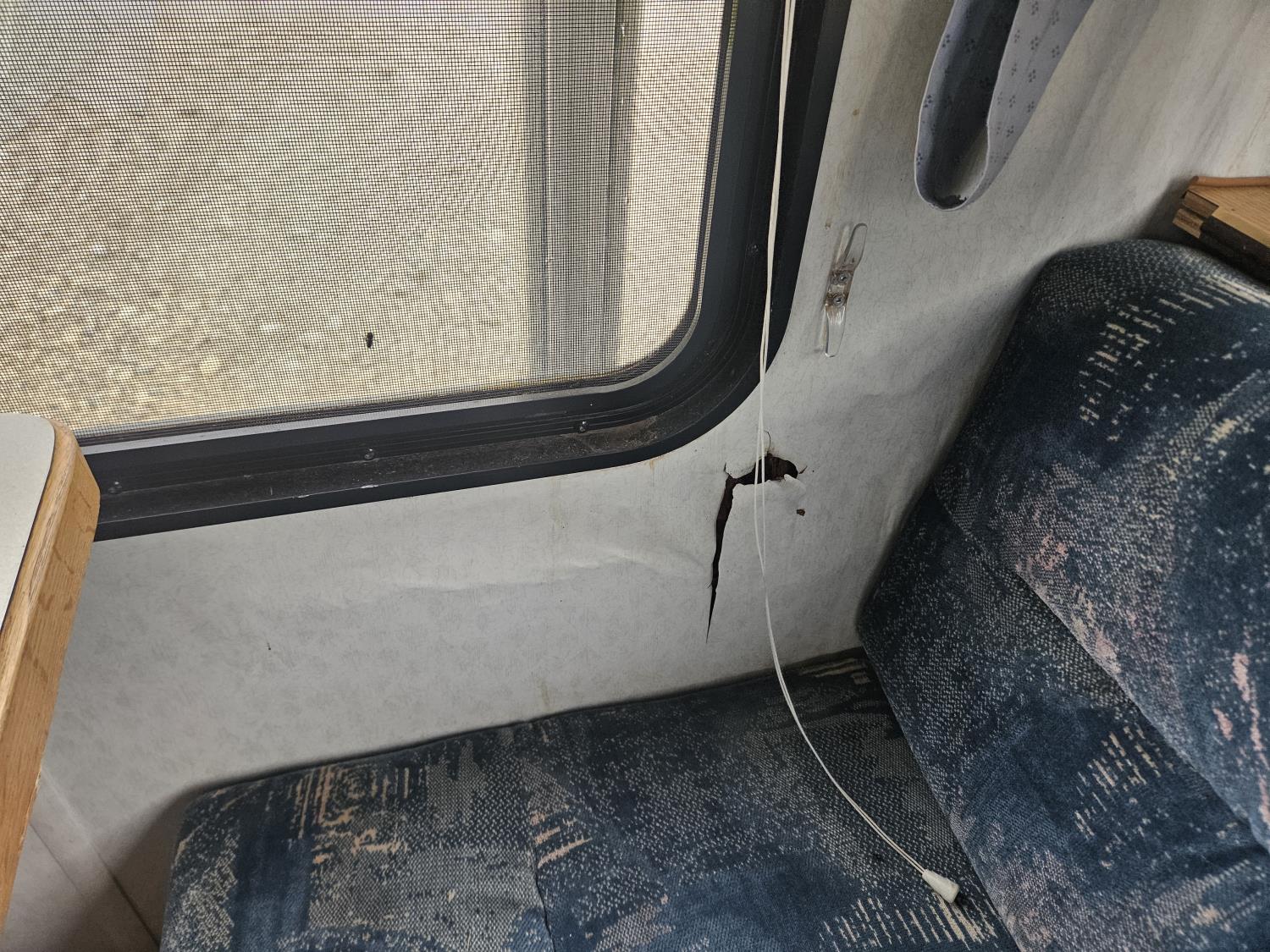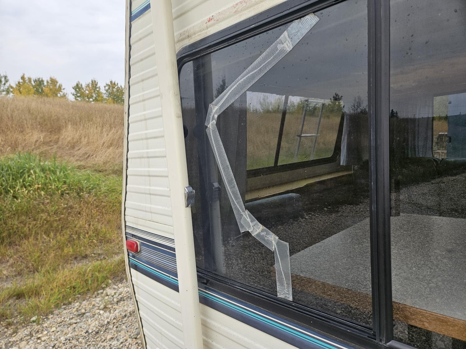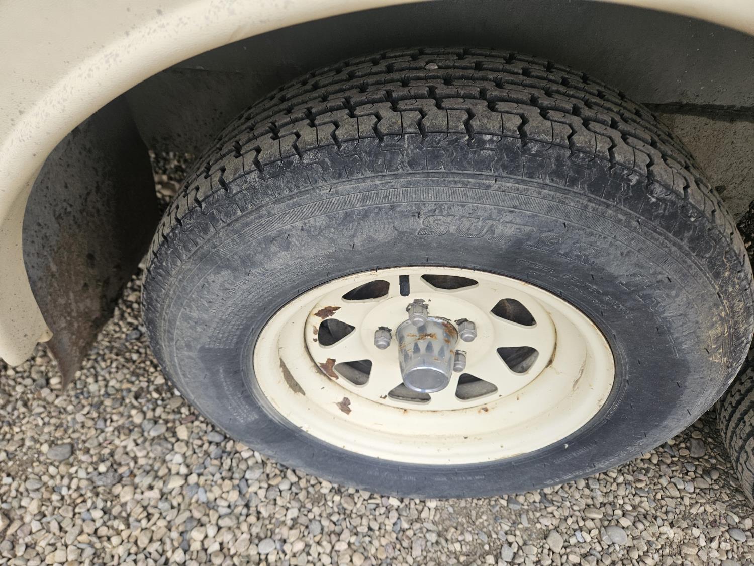 stove, fridge, full bath, outdoor shower, manual awning, spring suspension, cracked window, had water leak but was repaired, 205/75R15 tires