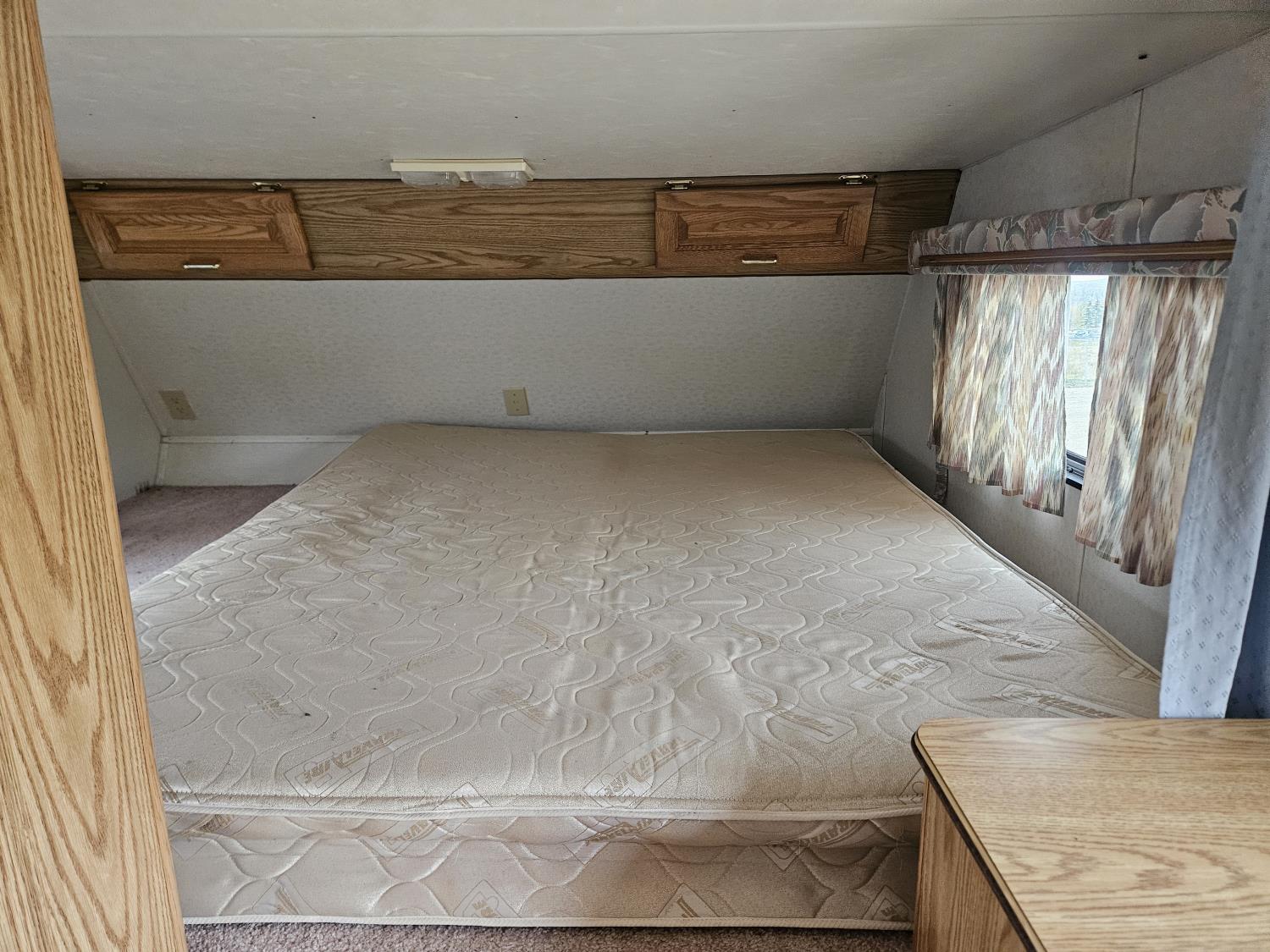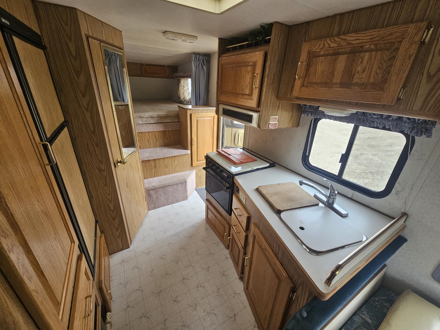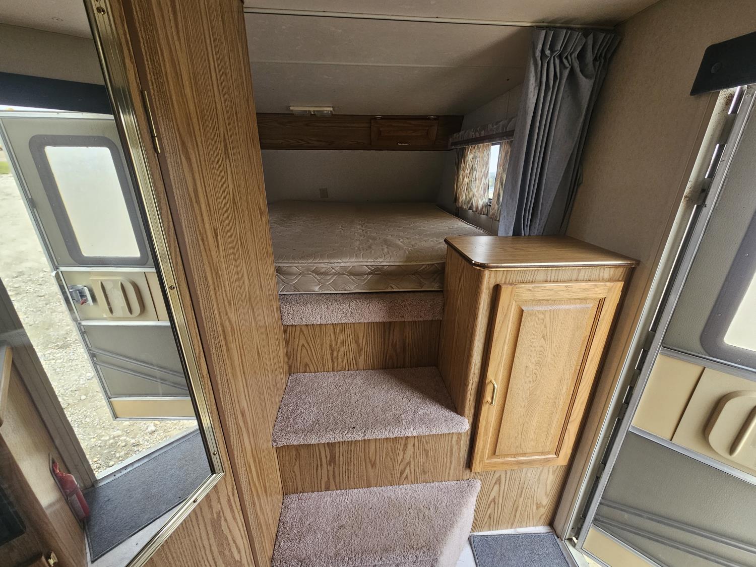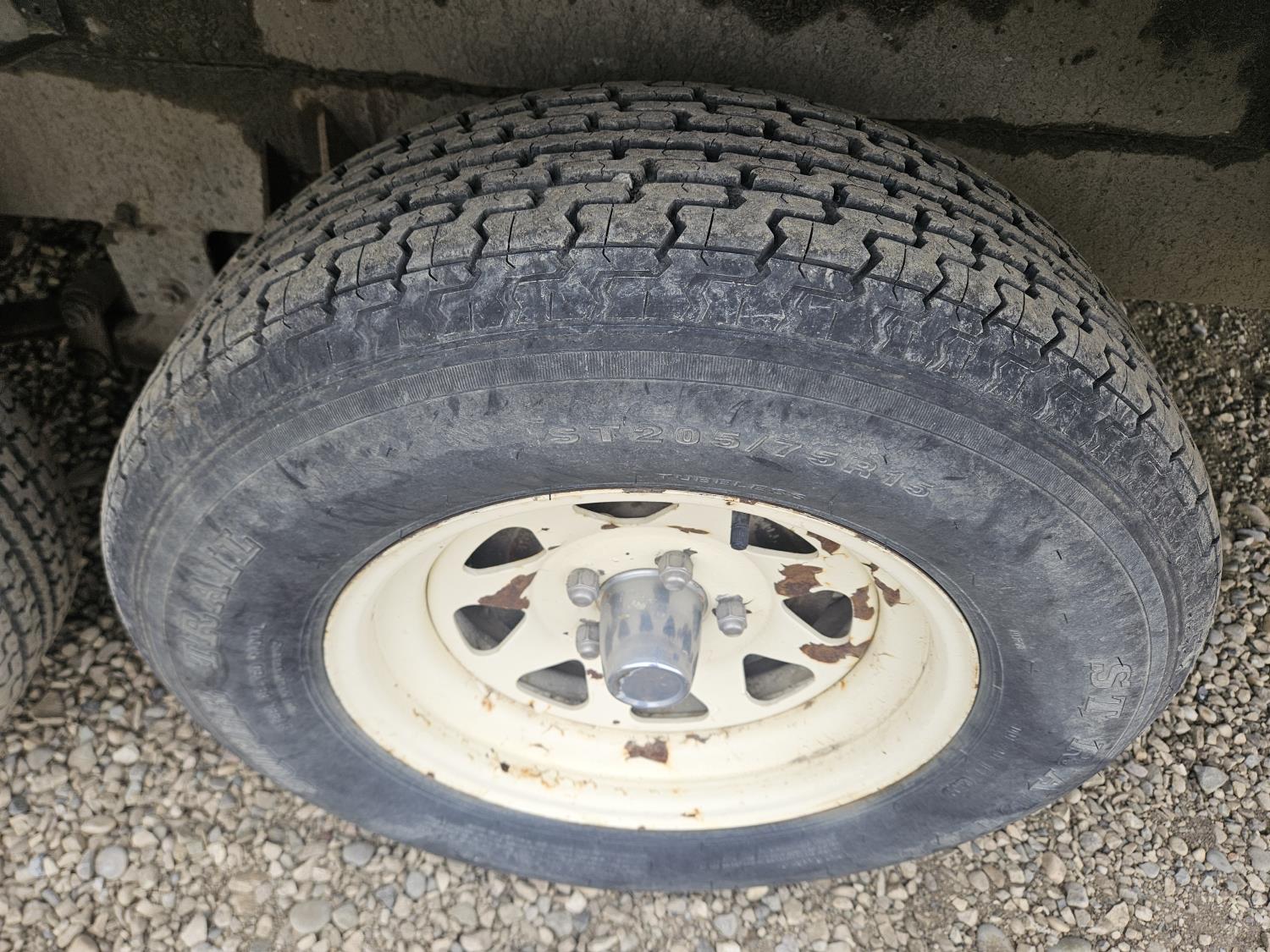 stove, fridge, full bath, outdoor shower, manual awning, spring suspension, cracked window, had water leak but was repaired, 205/75R15 tires