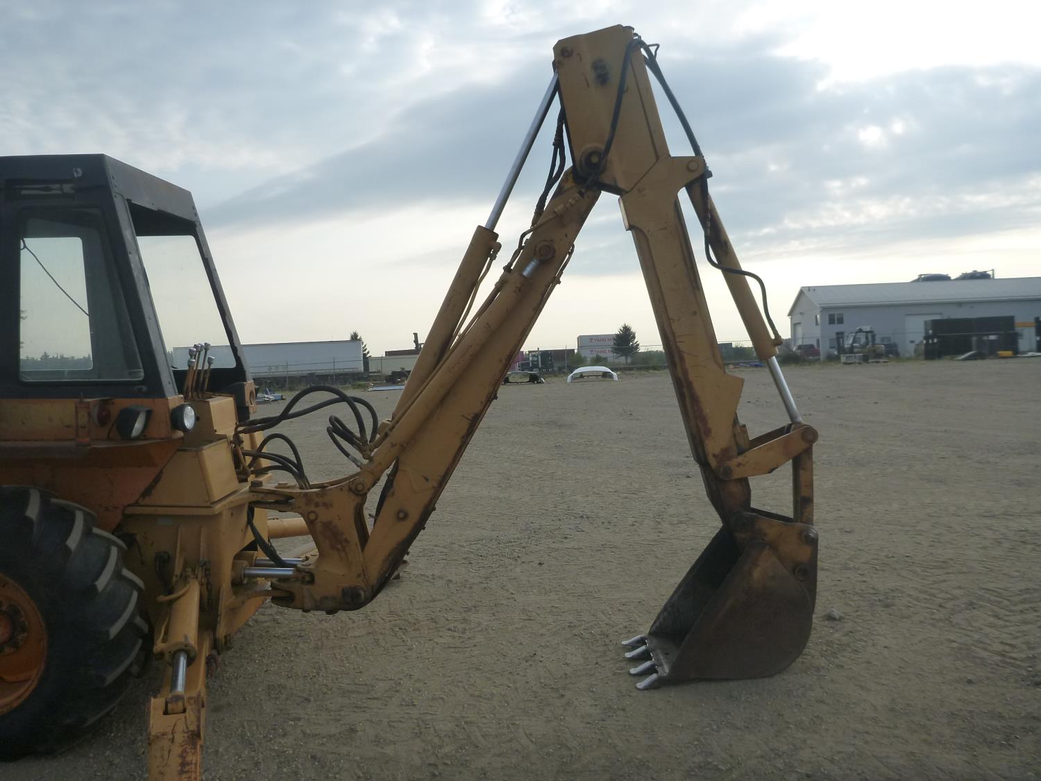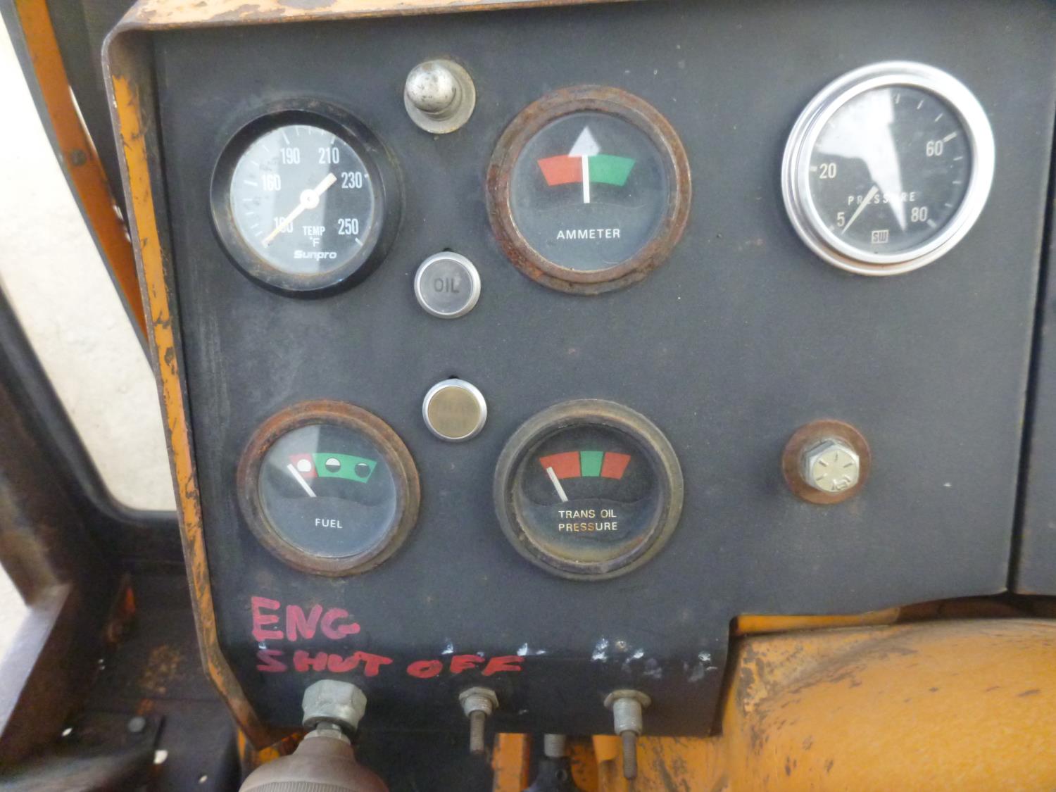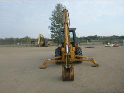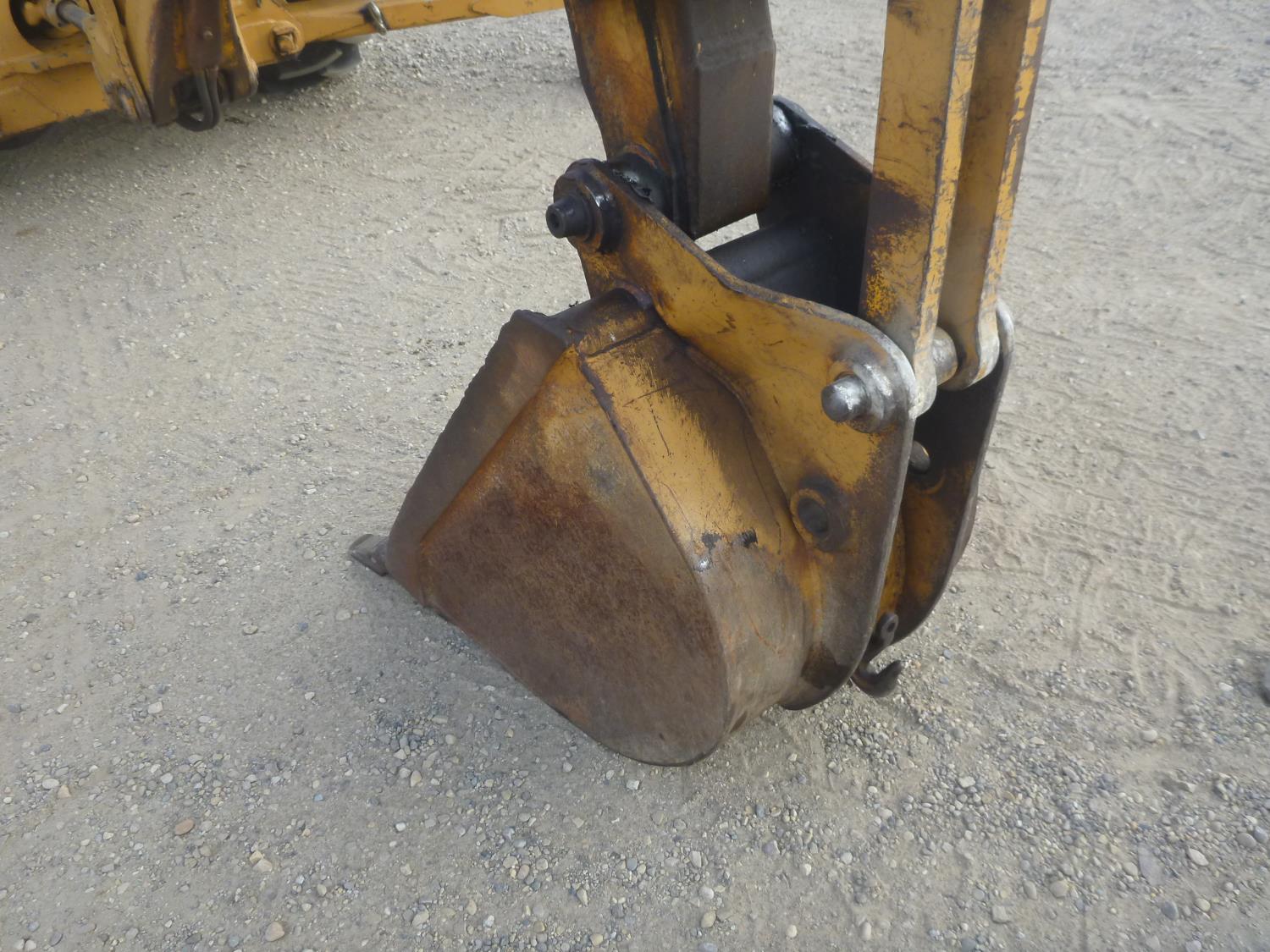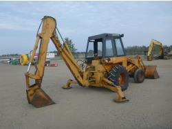 Enclosed cab, 80 inch smooth loader bucket, 24 inch dig backhoe bucket, stick, outriggers, (Has power train issues, will drive forward then stops), 11L-16 front tires, 14.9-24 rear tires