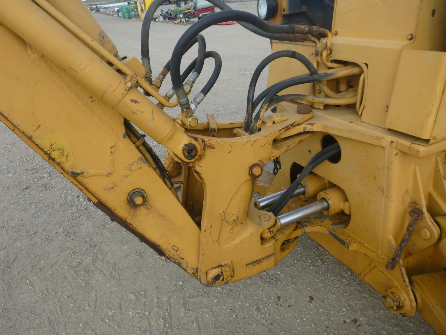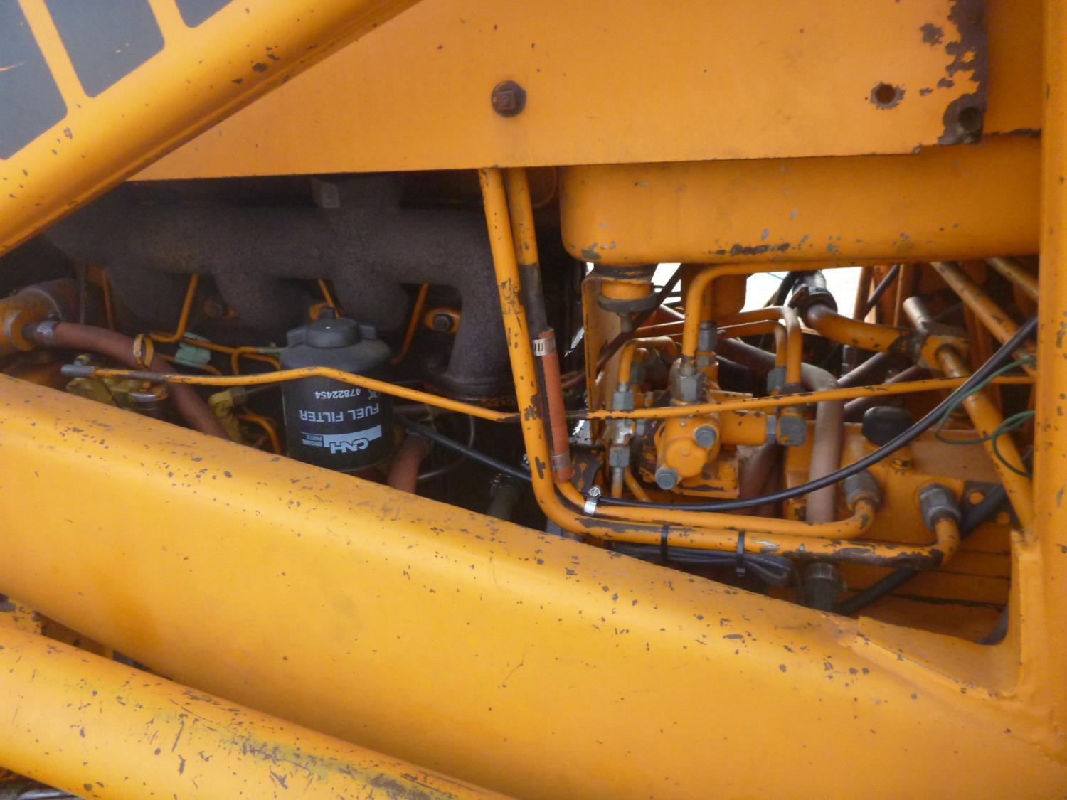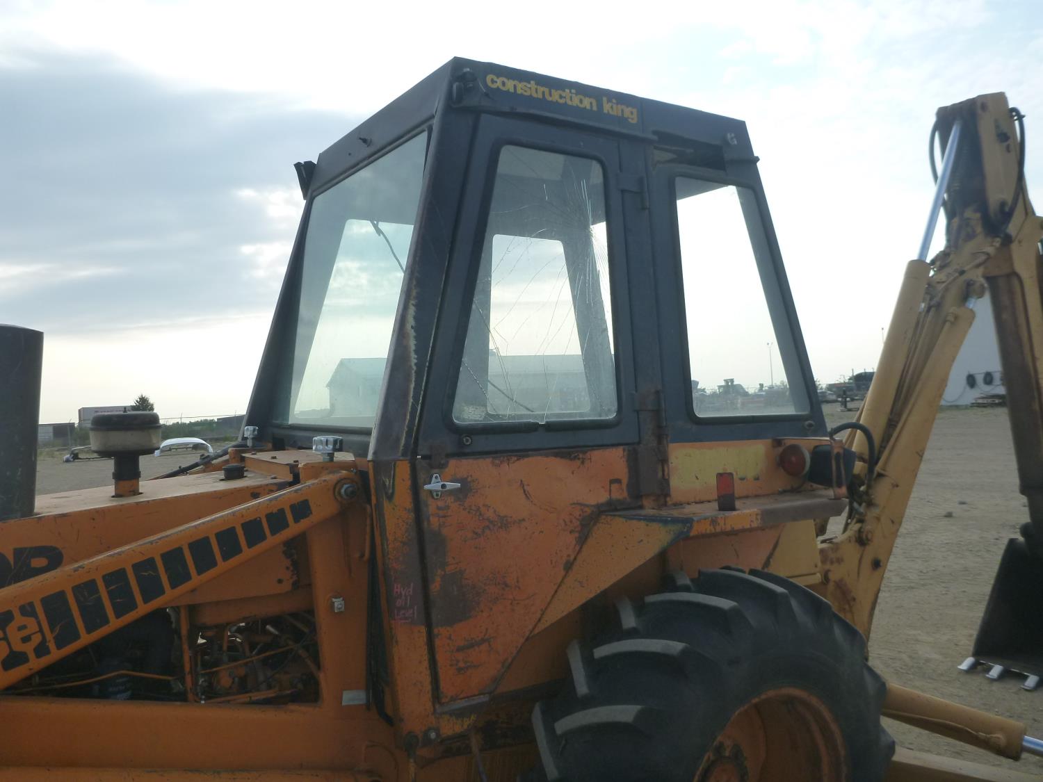 Enclosed cab, 80 inch smooth loader bucket, 24 inch dig backhoe bucket, stick, outriggers, (Has power train issues, will drive forward then stops), 11L-16 front tires, 14.9-24 rear tires