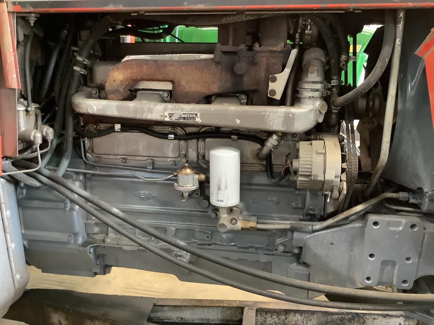Perkins 354 5.8 6 cylinder engine, 111 PTO HP, 12 speed partial power shift transmission, new starter, cab, Leon dozer blade, 540/1000 PTO, 2 rear hydraulic outlets, rear wheel weights, 11.00-16 front tires, 18.4X38 rear tires