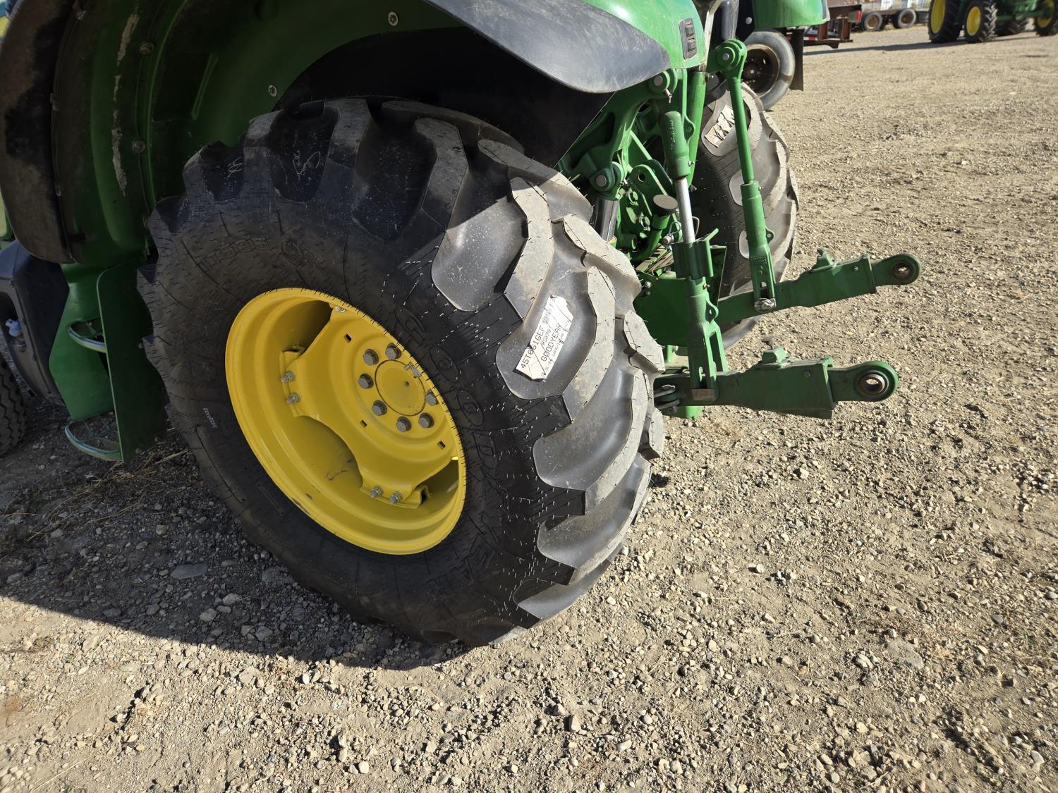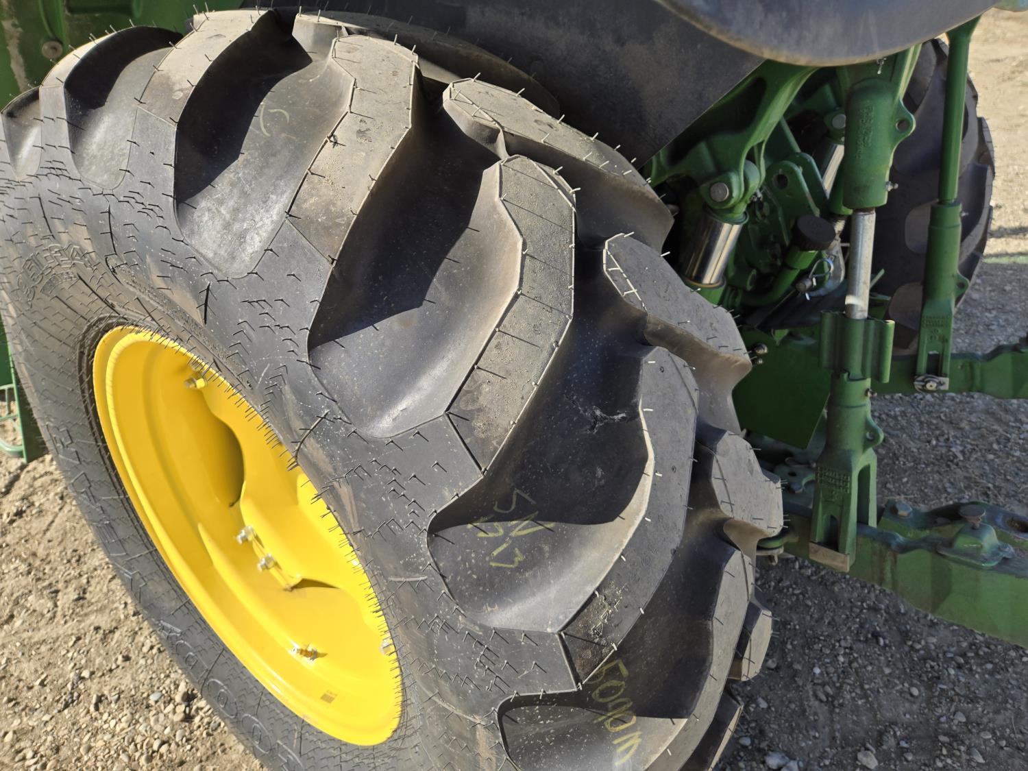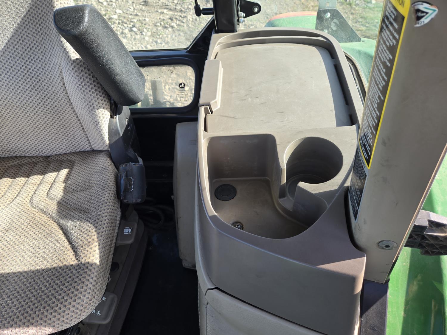 John Deere 4.5 L 4 cylinder 90 HP, engine, 16 speed partial synchro transmission, cab, left hand reverser, rear differential lock, joystick, A/C, radio, loader ready, 540 PTO, 3 point hitch, 3 point hitch exterior control, 3 rear hydraulic outlets, 11L-15 front tires, 19.5L-24 rear tires