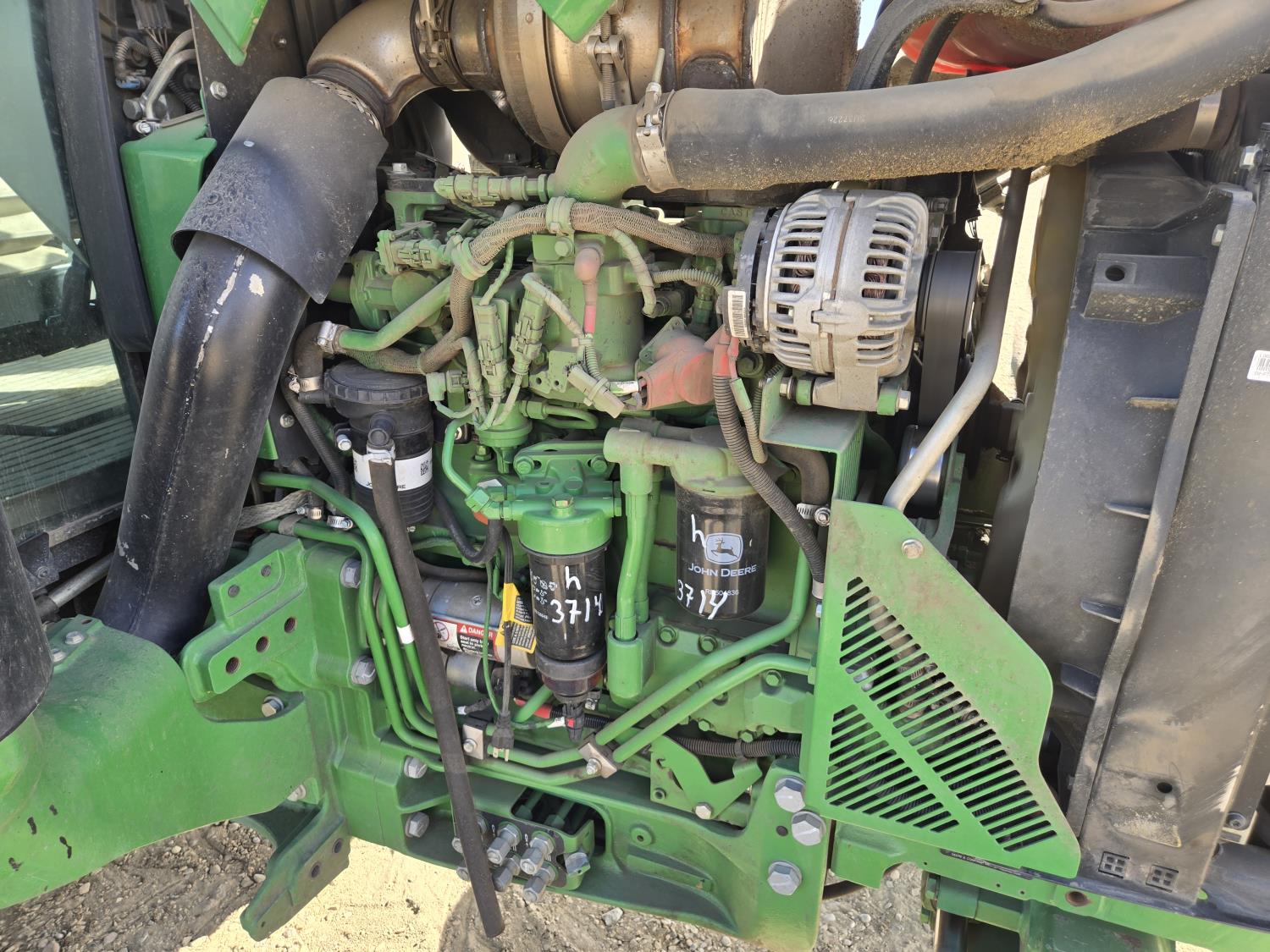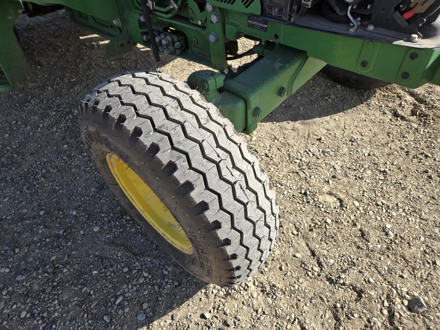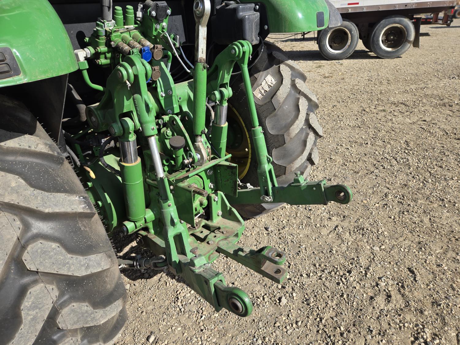 John Deere 4.5 L 4 cylinder 90 HP, engine, 16 speed partial synchro transmission, cab, left hand reverser, rear differential lock, joystick, A/C, radio, loader ready, 540 PTO, 3 point hitch, 3 point hitch exterior control, 3 rear hydraulic outlets, 11L-15 front tires, 19.5L-24 rear tires