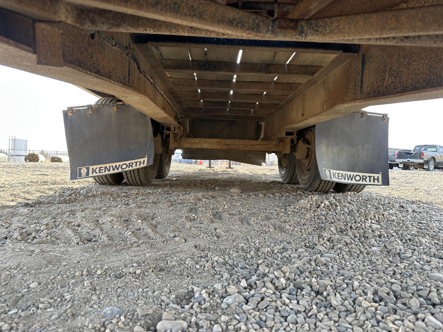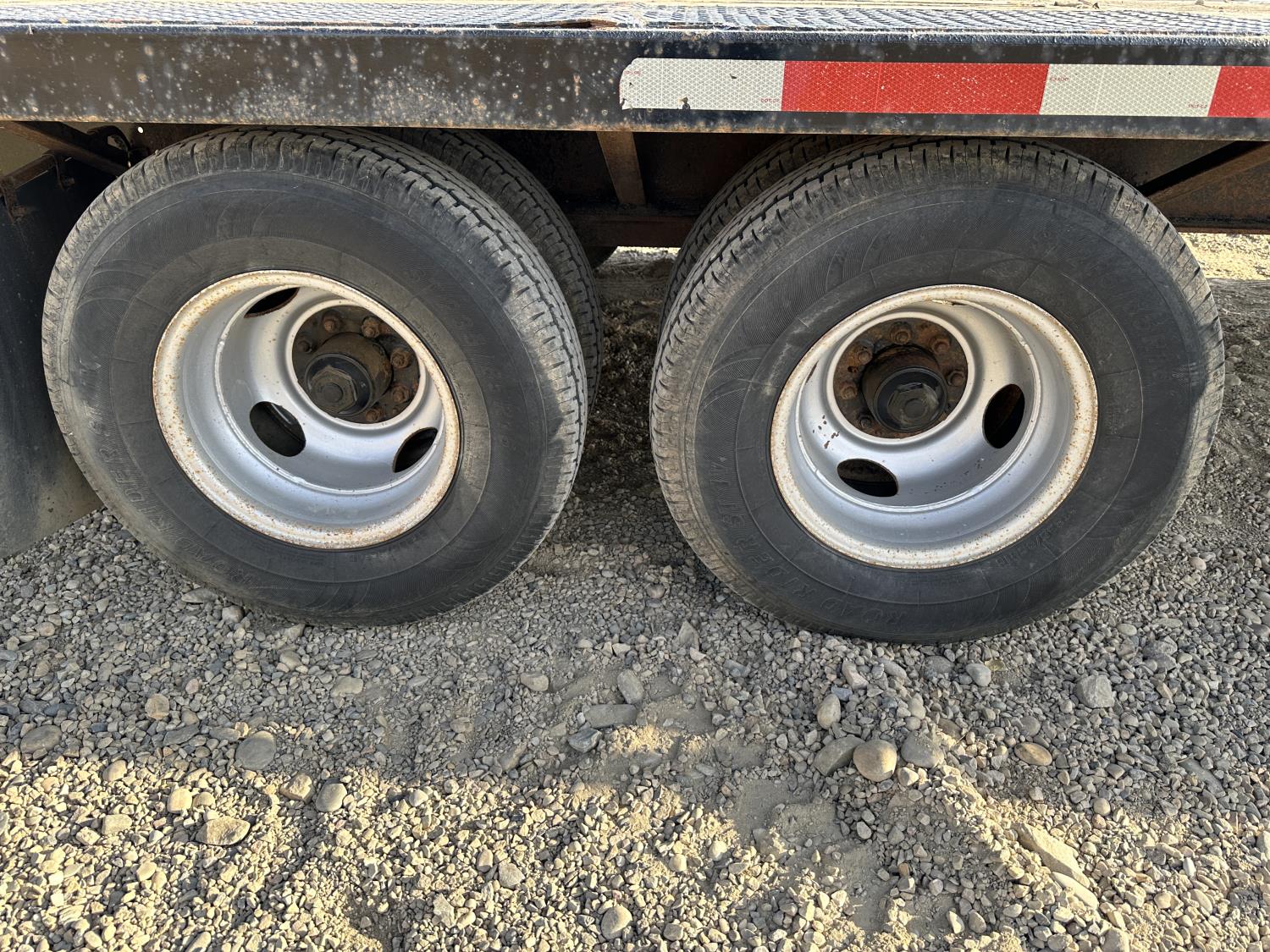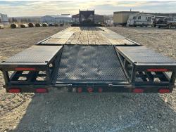 100 inch wide deck, 60 inch beaver tails, wood deck, flip over ramps, electric brakes, torsion suspension, rub rails, stake pockets, 9,000lbs winch, spare tire, 235/85R16 duals, 10000 lb axles