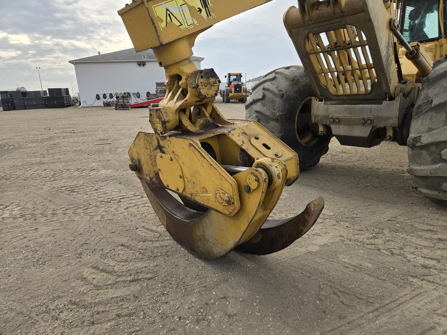 A/C, joystick steering, 2 position station, double arch, sweeps, 115 inch deck blade, 23 sq ft grapple, 35.5-32 tires
