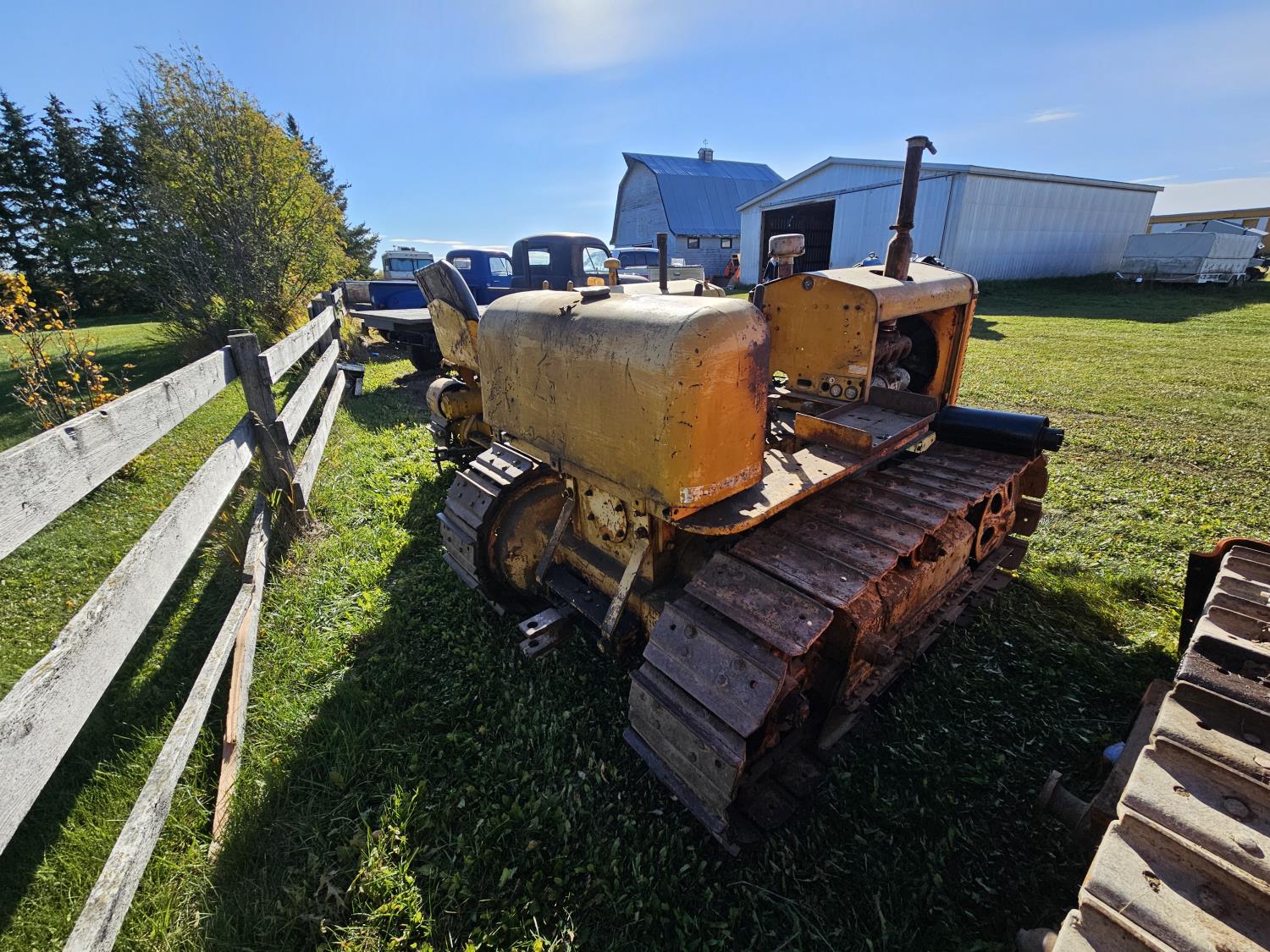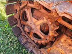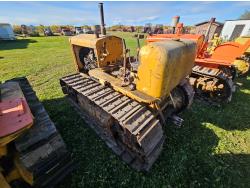 Open station, 6 cylinder Oliver/Cletrac/Hercules diesel engine, 4 speed manual transmission, stored indoor, ran when parked, drawbar, 16 inch track pads, single grousers