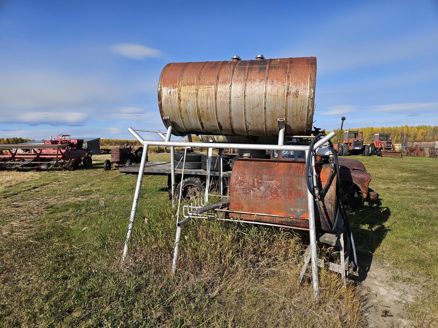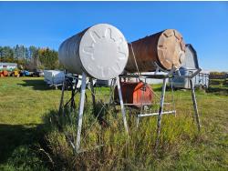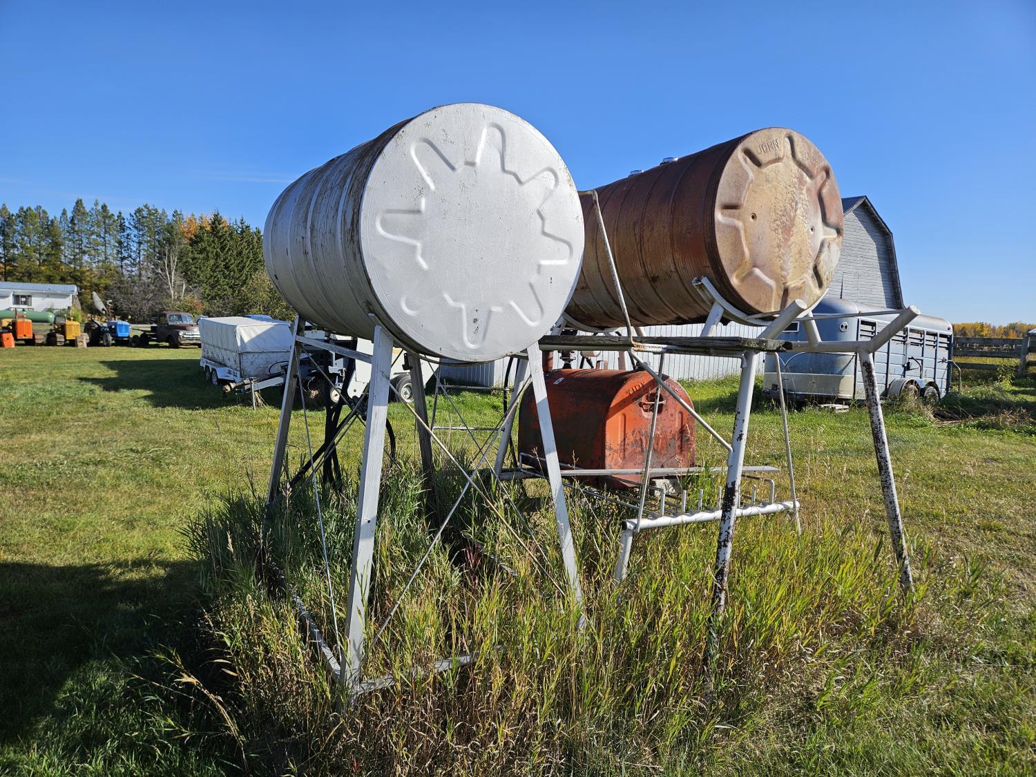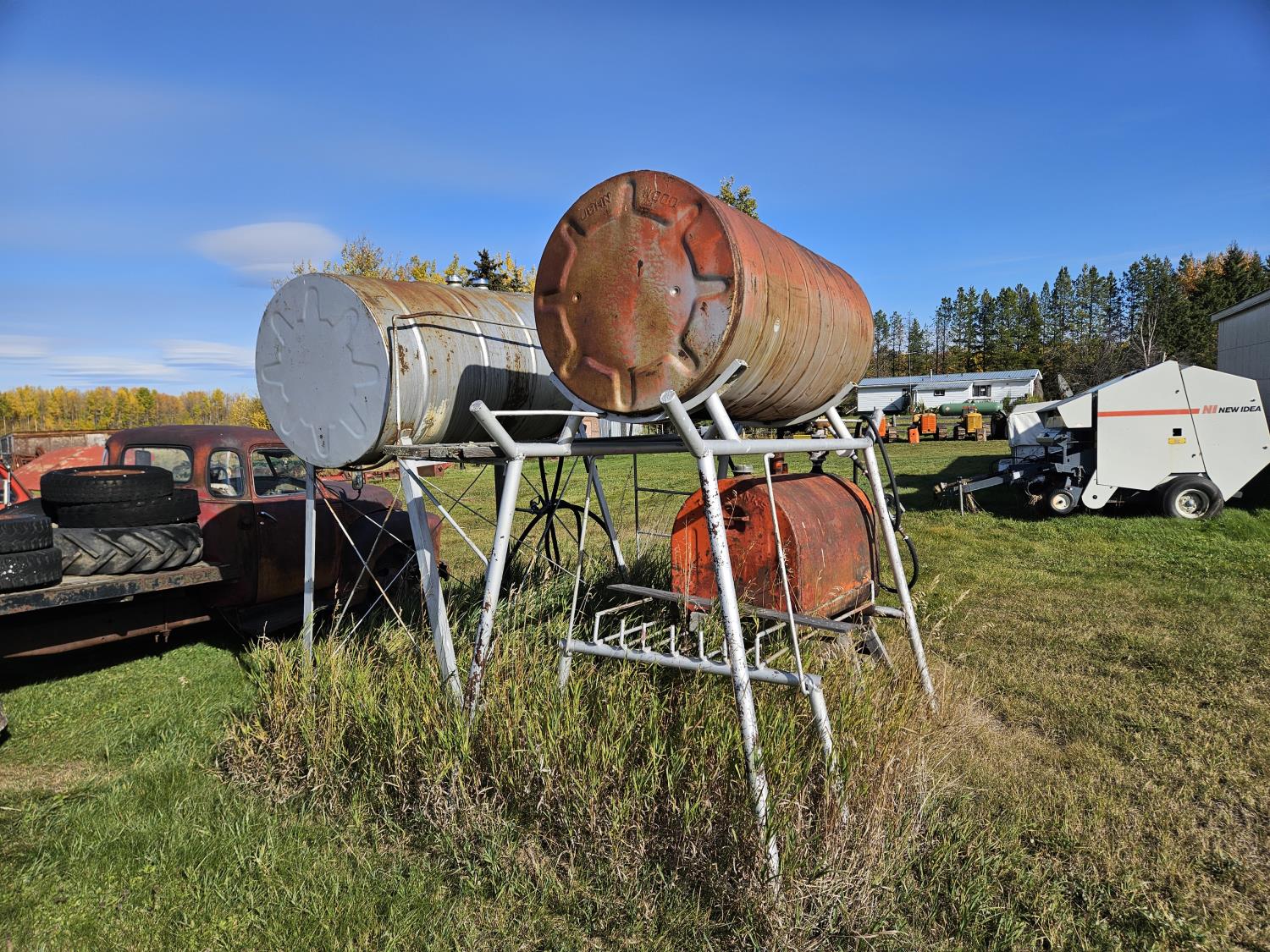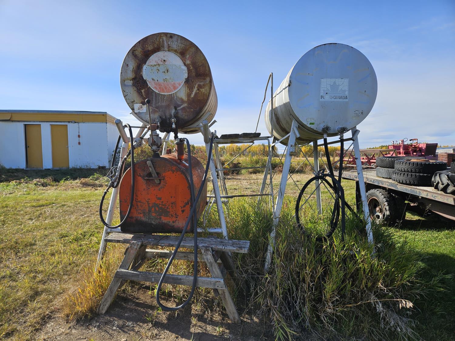 (2) 500 gallon fuel tanks and stands, slip tank, hoses, nozzles