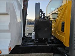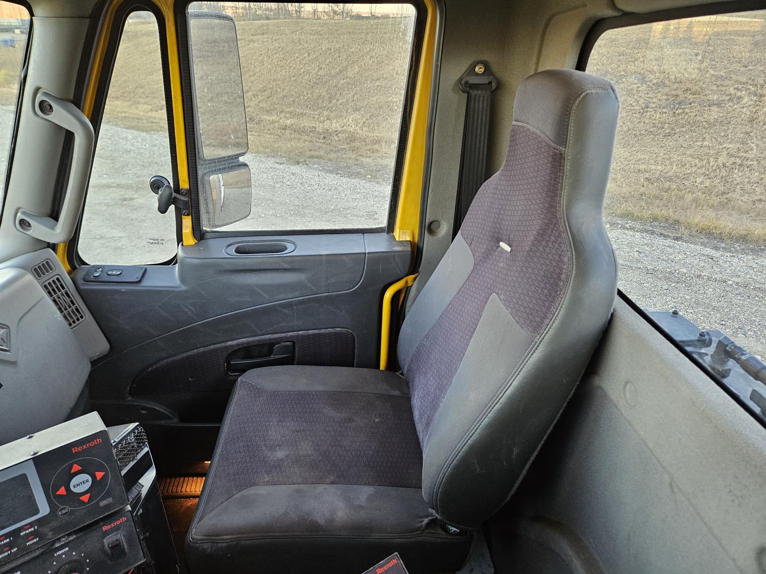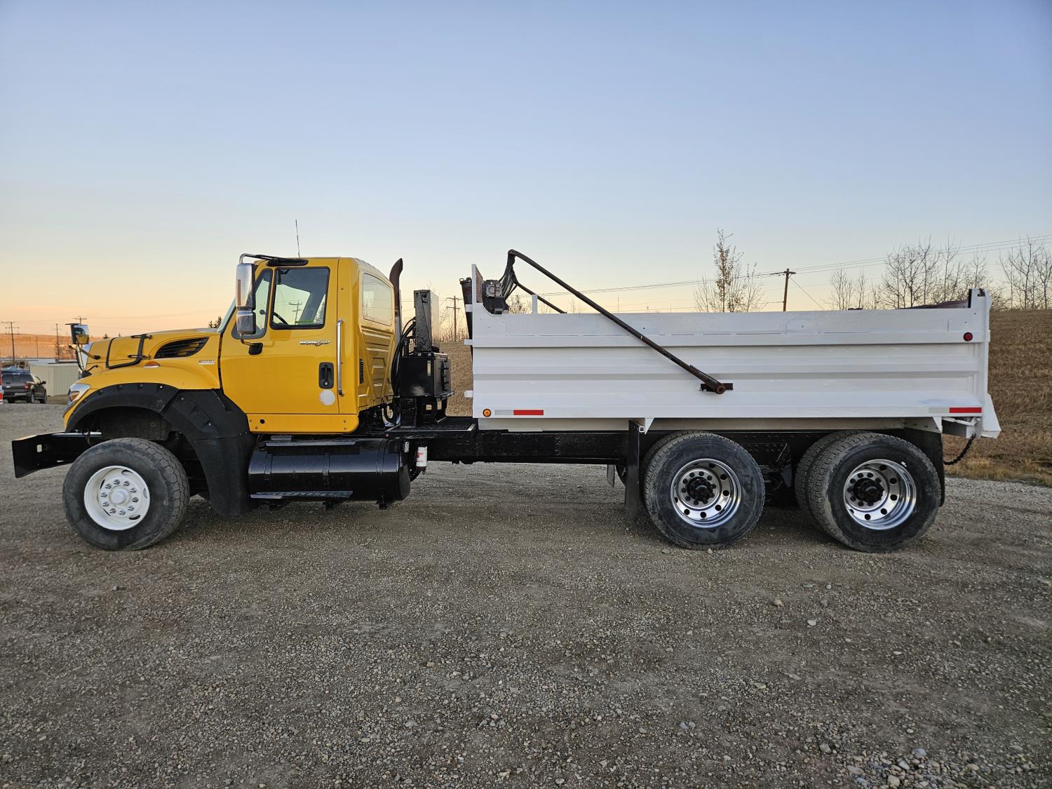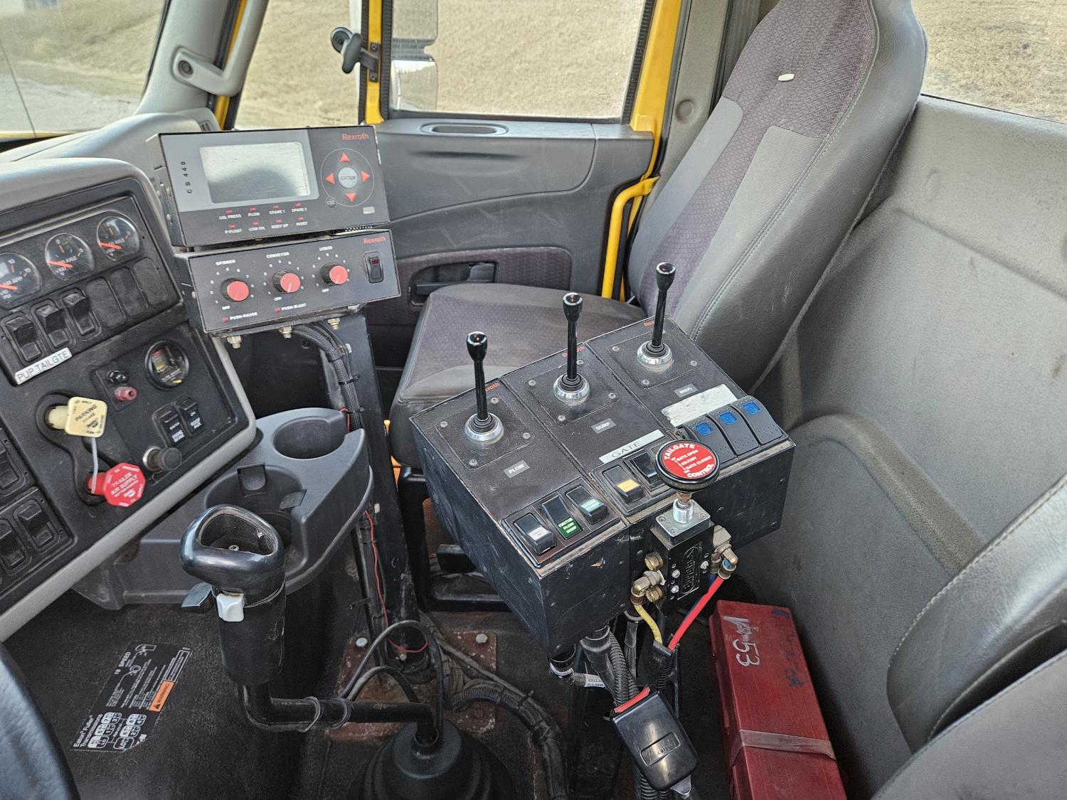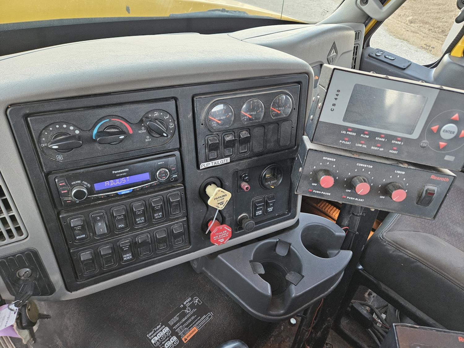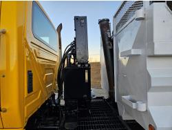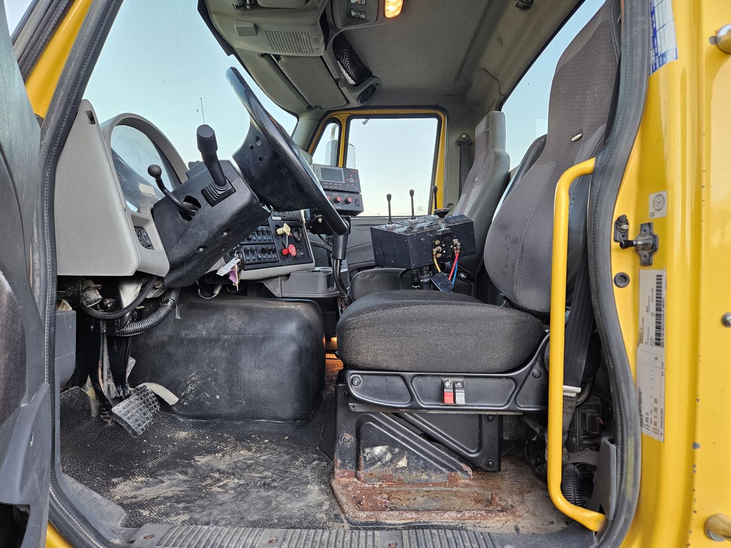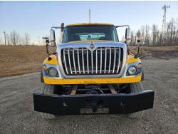 International 13 L 6 cylinder engine, engine brake, 18 speed manual transmission, A/C, radio, P/W, 15' steel box, hoist, electric tarp, front mount live hydraulic pump, pintle hitch plate with air lines, all in cab controls for front plow attachment, Henderson Torx Flex 18,000 lb front axle, 40,000 lb rear axles, full lockers, 385/65R22.5 front tires, 11R24.5 rear tires