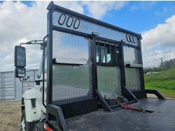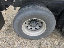 International Remanufactured DT570 9.3 L diesel engine, Allison automatic transmission, A/C, air ride driver seat, radio, hydraulic wet kit, headache rack, steel tool boxes, 8 ft x 16 ft deck, winch, steel deck, stake pockets, rub rails, rubber block suspension, 13,200 lb front axle, 40,000 lb rear axles, diff lock, all aluminum wheels, 11R22.5 tires