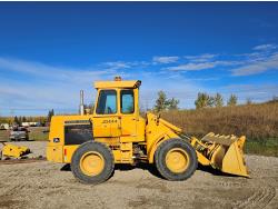 Enclosed cab, diesel engine, high/low range transmission, 87 inch smooth bucket, 44 inch pallet forks, 12 ft snow plow blade, 15.5R25 tires