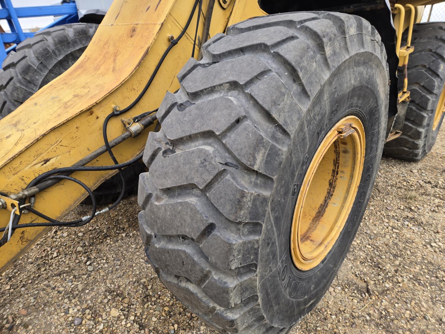 Enclosed cab, 4 speed powershift transmission, 98 inch smooth bucket, hydraulic Q/C coupler, 1 auxiliary hydraulics, counter weight, 20.5R25 tires