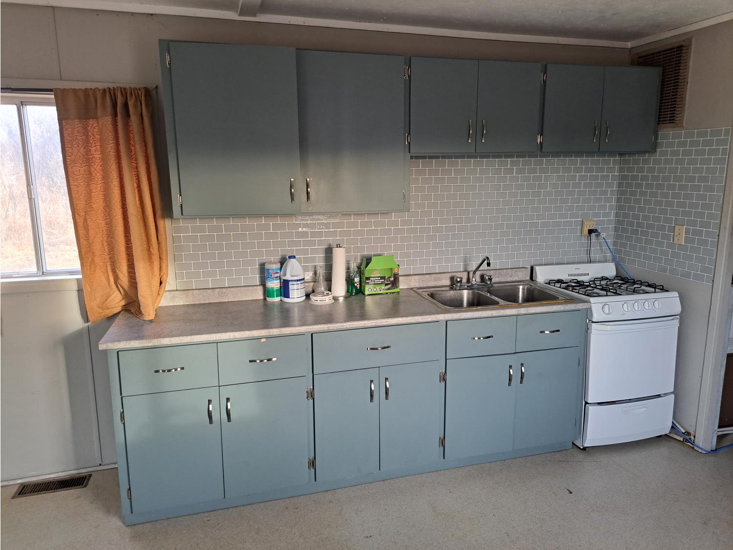 kitchen, propane stove, 1 bathroom, utility room, propane furnace & hot water heater